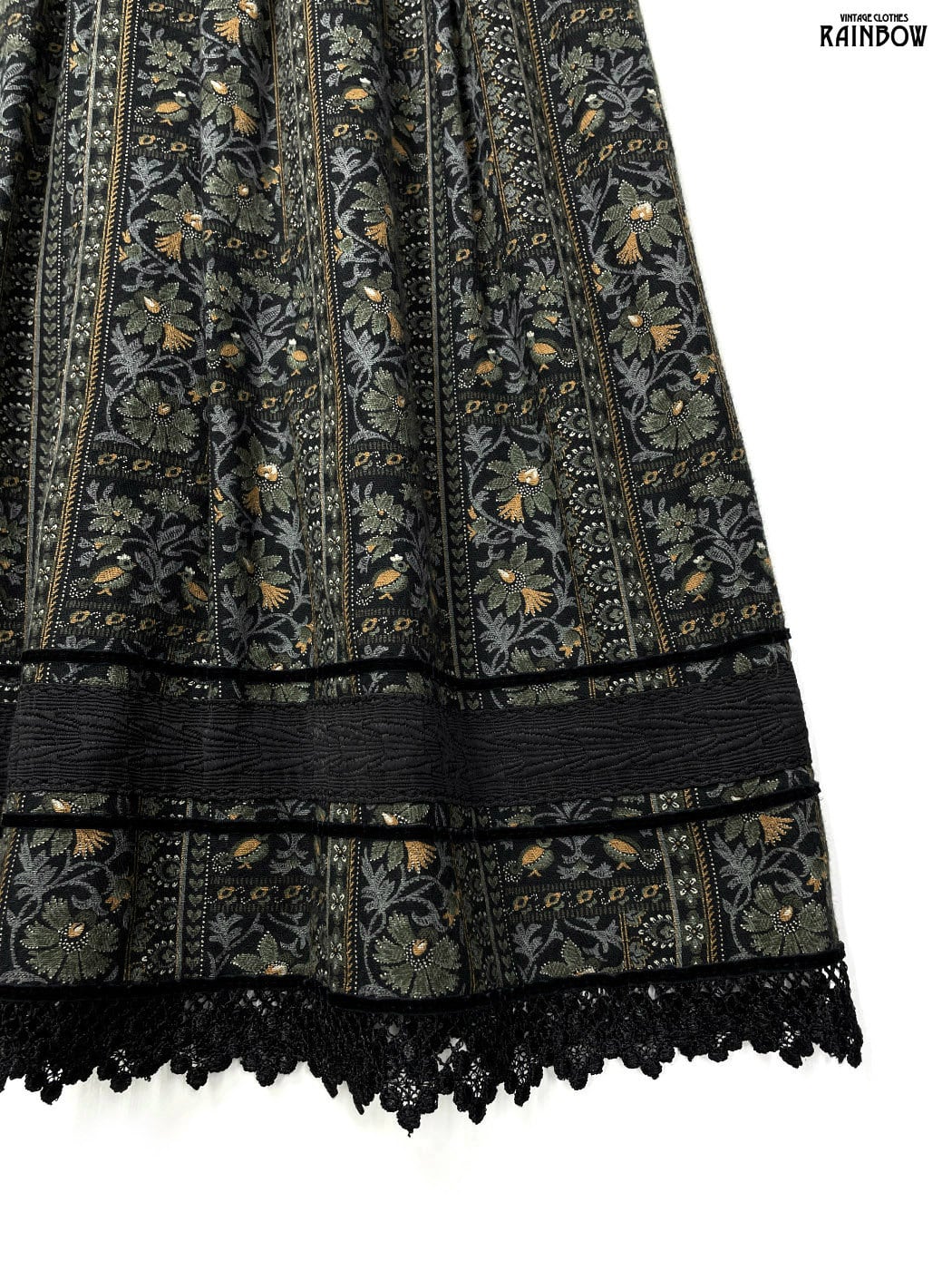 #スカート #ロング丈 #黒 #緑 #花柄 #レース #クラシック #コットン #花柄スカート
