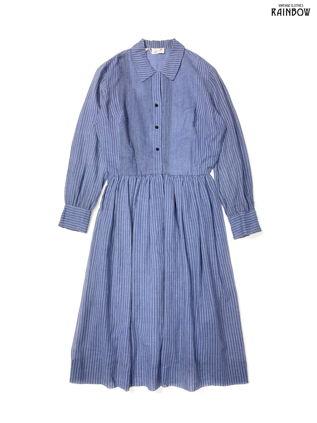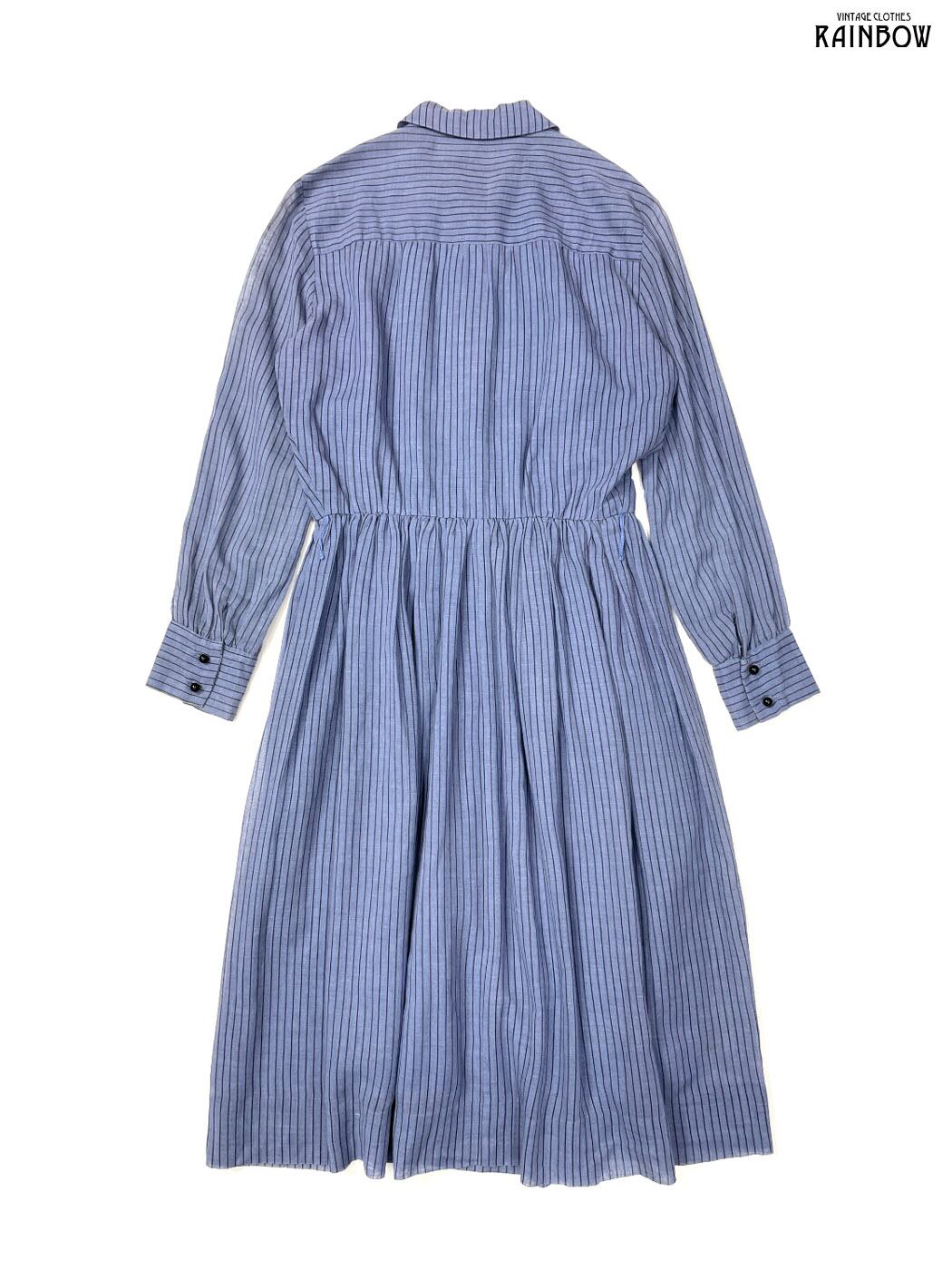 #ワンピース #ロングスリーブ #ロング丈 #フレア #ゴムウエスト #青 #ストライプ柄 #クラシック #コットン #長袖ストライプ柄ワンピース