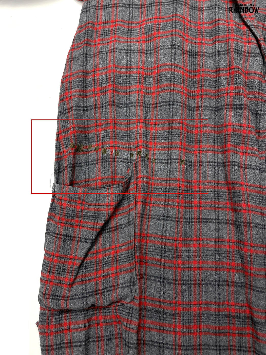 #アウター #羽織り #ロングスリーブ #赤 #グレー #チェック柄 #ベルト付き #ウール #ガウン
