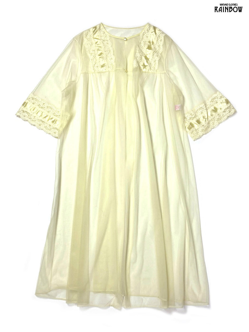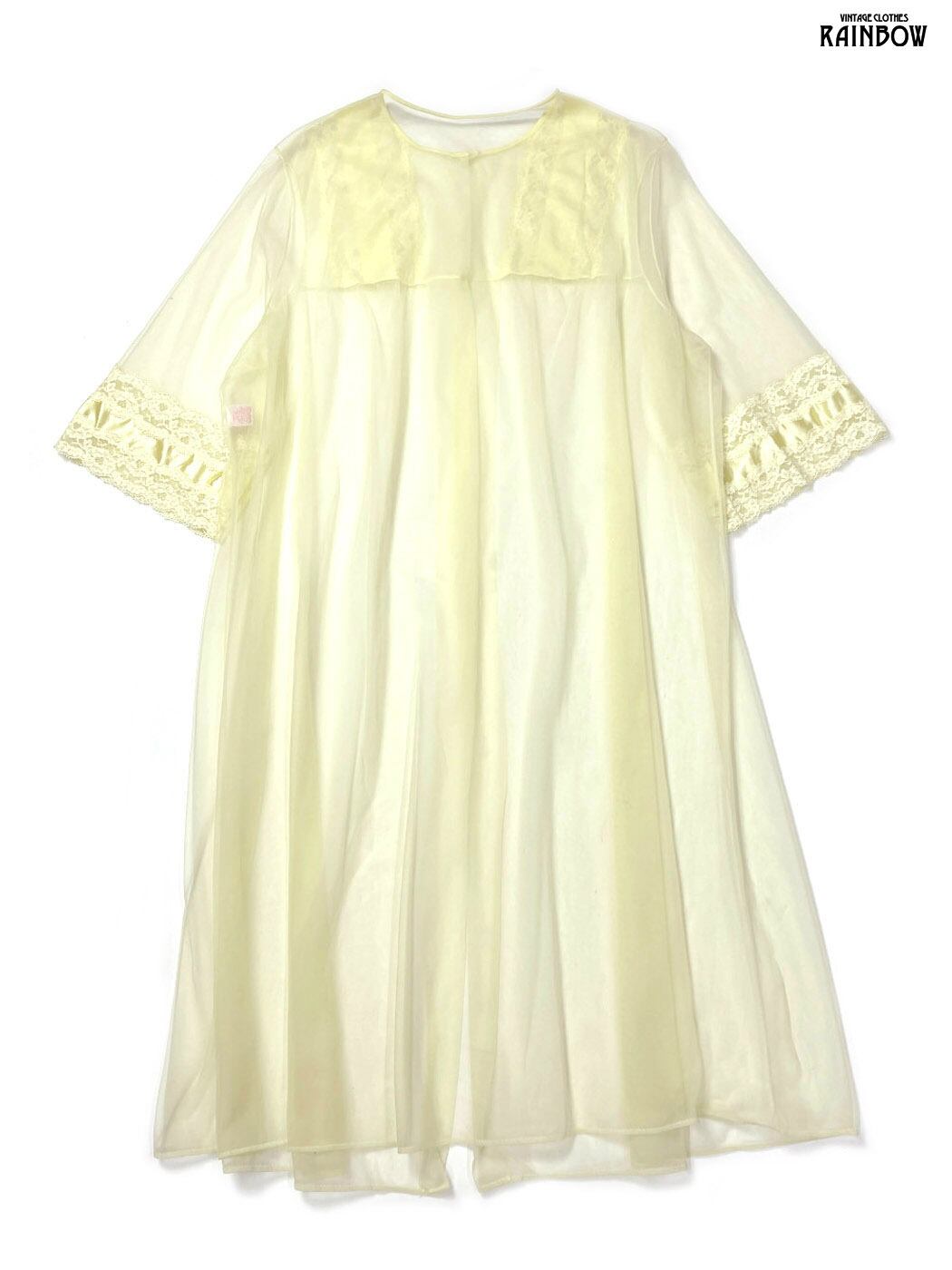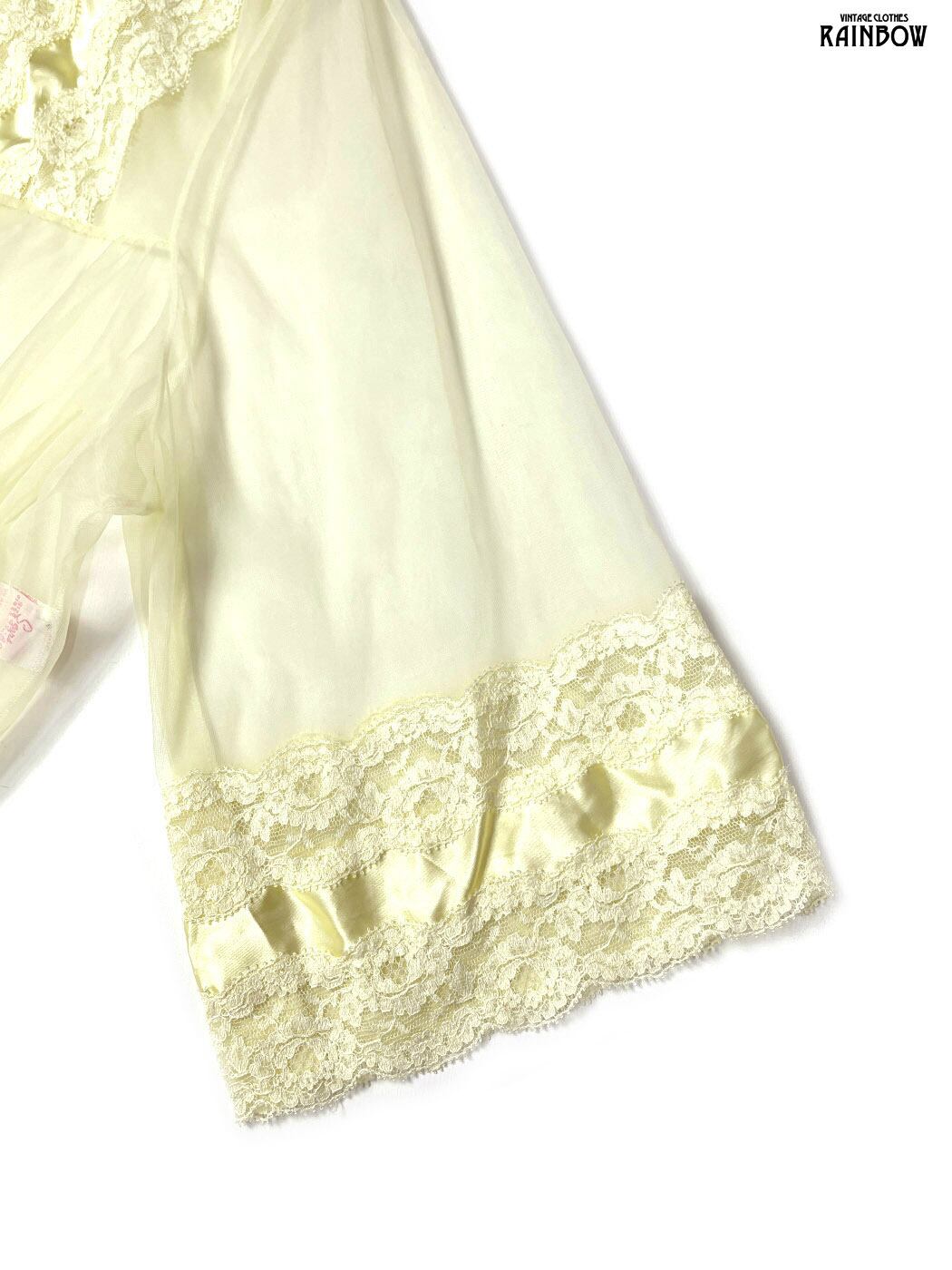 古着 レース 無地 ナイロン シフォン 長袖 羽織り 黄 (ttu2601084)