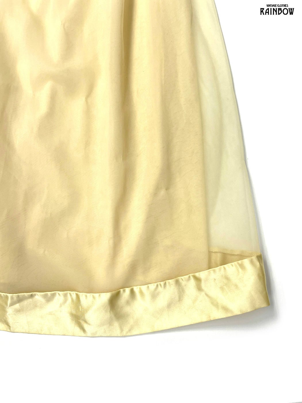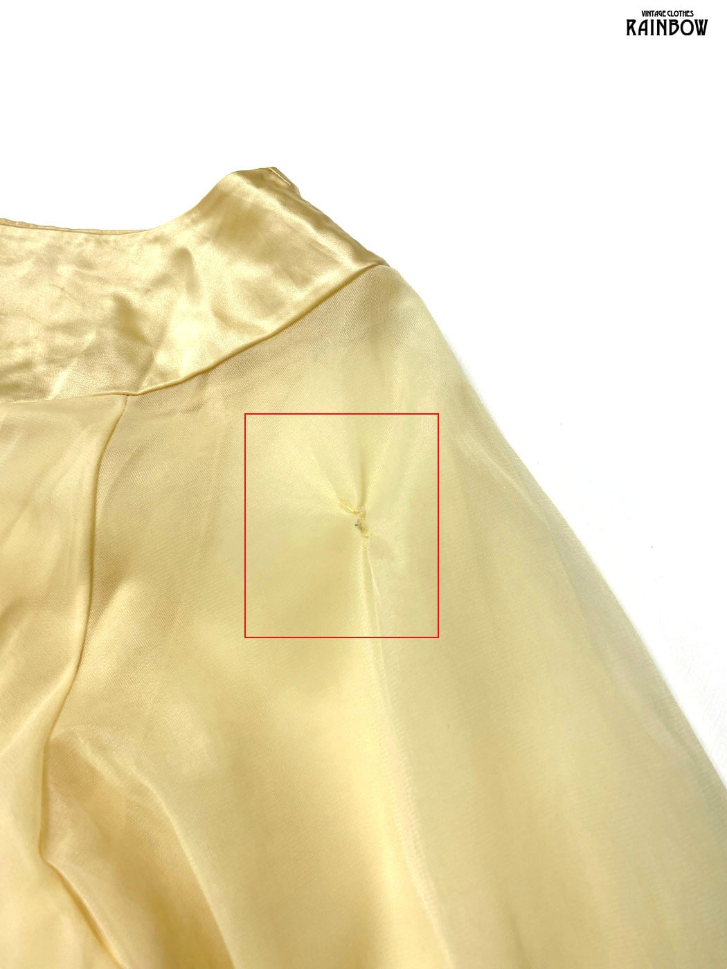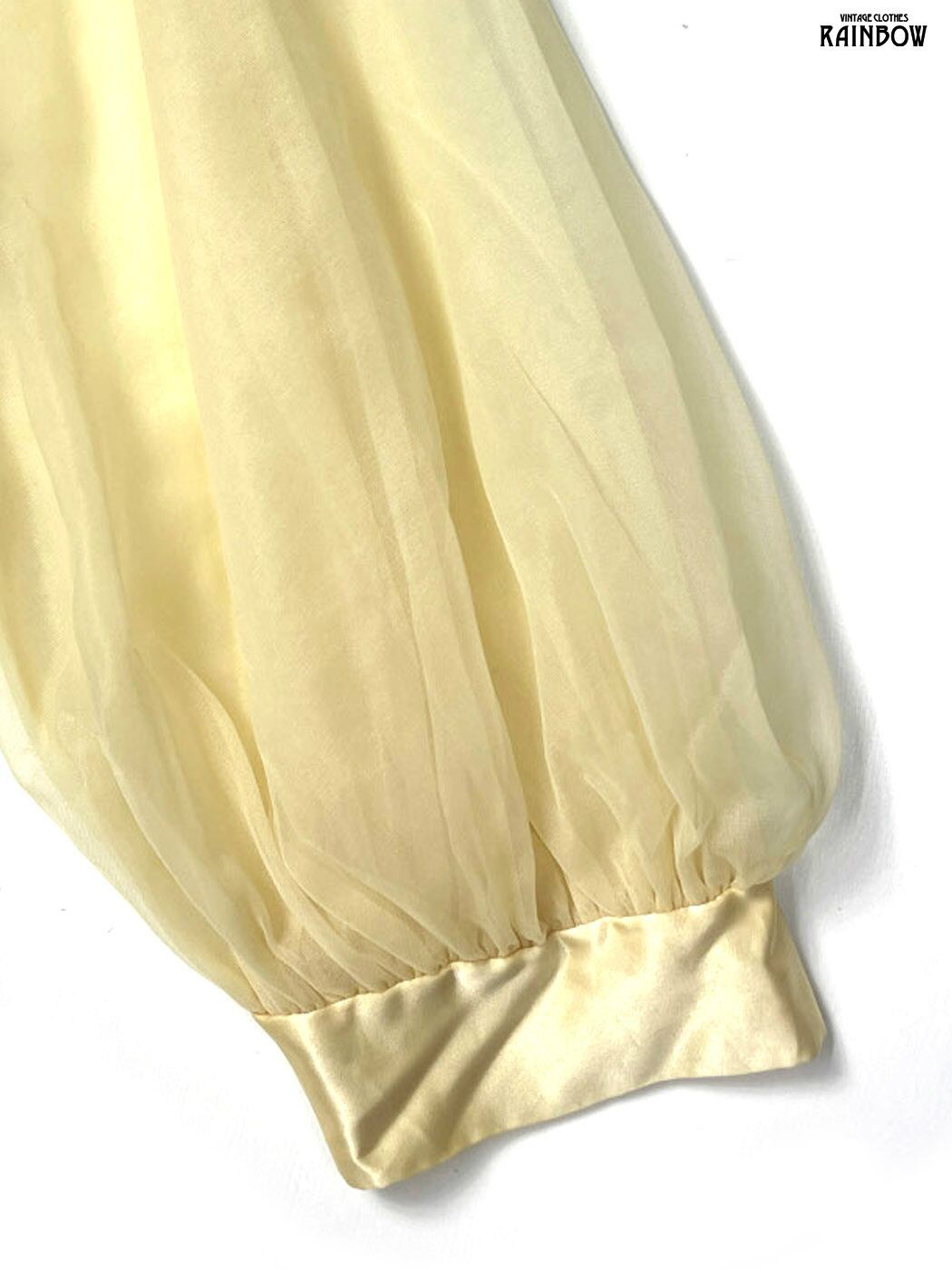 古着 アメリカ製 刺繍 無地 ナイロン シフォン 長袖 羽織り 黄 (ttu2601085)