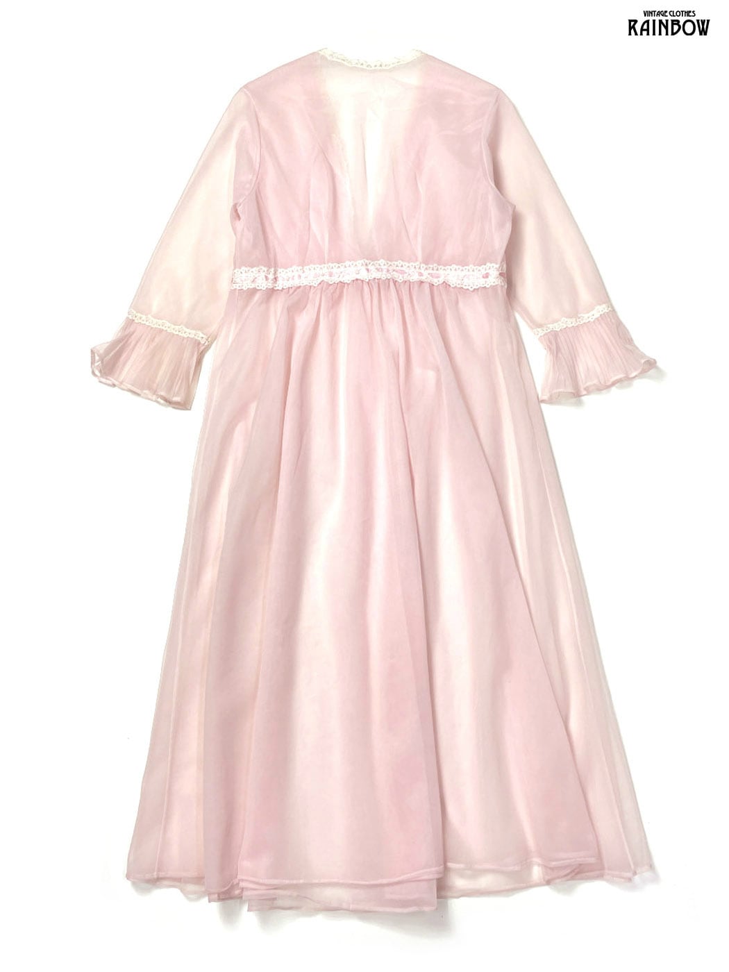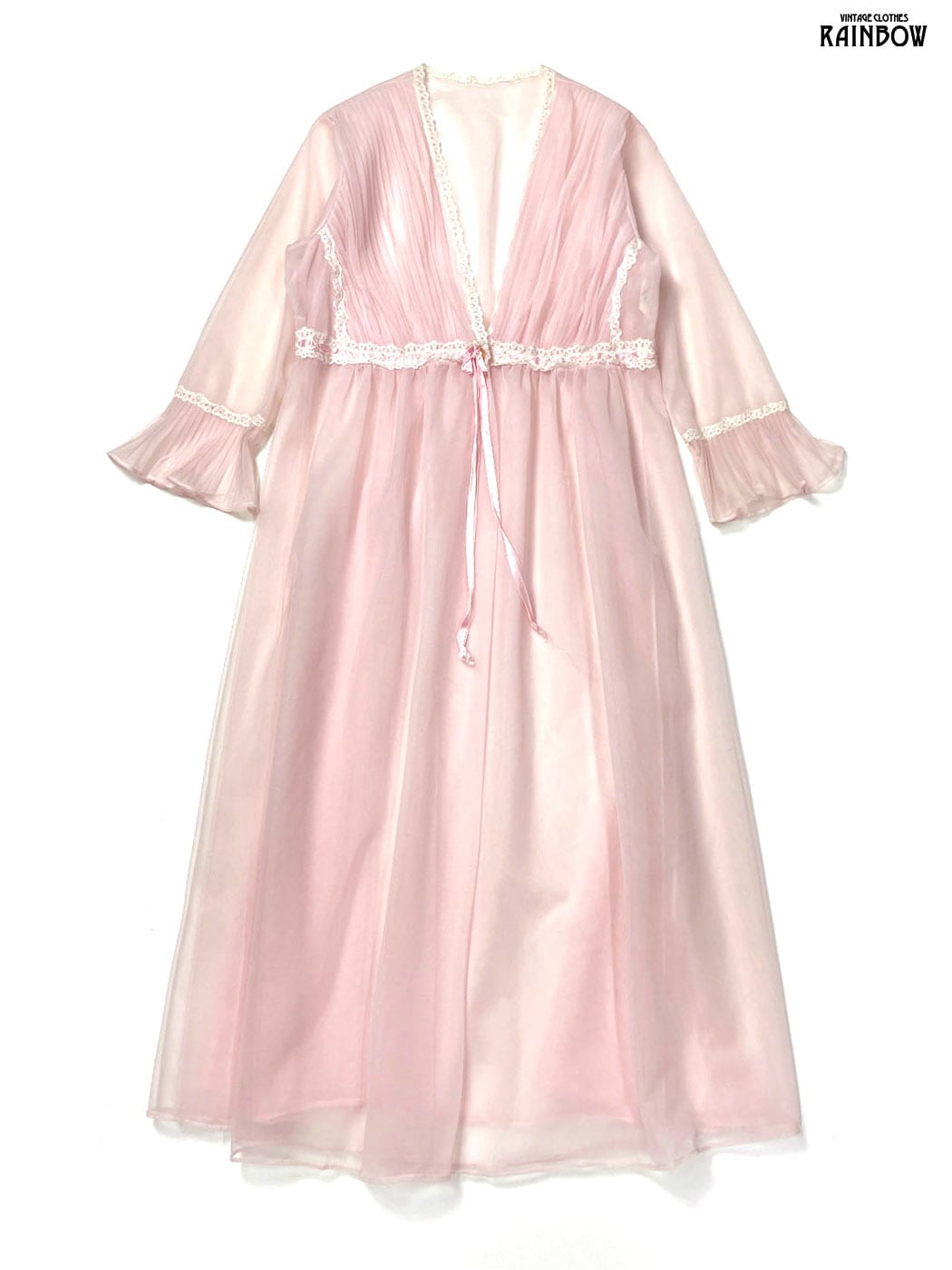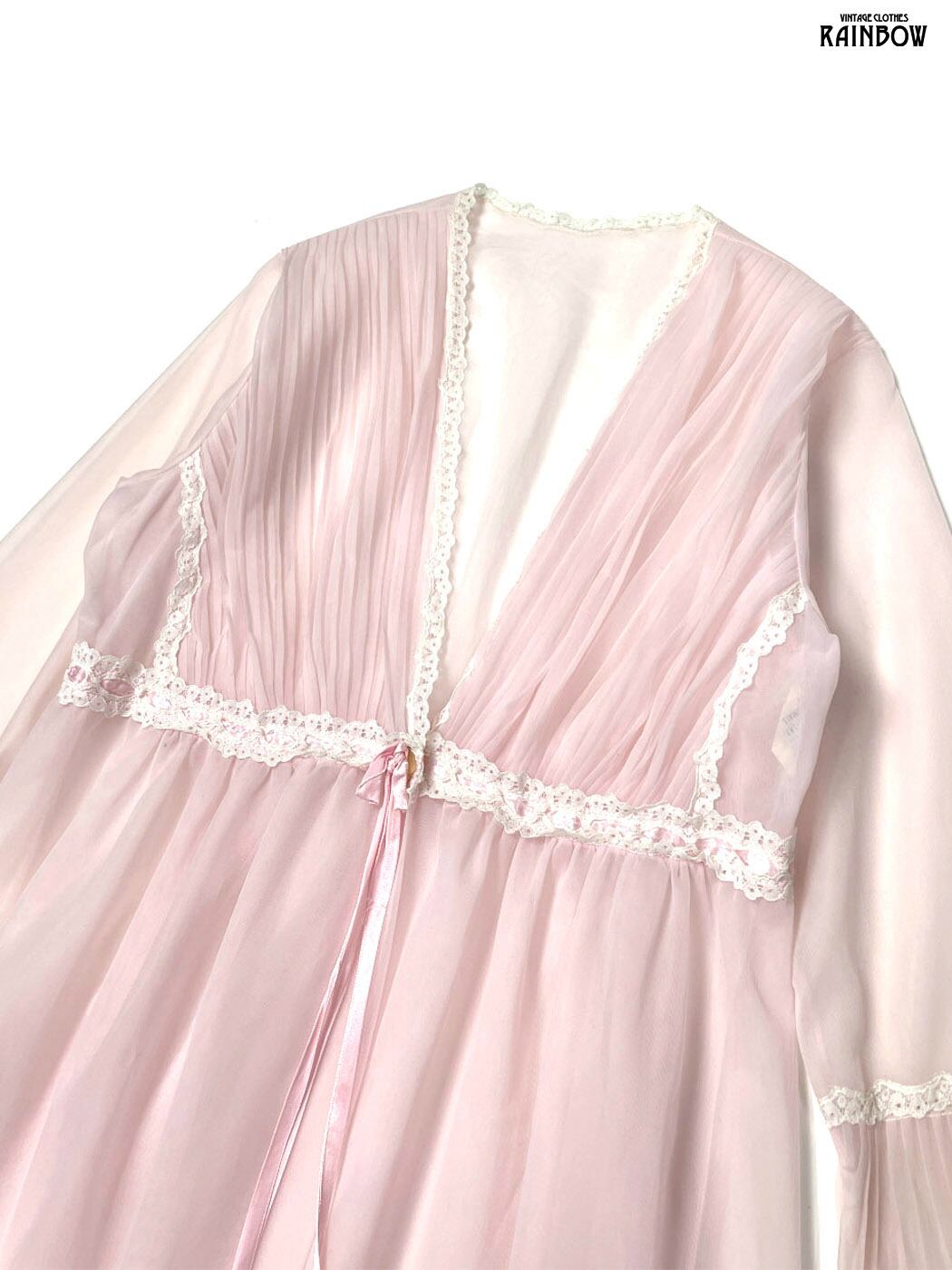 古着 レース 無地 シフォン ナイロン 長袖 羽織り ピンク (ttu2601089)