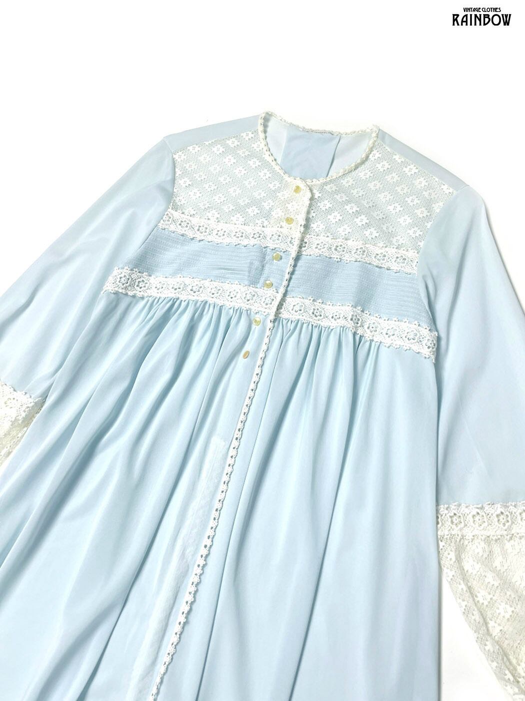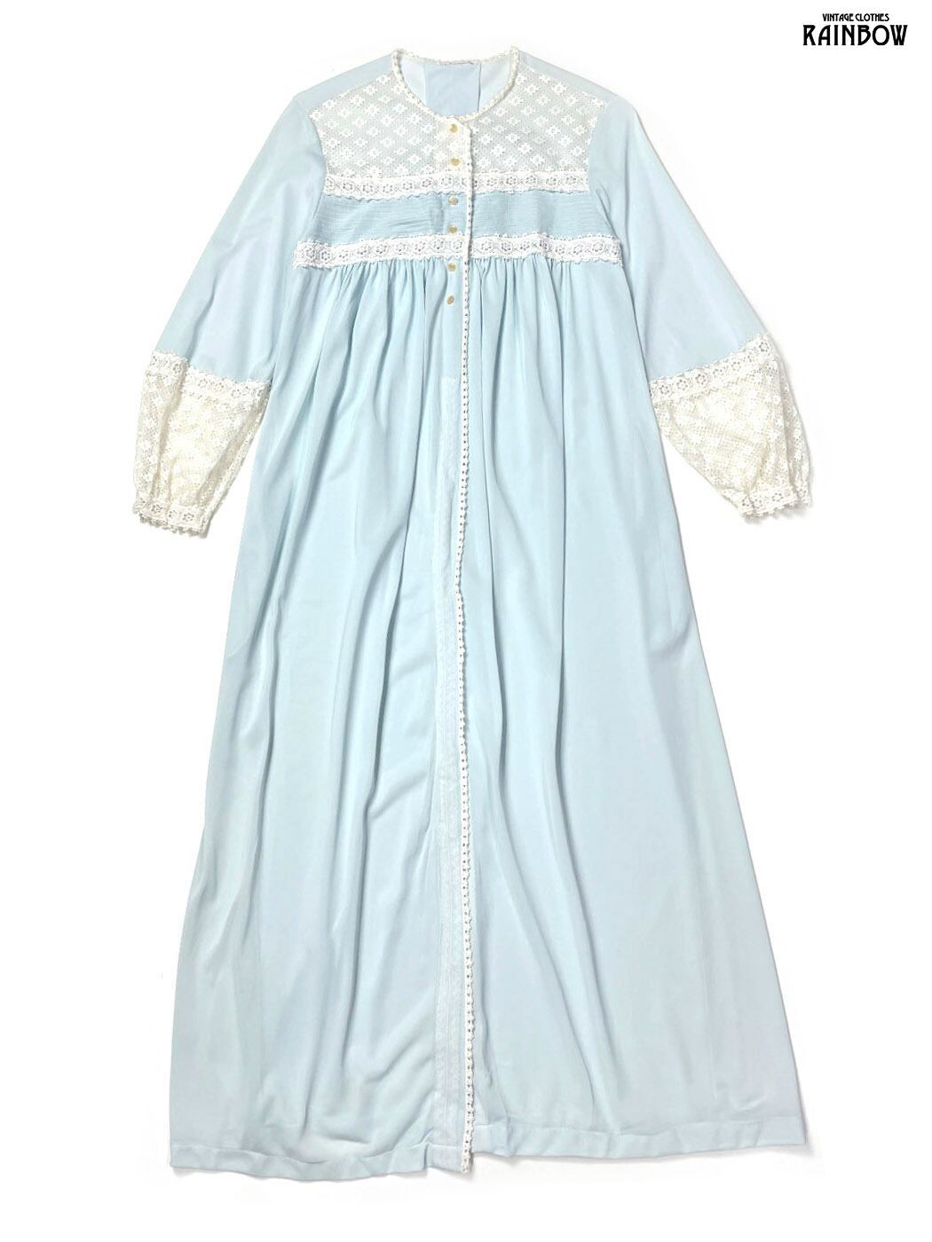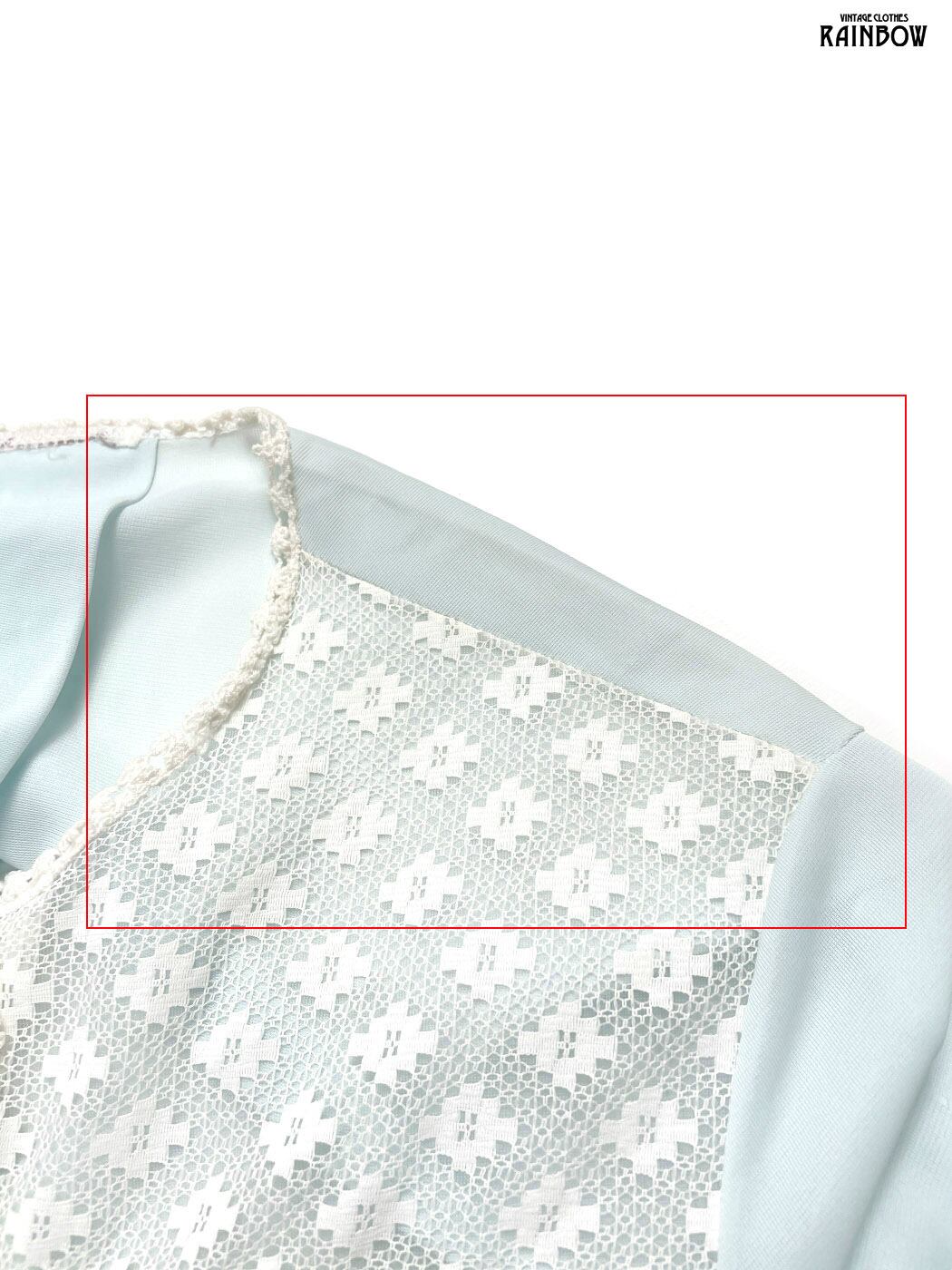 古着 レース 無地 ナイロン 長袖 羽織り 青 水色 (ttu2601091)