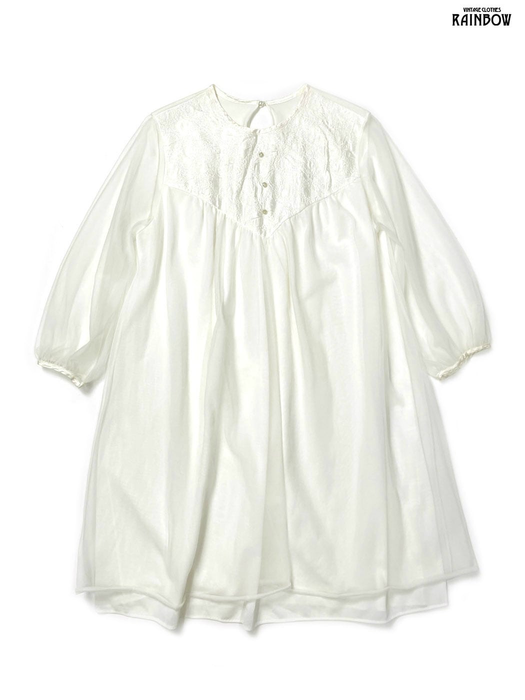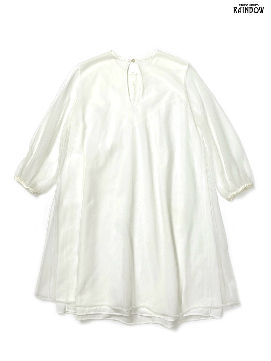 #ワンピース #ロングスリーブ #ミニ丈 #白 #生成り #無地 #刺繍 #シフォン #シフォンワンピース