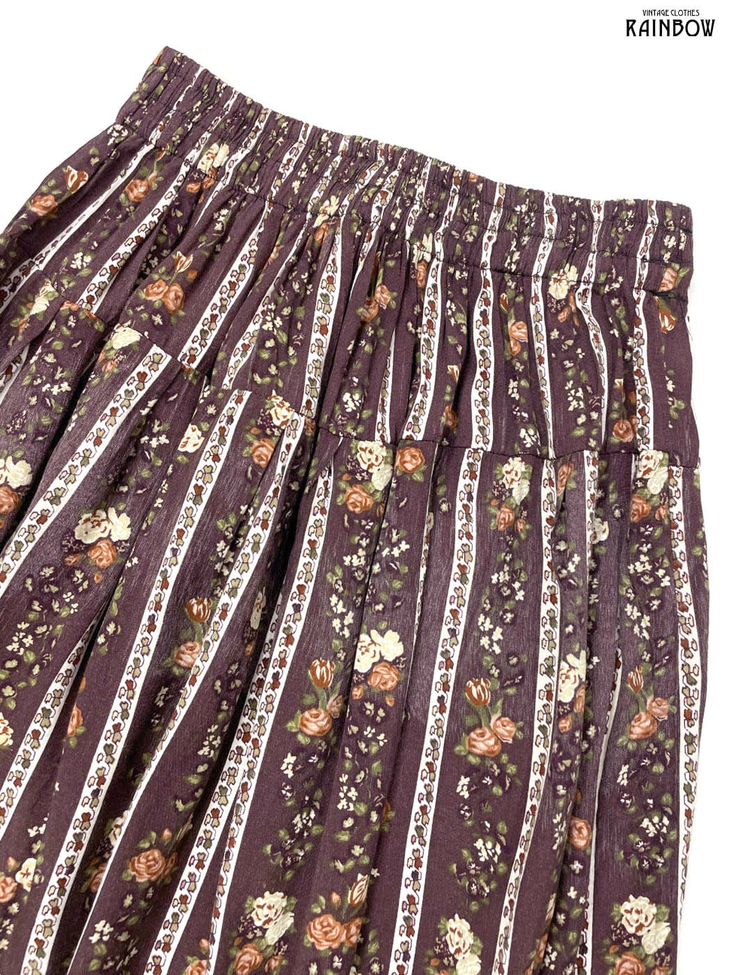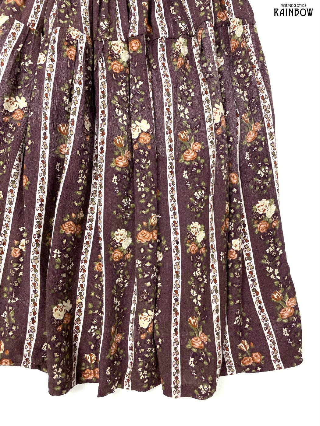 #スカート #ミニ丈 #フレア #茶 #花柄 #クラシック #レーヨン #花柄スカート