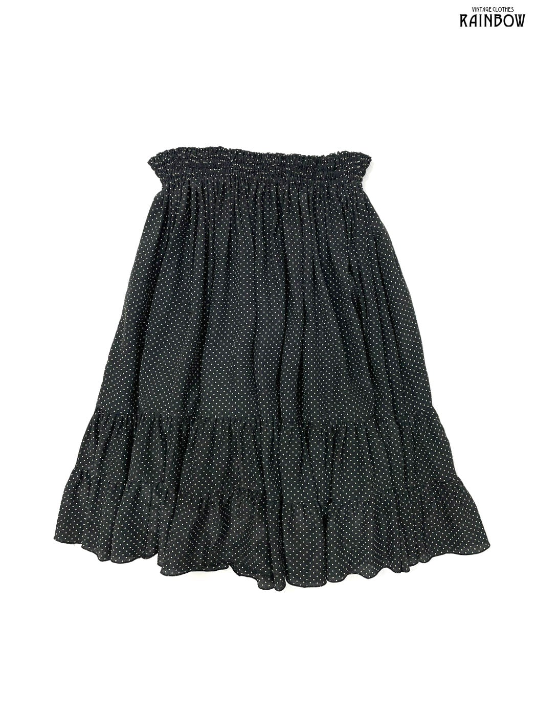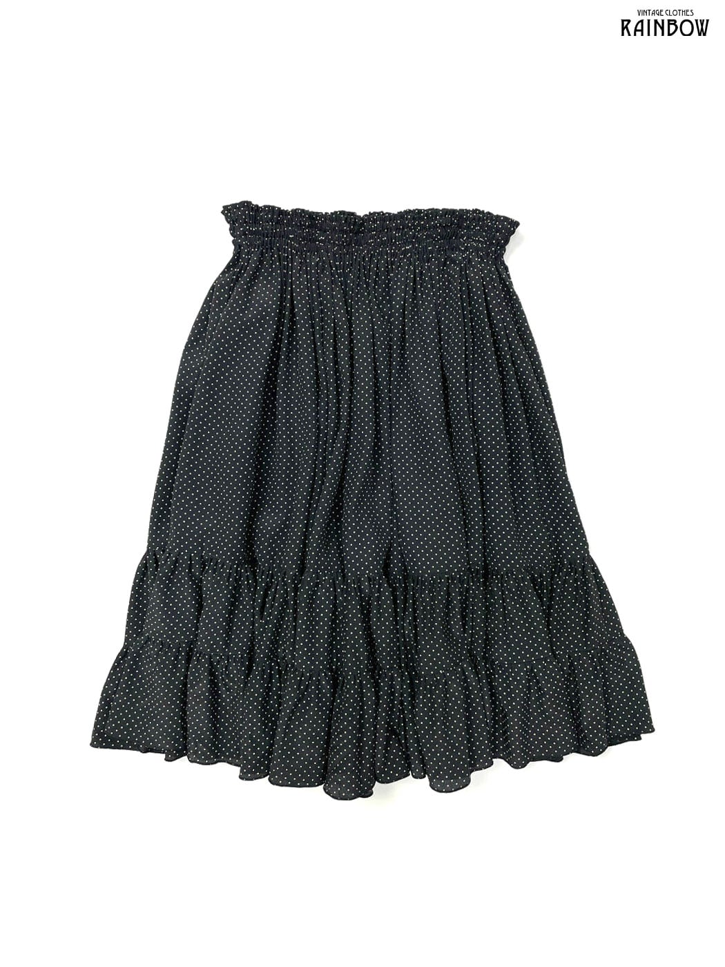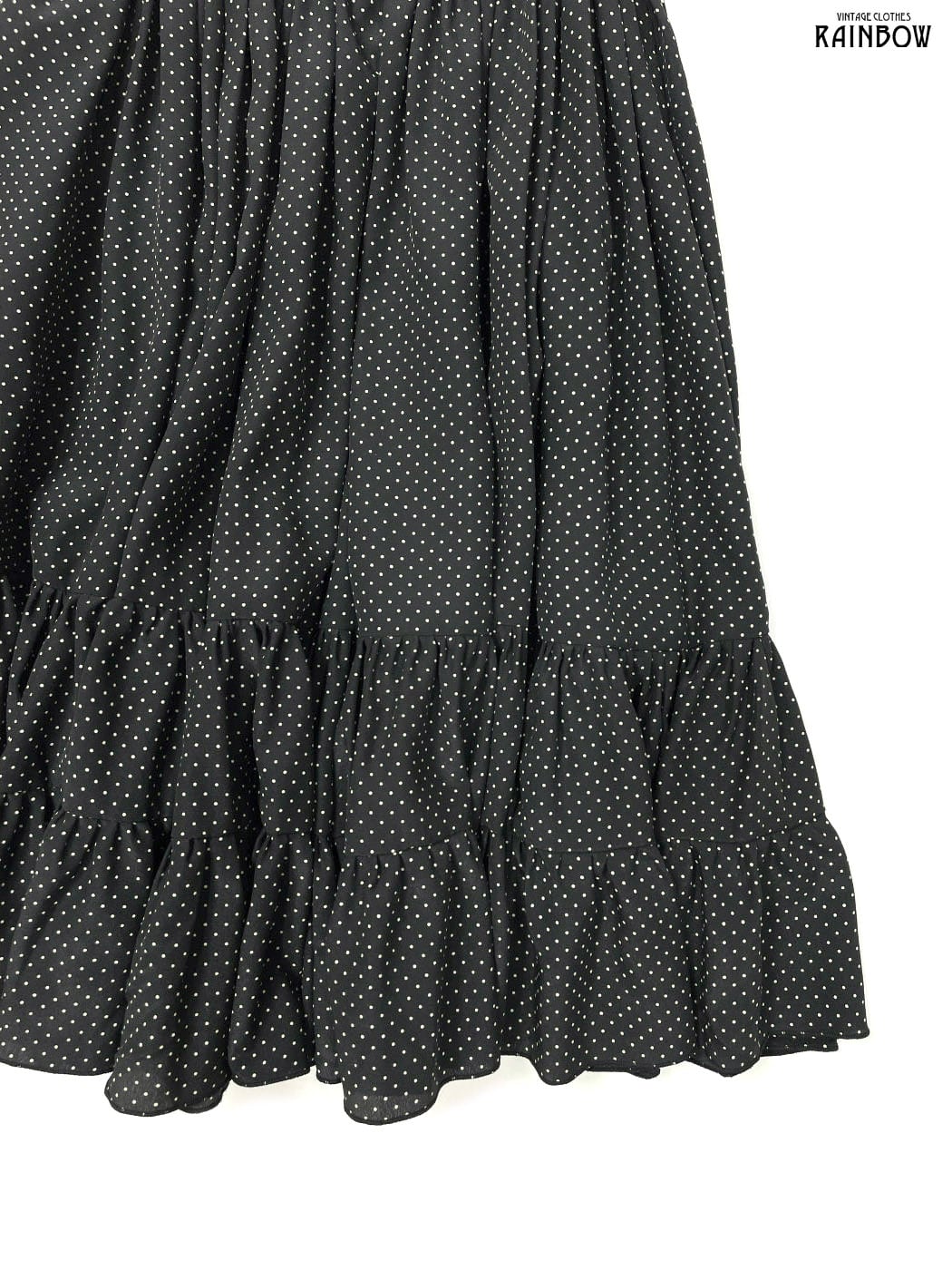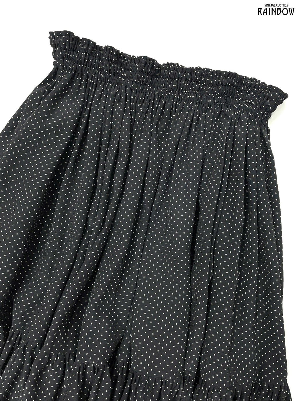 #スカート #ミニ丈 #ティアード #ゴムウエスト #黒 #ドット柄 #フリル #クラシック #柄ライトスカート
