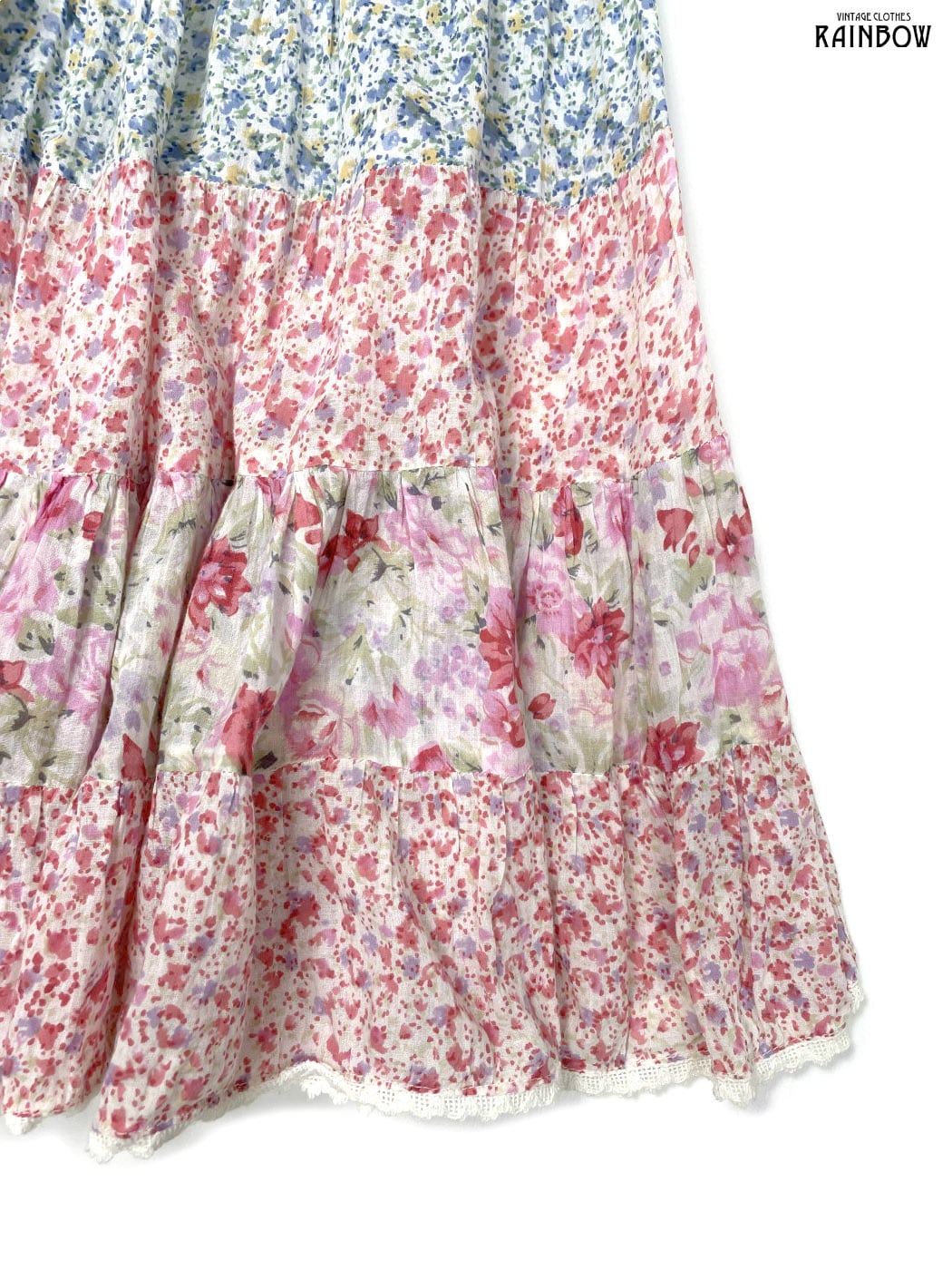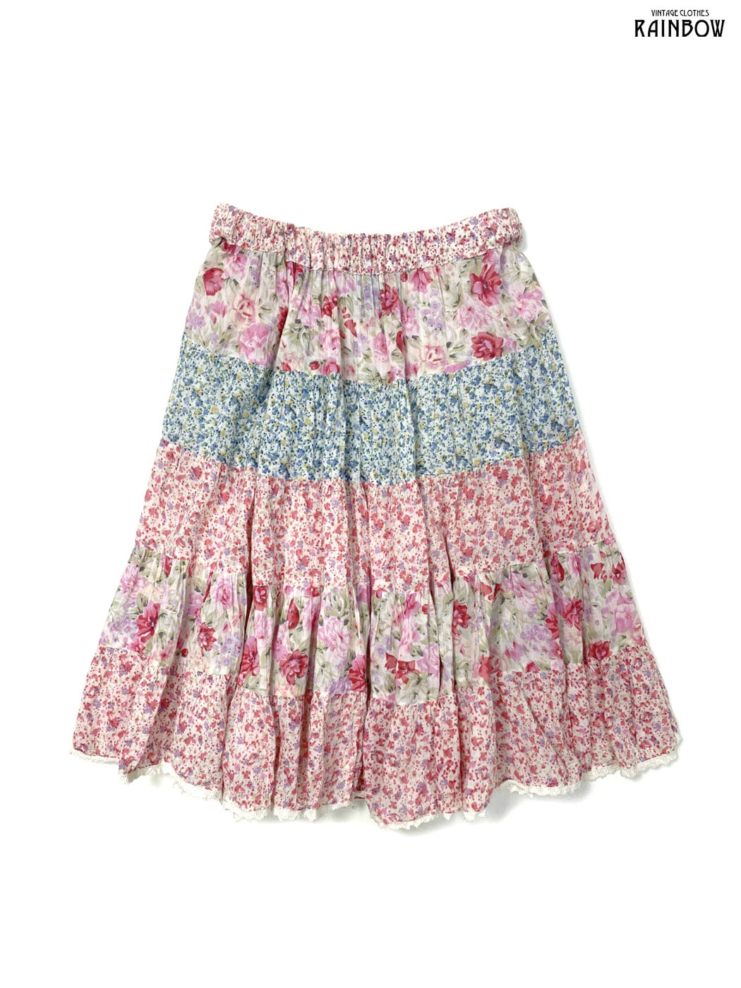 #スカート #ミニ丈 #ティアード #ゴムウエスト #赤 #ピンク #花柄 #レース #ガーリー #コットン #花柄スカート