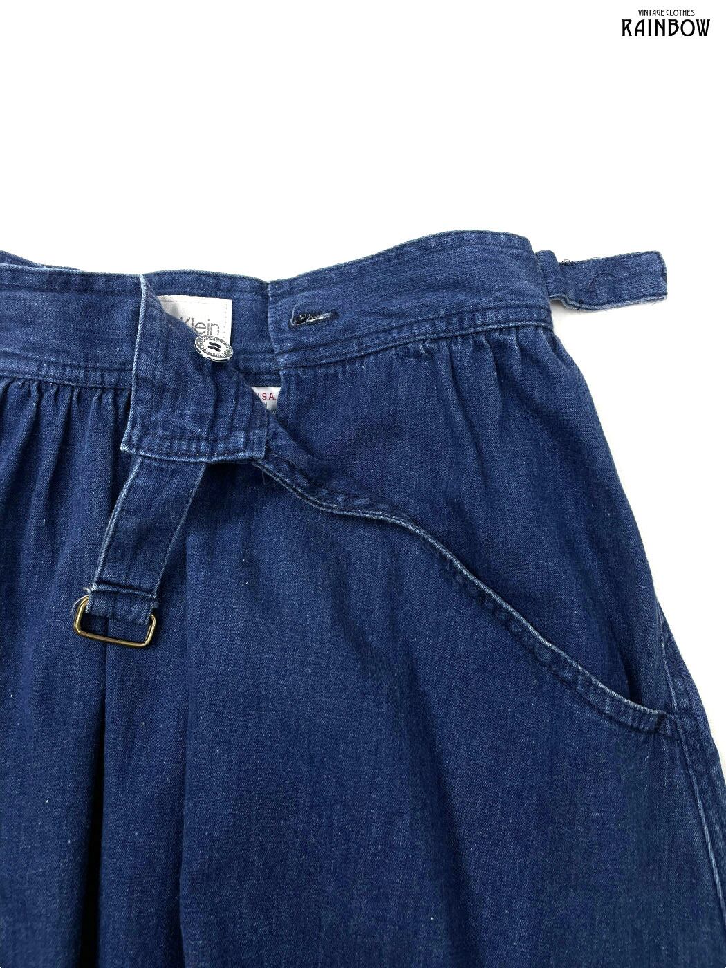 古着 Calvin Klein カルバンクライン アメリカ製 無地 デニム 膝丈 スカート 青 紺 (btu2601054)