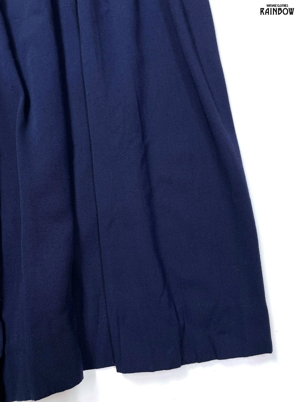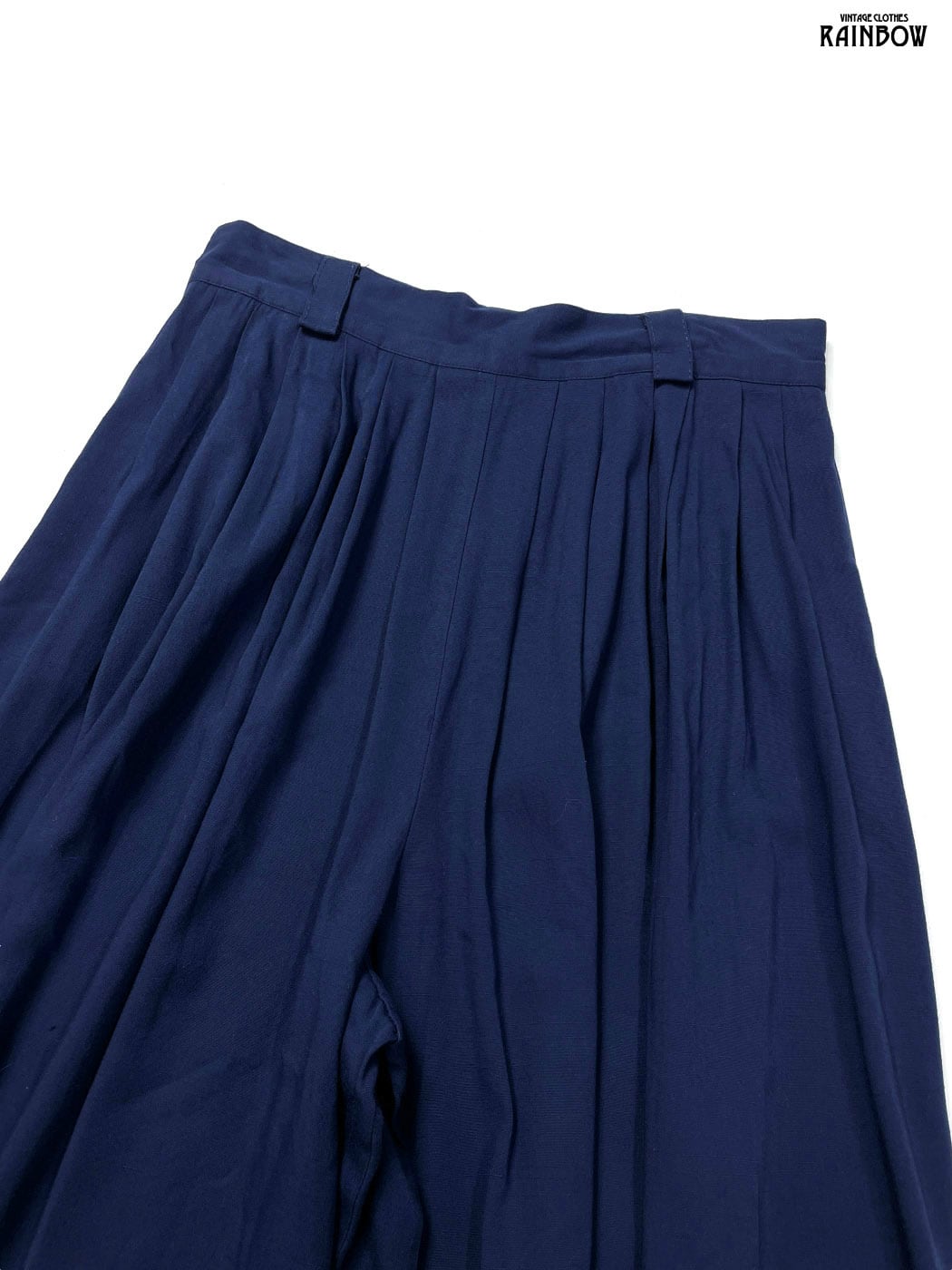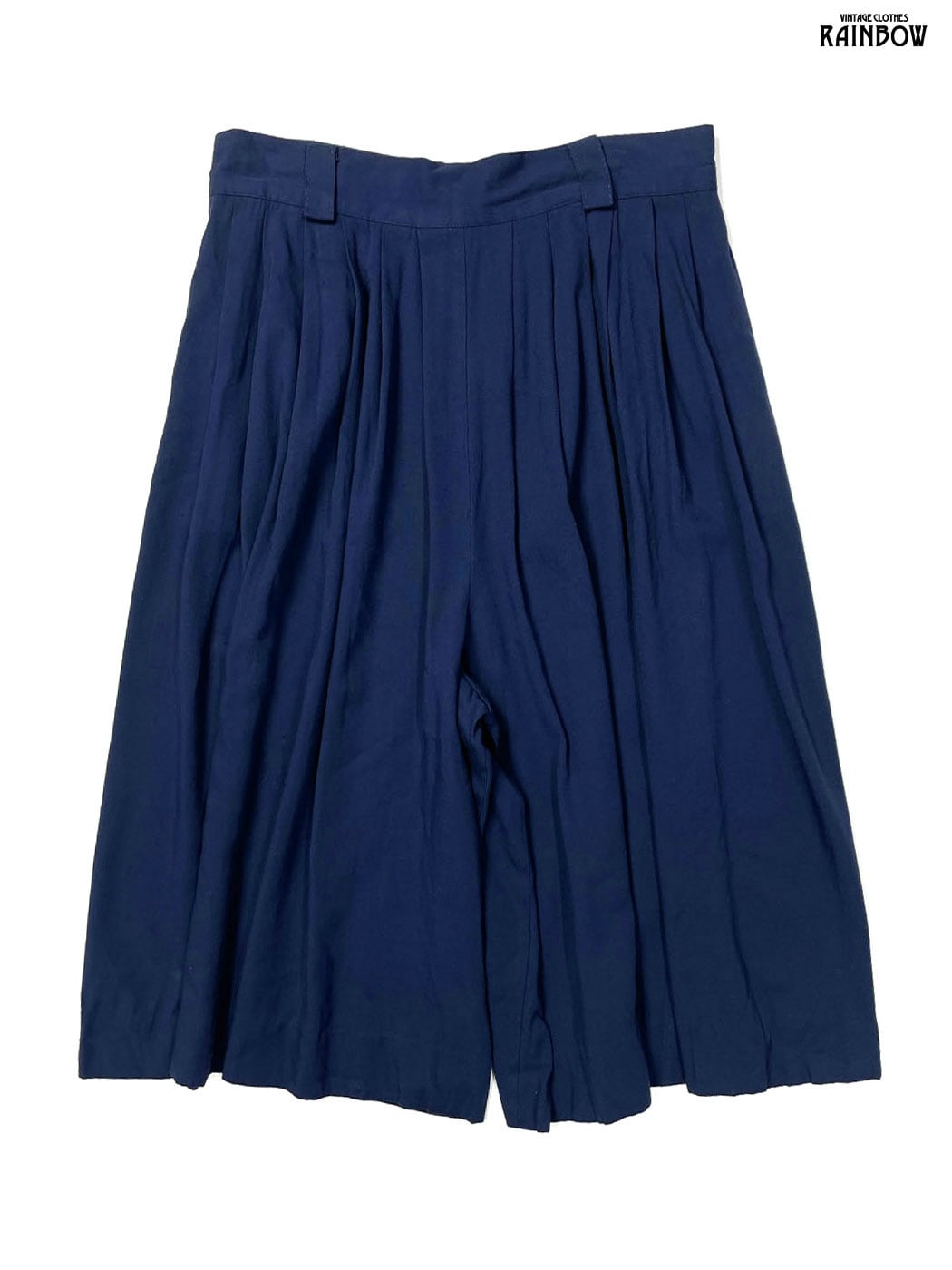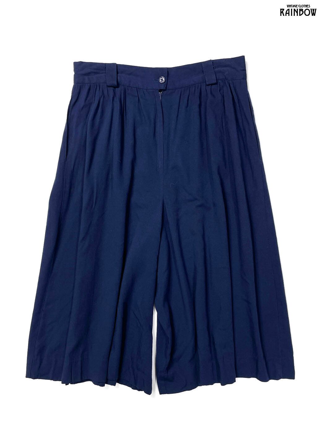 古着 無地 膝丈 フレア ワイド パンツ 紺 (btu2601059)