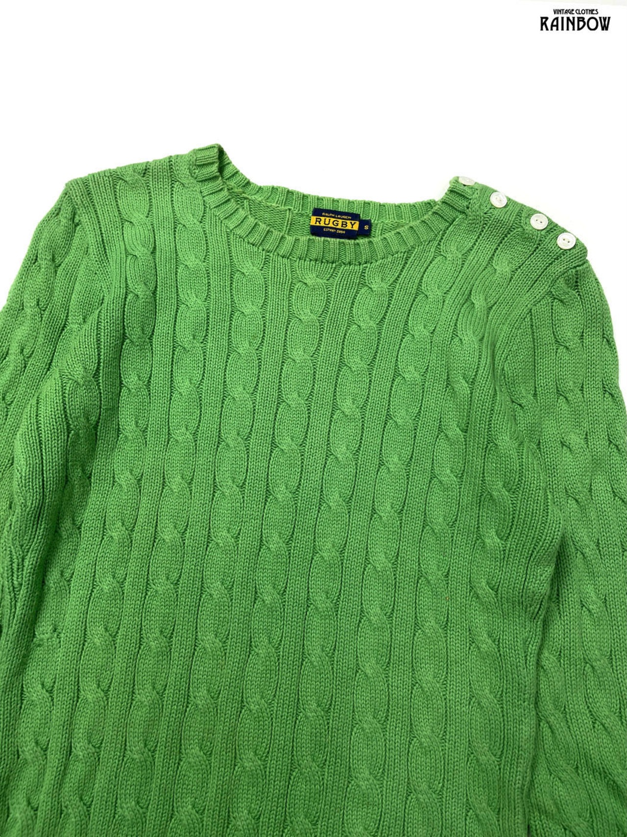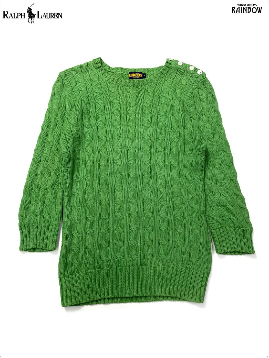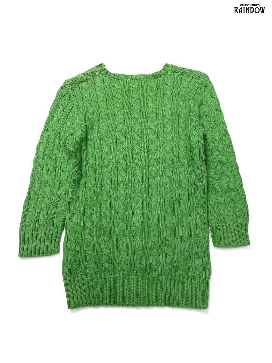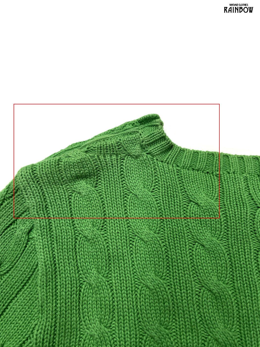 #ニット #セーター #ロングスリーブ #緑 #無地 #ケーブル編み #シンプル #コットン #無地セーター
