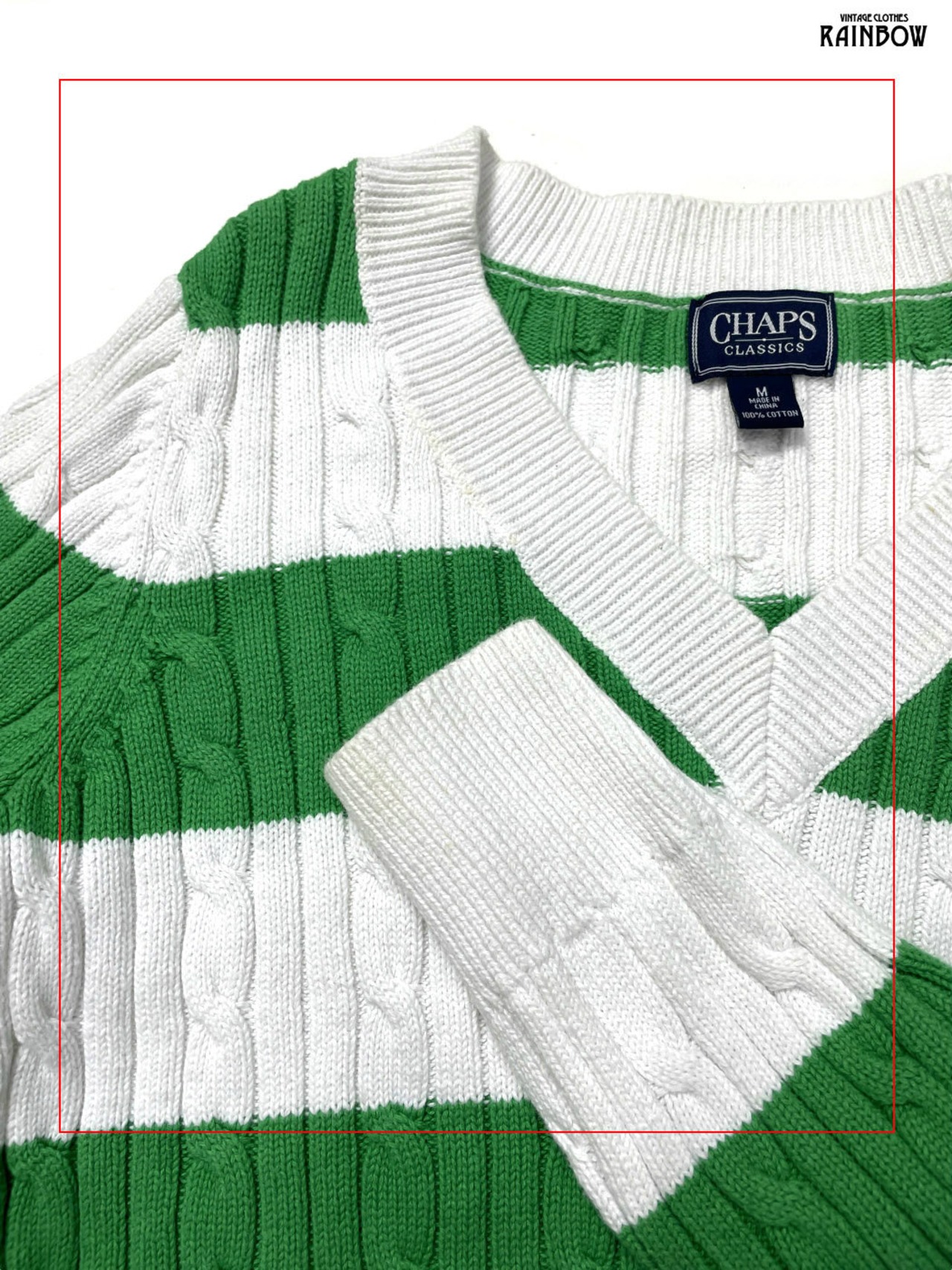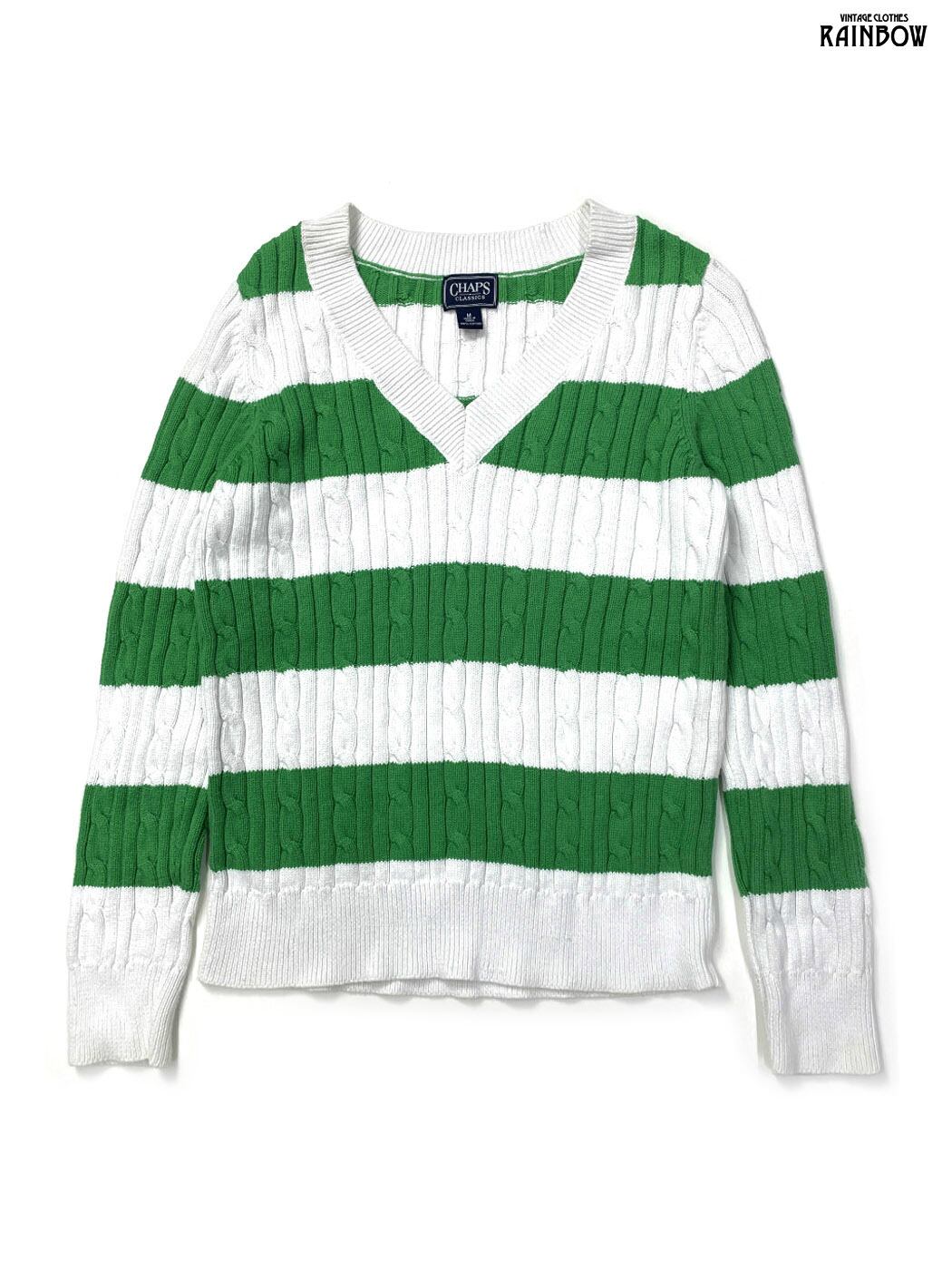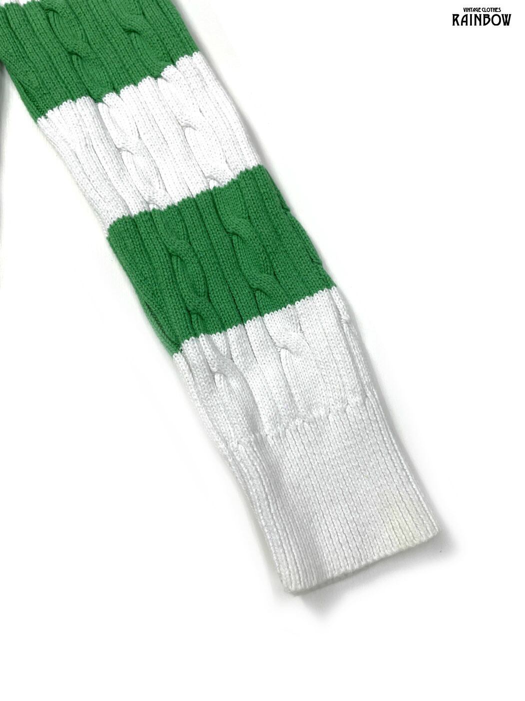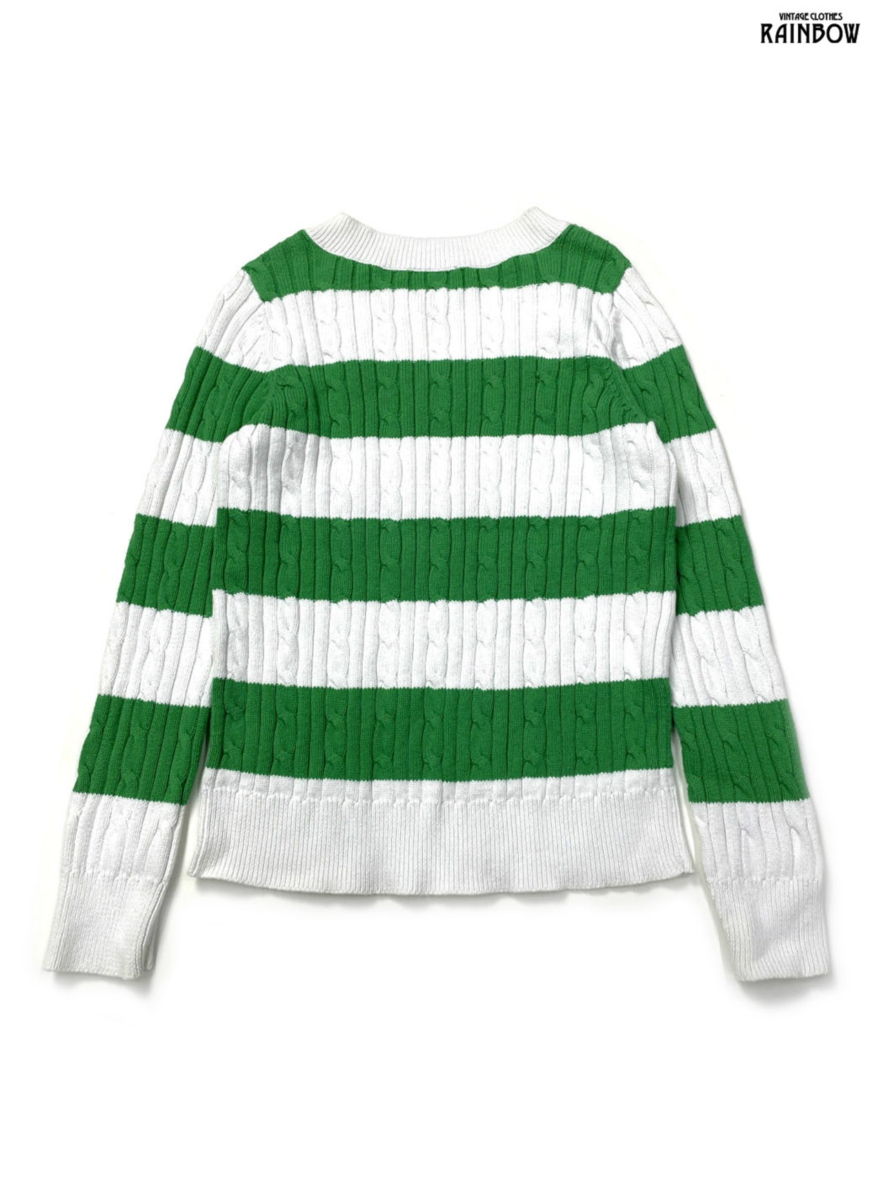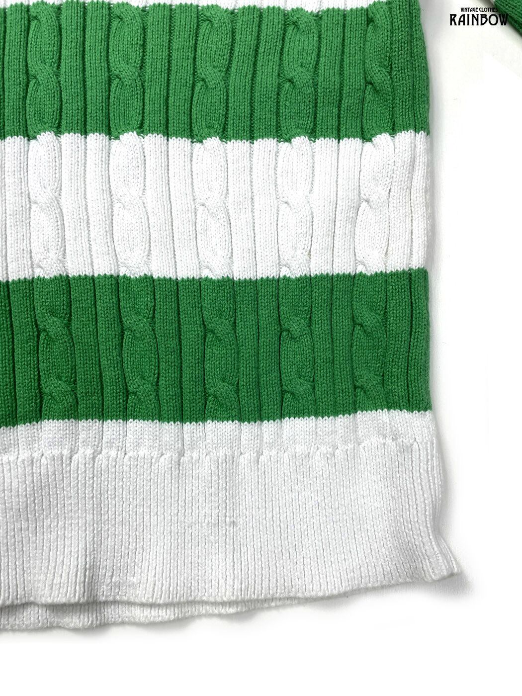 #ニット #セーター #ロングスリーブ #緑 #ボーダー柄 #コットン #柄セーター