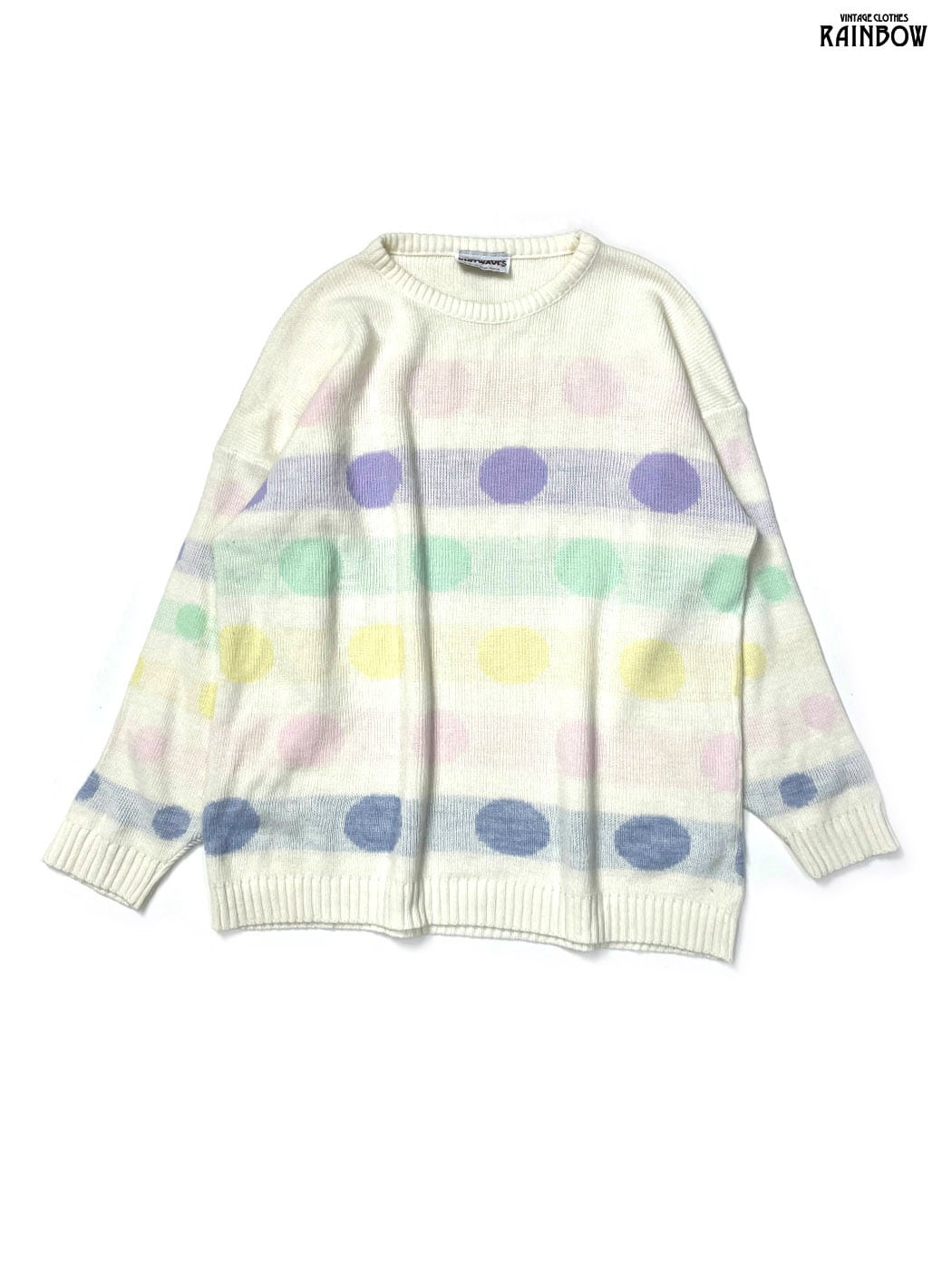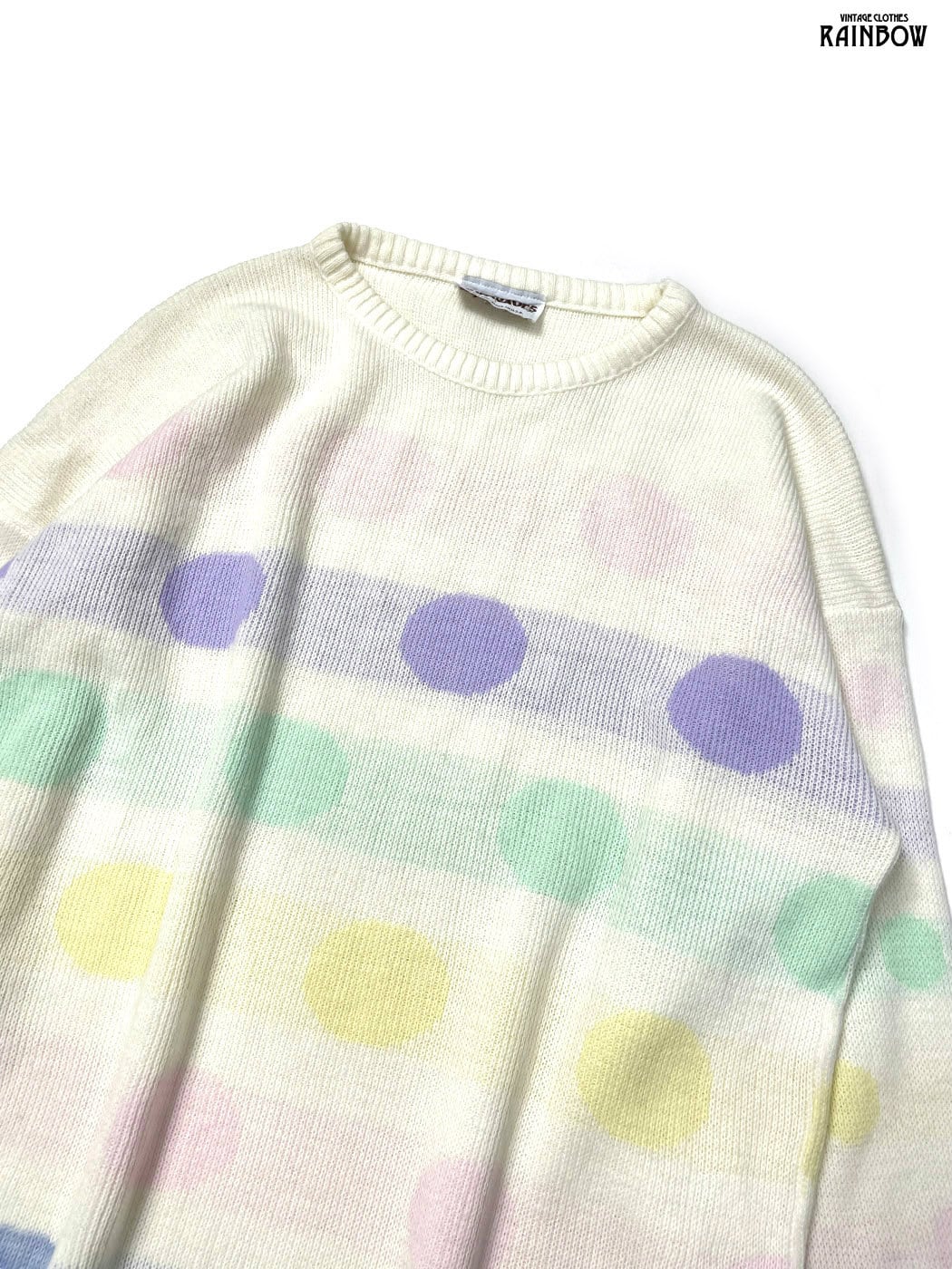 #ニット #セーター #ロングスリーブ #ベージュ #カラフル #ドット柄 #アメリカ製 #ガーリー #ニット地 #柄セーター