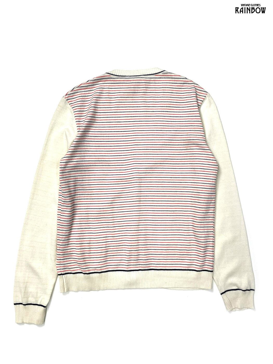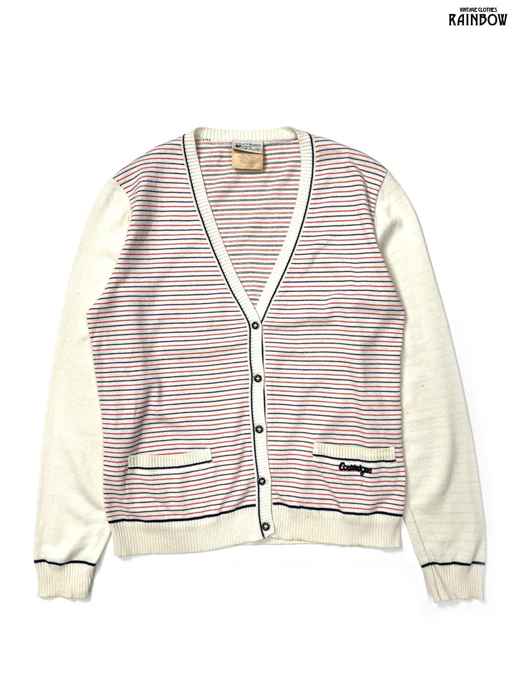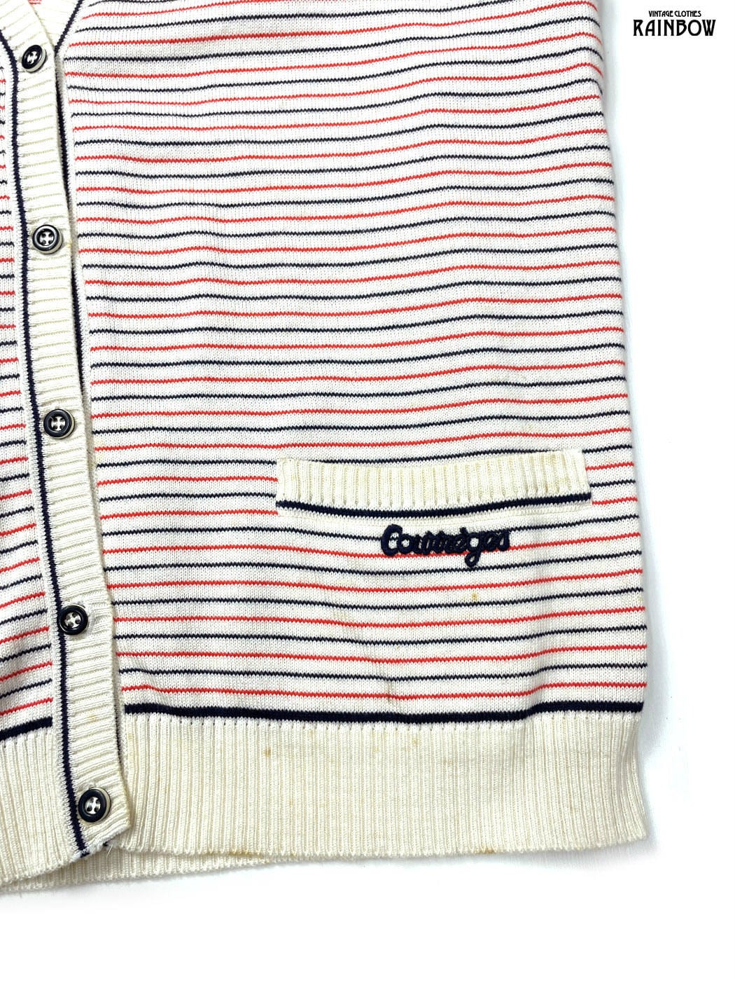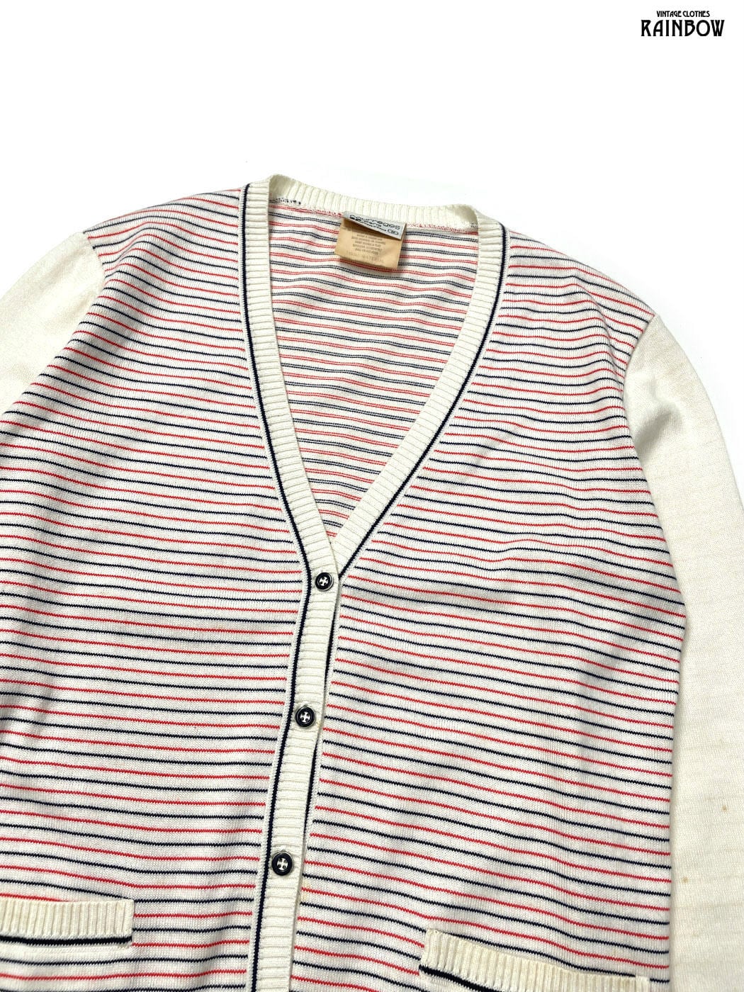 #ニット #カーディガン #ロングスリーブ #赤 #ベージュ #ボーダー柄 #フランス製 #コットン #柄カーディガン