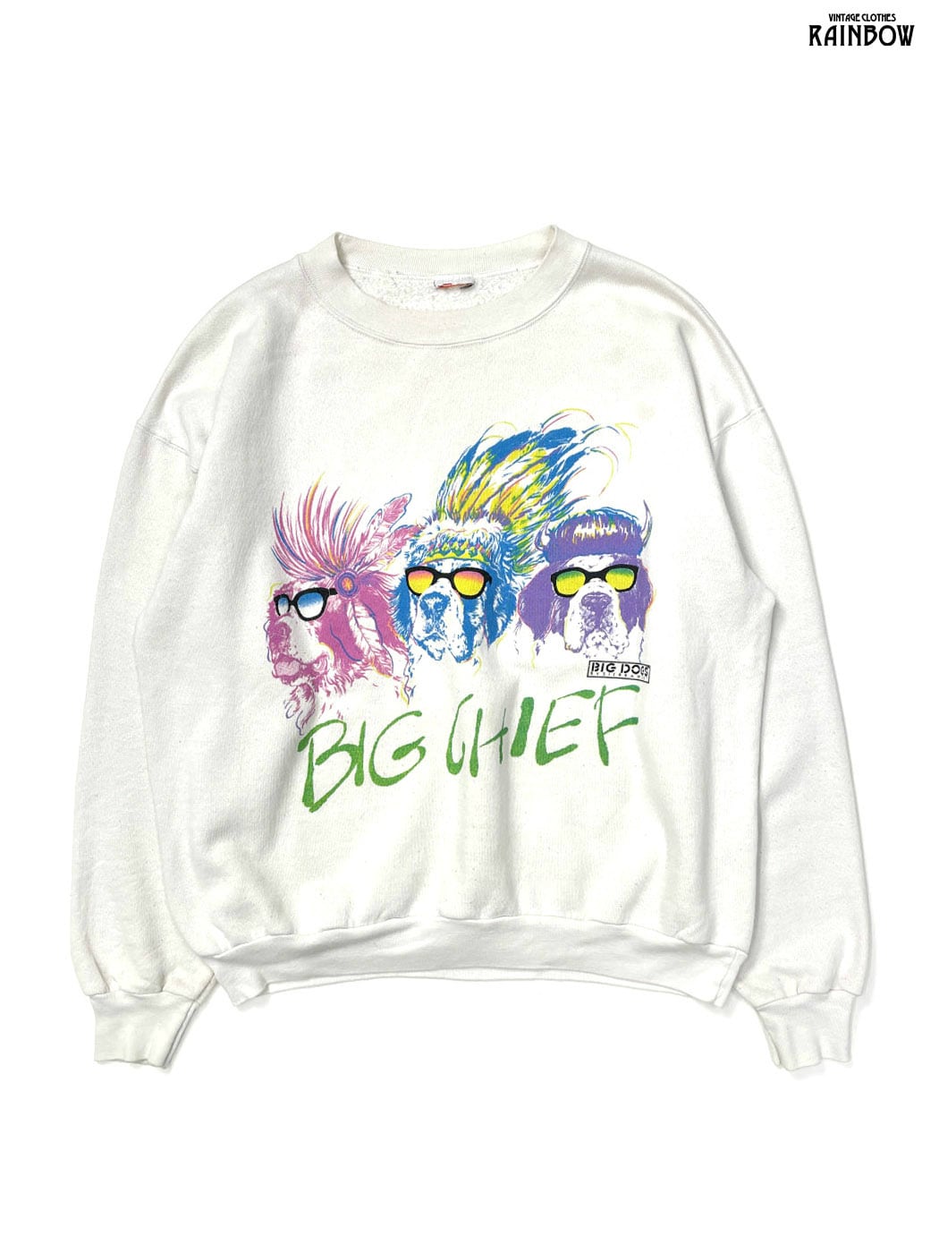 古着 犬 BIGDOGS プリント 長袖 スウェット トレーナー 白 (ttu2601107)