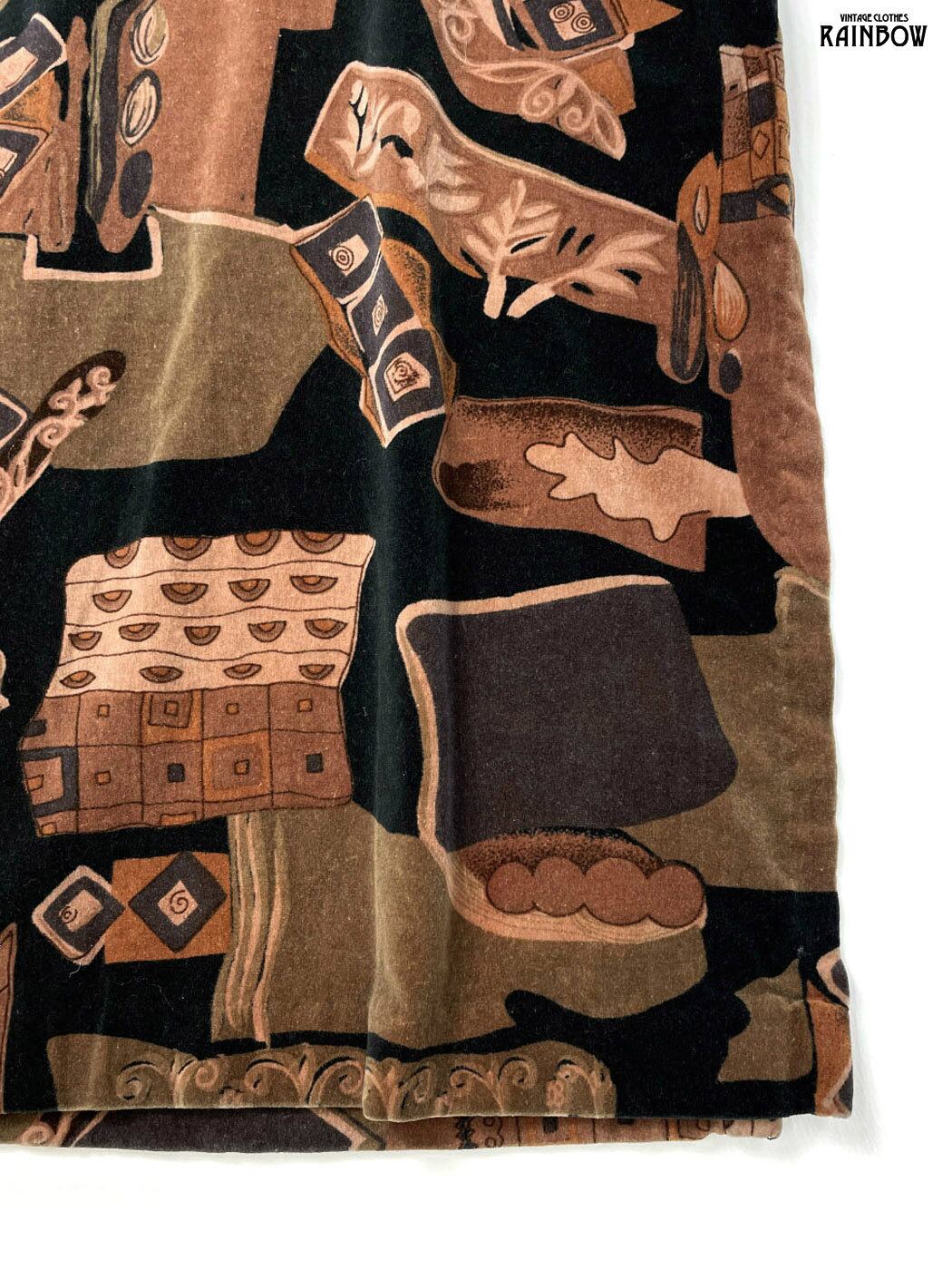 #ワンピース #ロングスリーブ #茶 #総柄 #スリット #クラシック #ベロア #ベロアワンピース