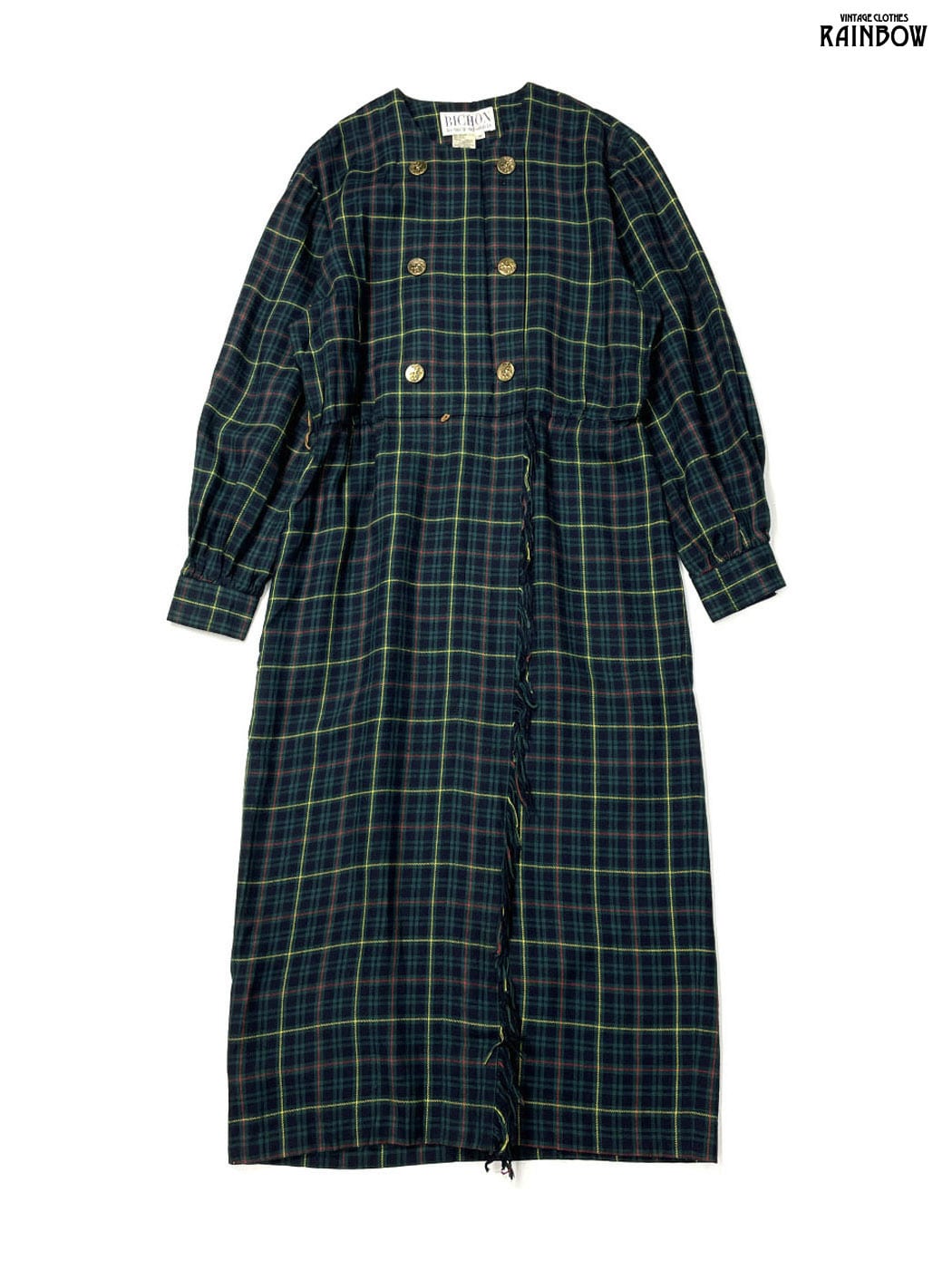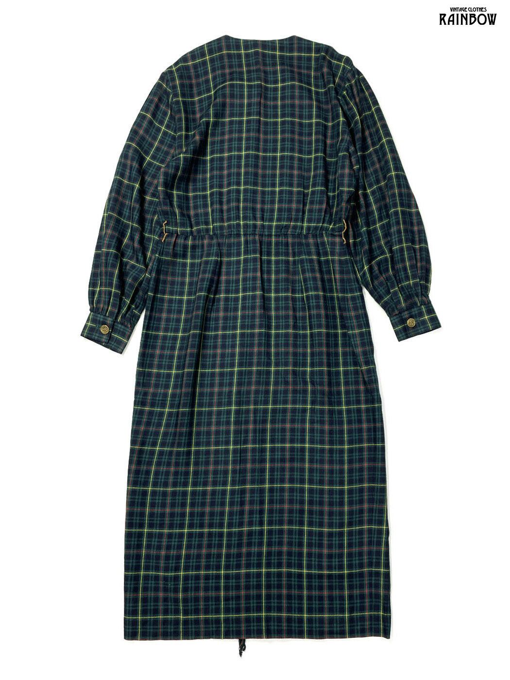 #ワンピース #ロングスリーブ #ロング丈 #緑 #チェック柄 #ウール #ウールワンピース