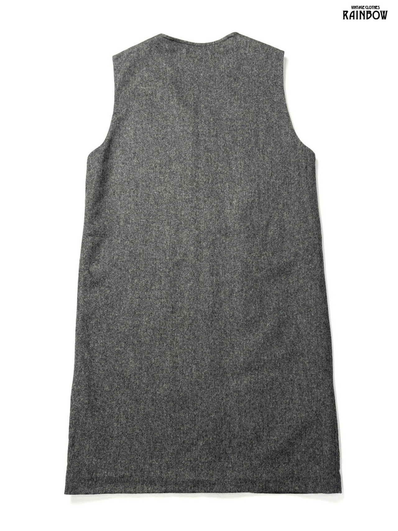 #ワンピース #ノースリーブ #膝丈 #グレー #無地 #前開き #シック #ウール #ウールワンピース