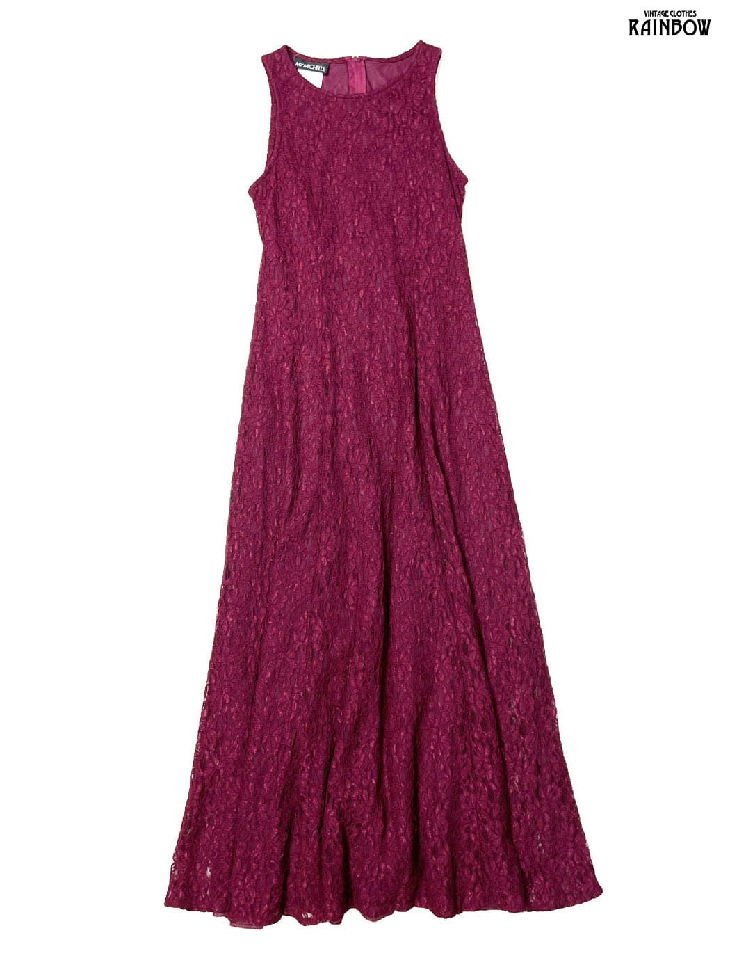 #ワンピース #ノースリーブ #ロング丈 #赤 #ボルドー #編み上げリボン #ヴィンテージ #総レース #総レースワンピース
