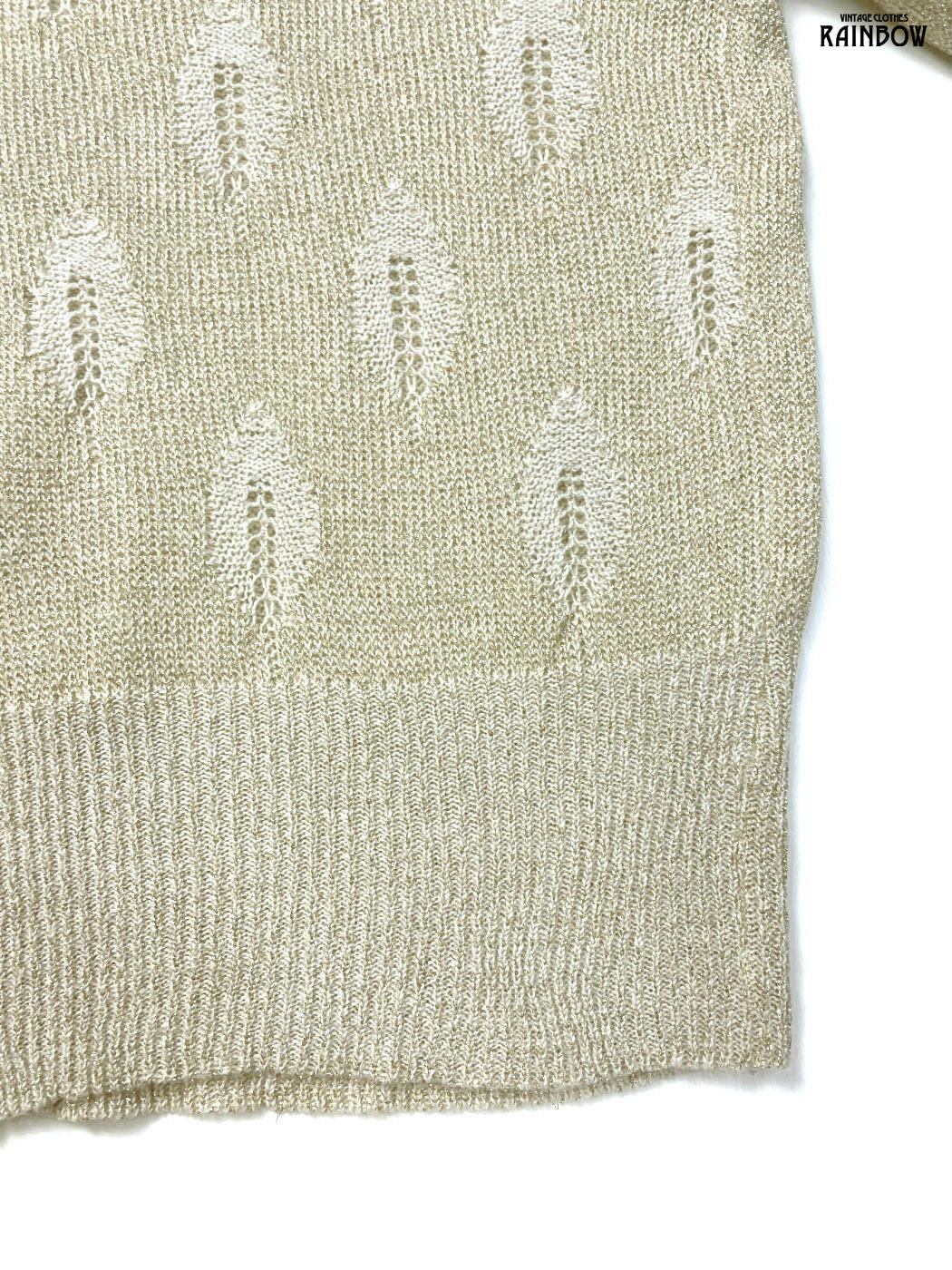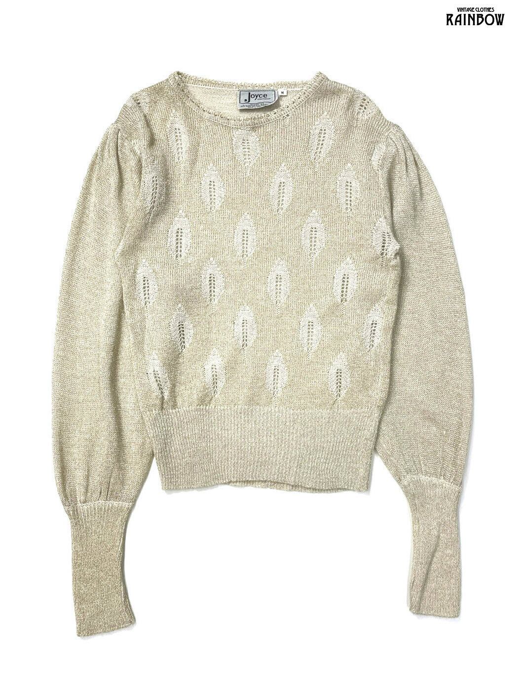 #ニット #セーター #ロングスリーブ #ベージュ #ゴールド #総柄 #ラメ織り #柄セーター