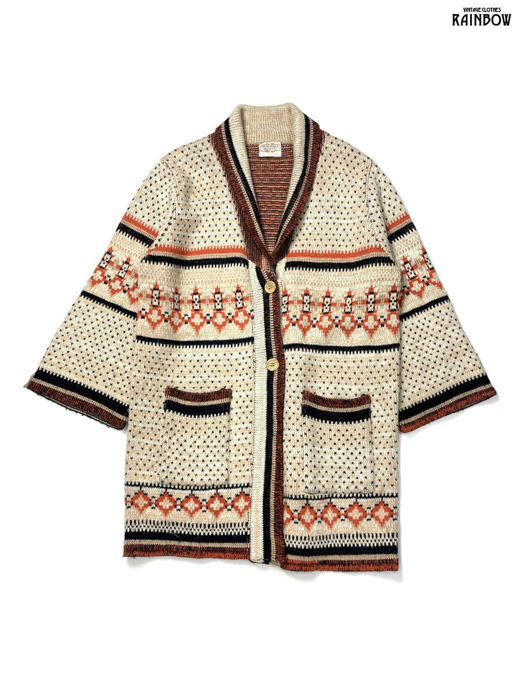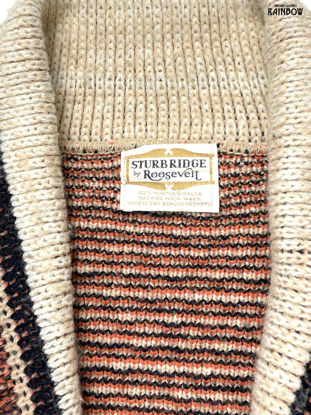 古着 STURBRIDGE by Roosevelt 総柄 エスニック柄 長袖 ニット アウター オレンジ ベージュ (ttu2512061)
