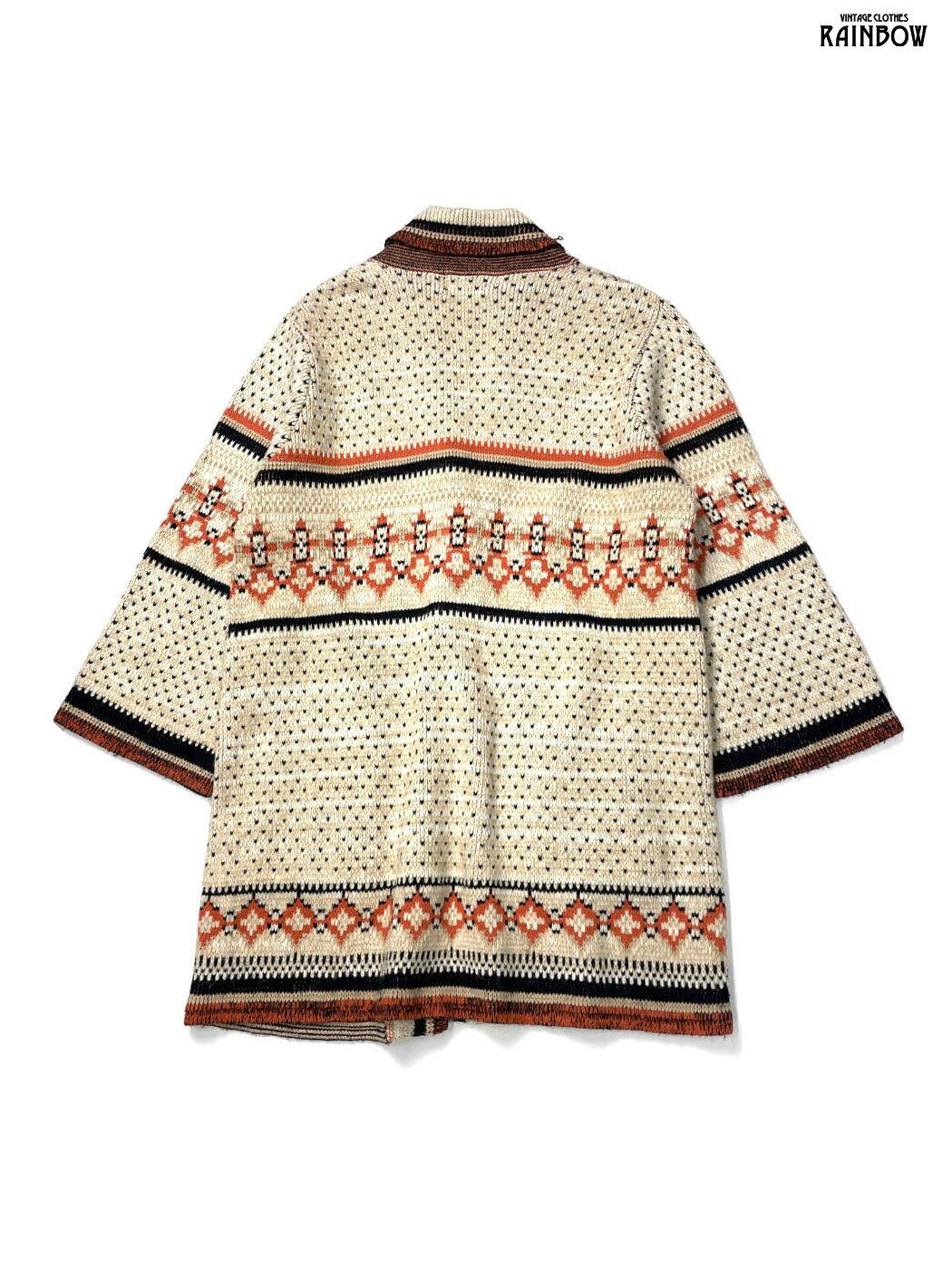 #ニット #ニットアウター #ロングスリーブ #オレンジ #ベージュ #総柄 #エスニック柄 #エスニック #ニット地 #ニットアウター