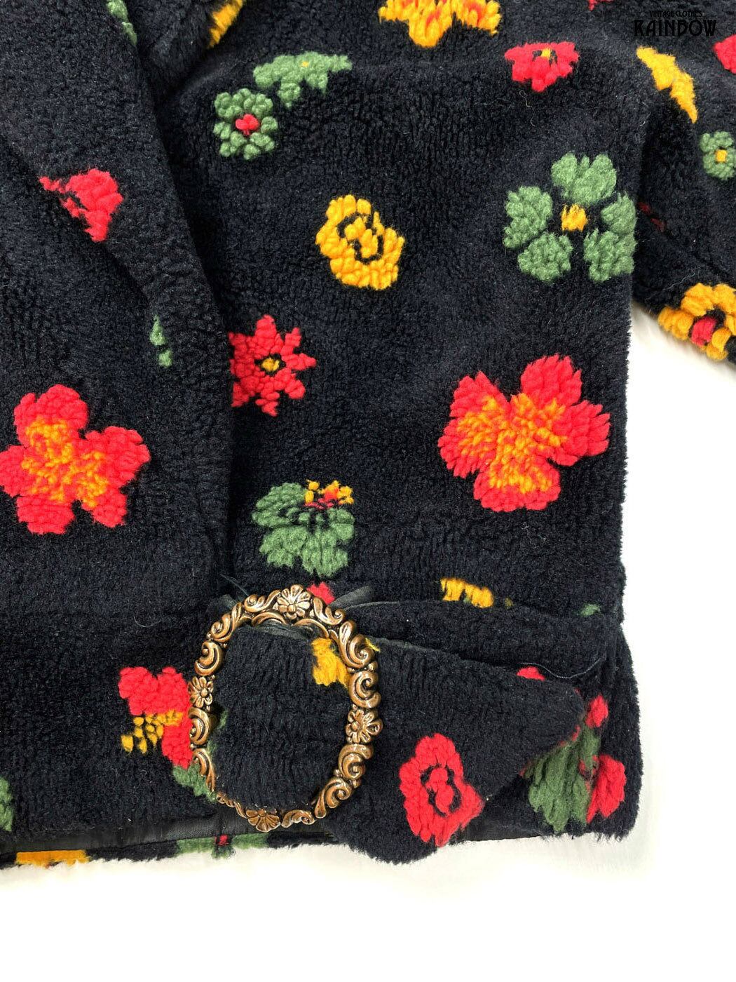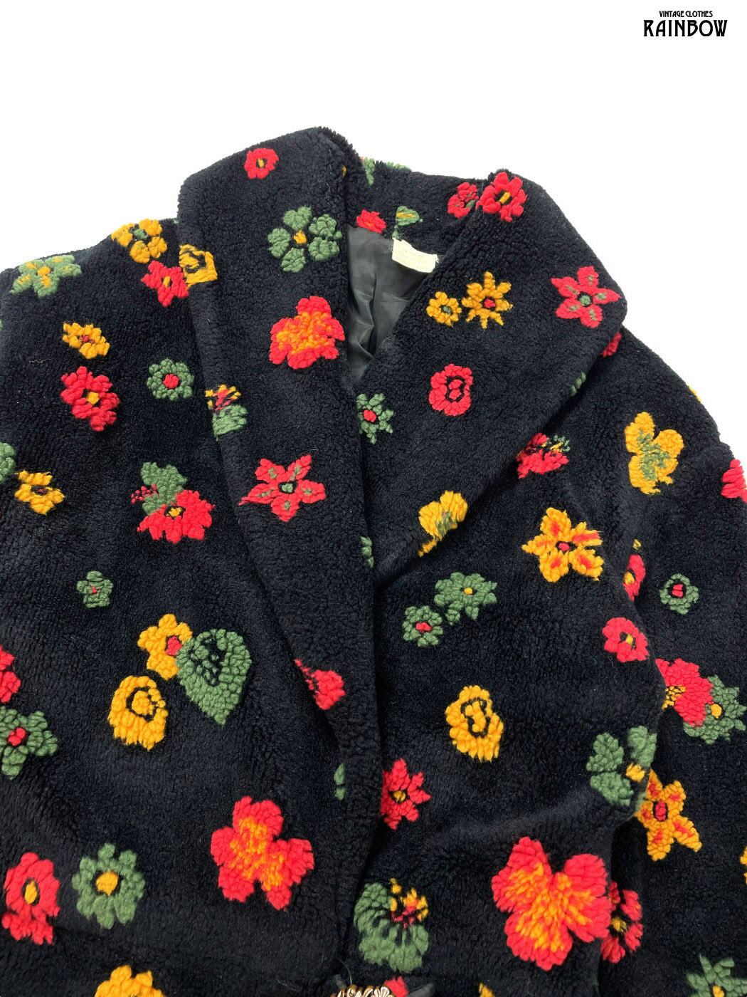 古着 フランス製 花柄 ボア 長袖 アウター ヘビージャケット 黒 (ttu2512066)