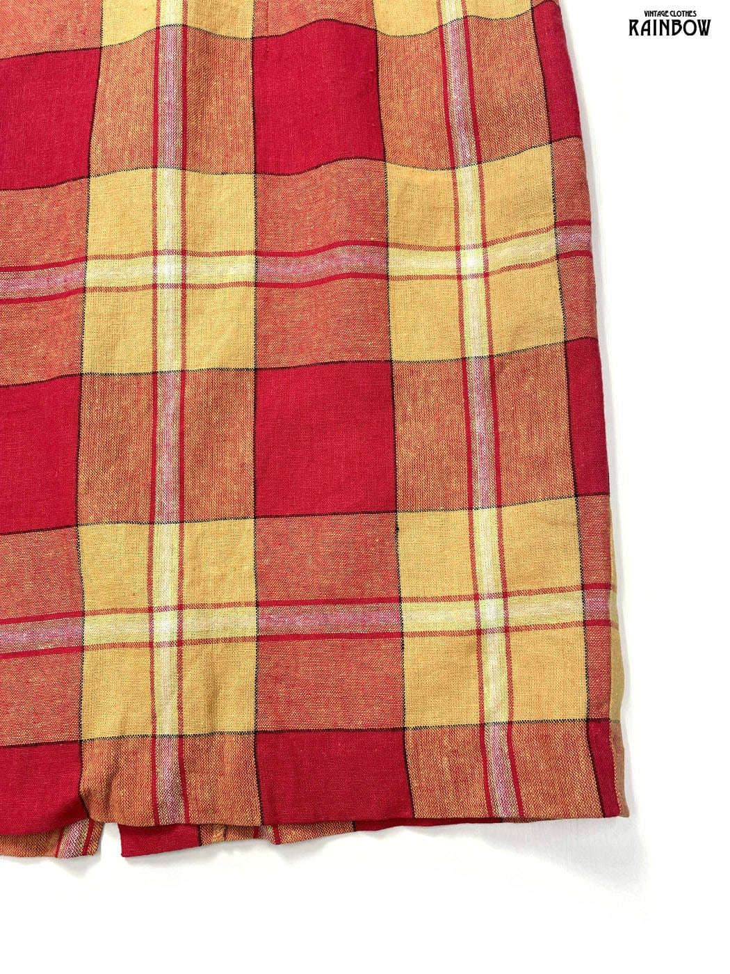 古着 SAGE HARBOR サグハーバー チェック柄 リネン 膝丈 ノースリーブ ワンピース 赤 オレンジ (otu2601064)