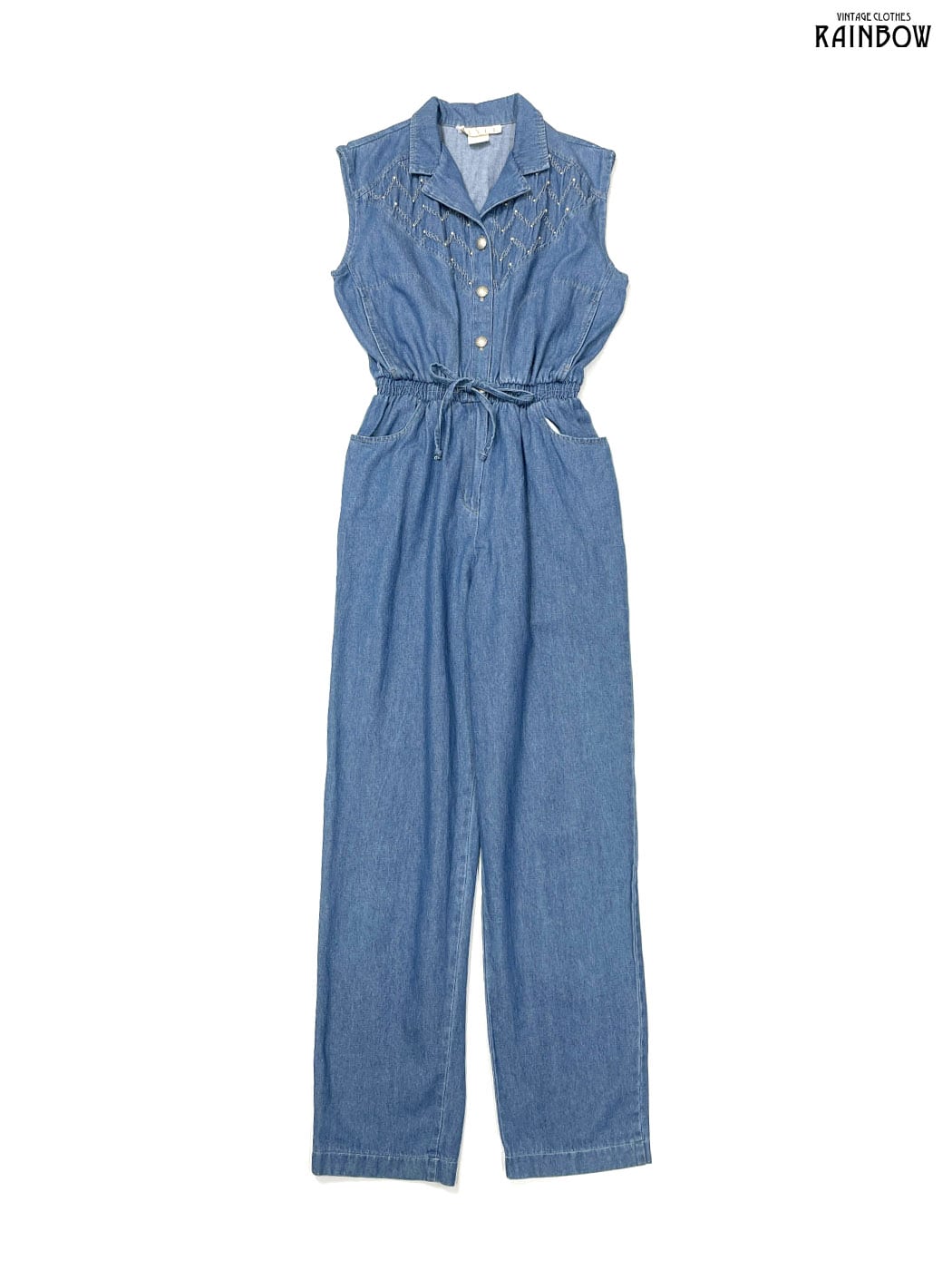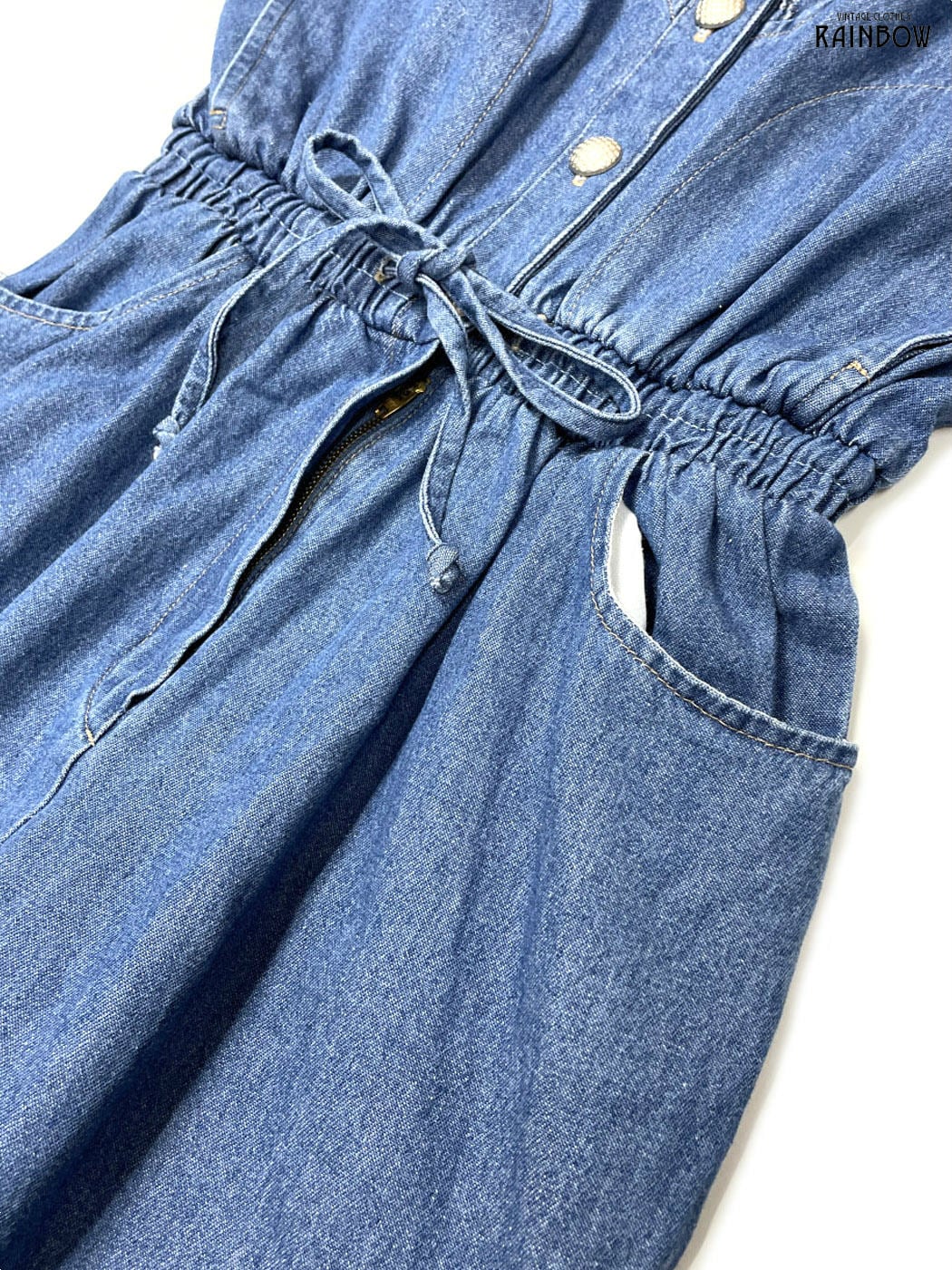#ワンピース #ノースリーブ #ロング丈 #青 #無地 #アメリカ製 #シンプル #デニム #ノースリーブオールインワン