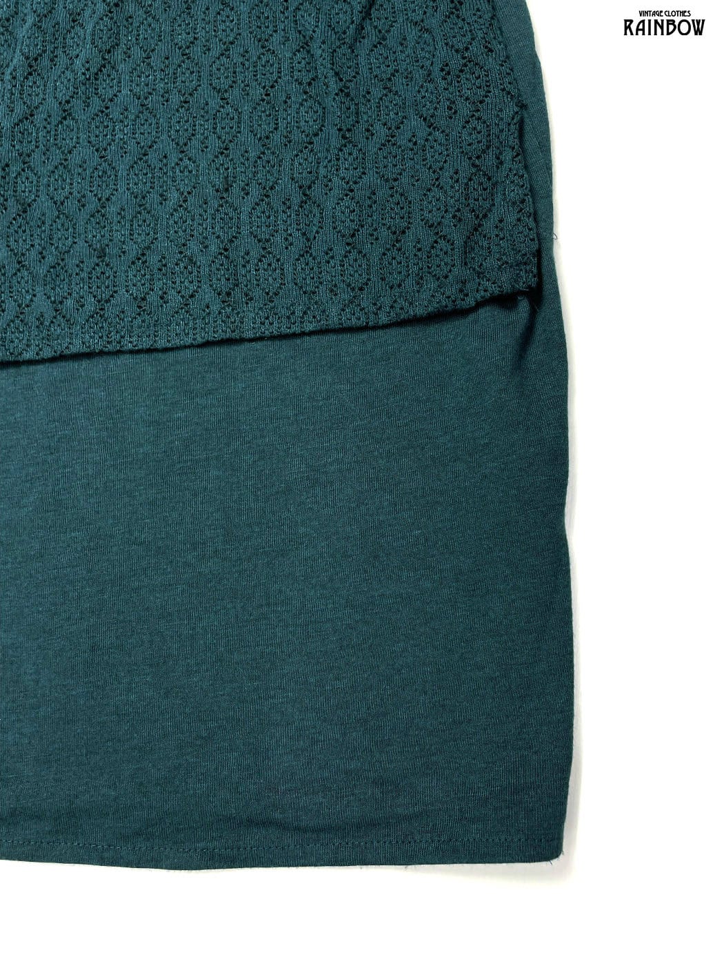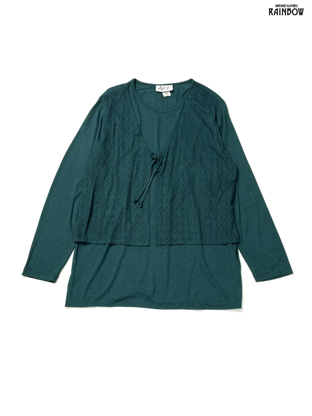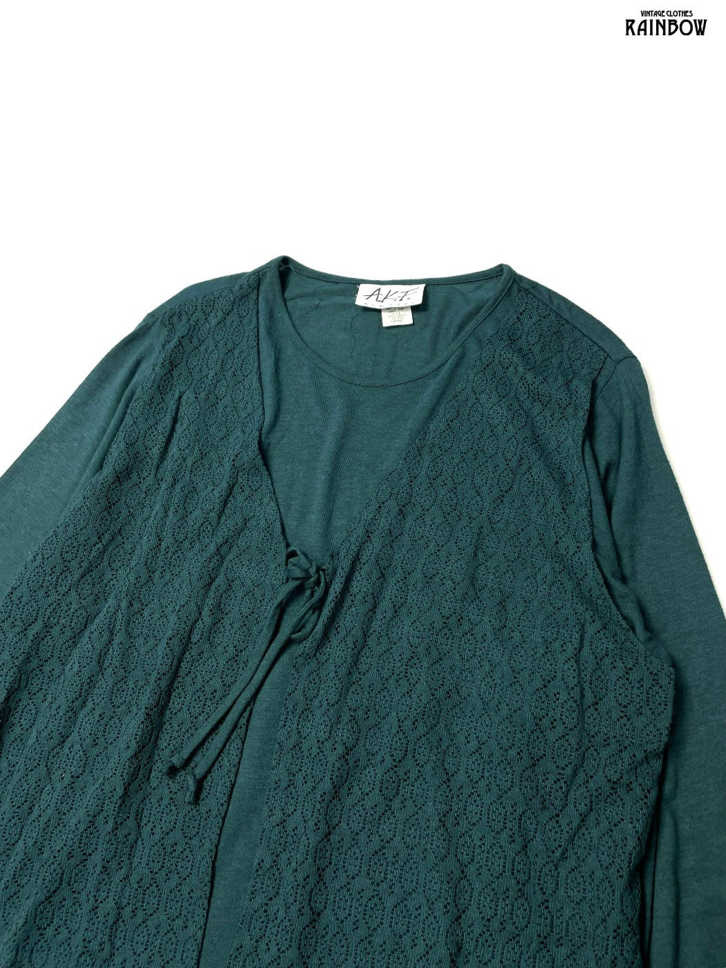 #ワンピース #セットアップ #ロングスリーブ #ロング丈 #緑 #無地 #レイヤード風 #セットアップ