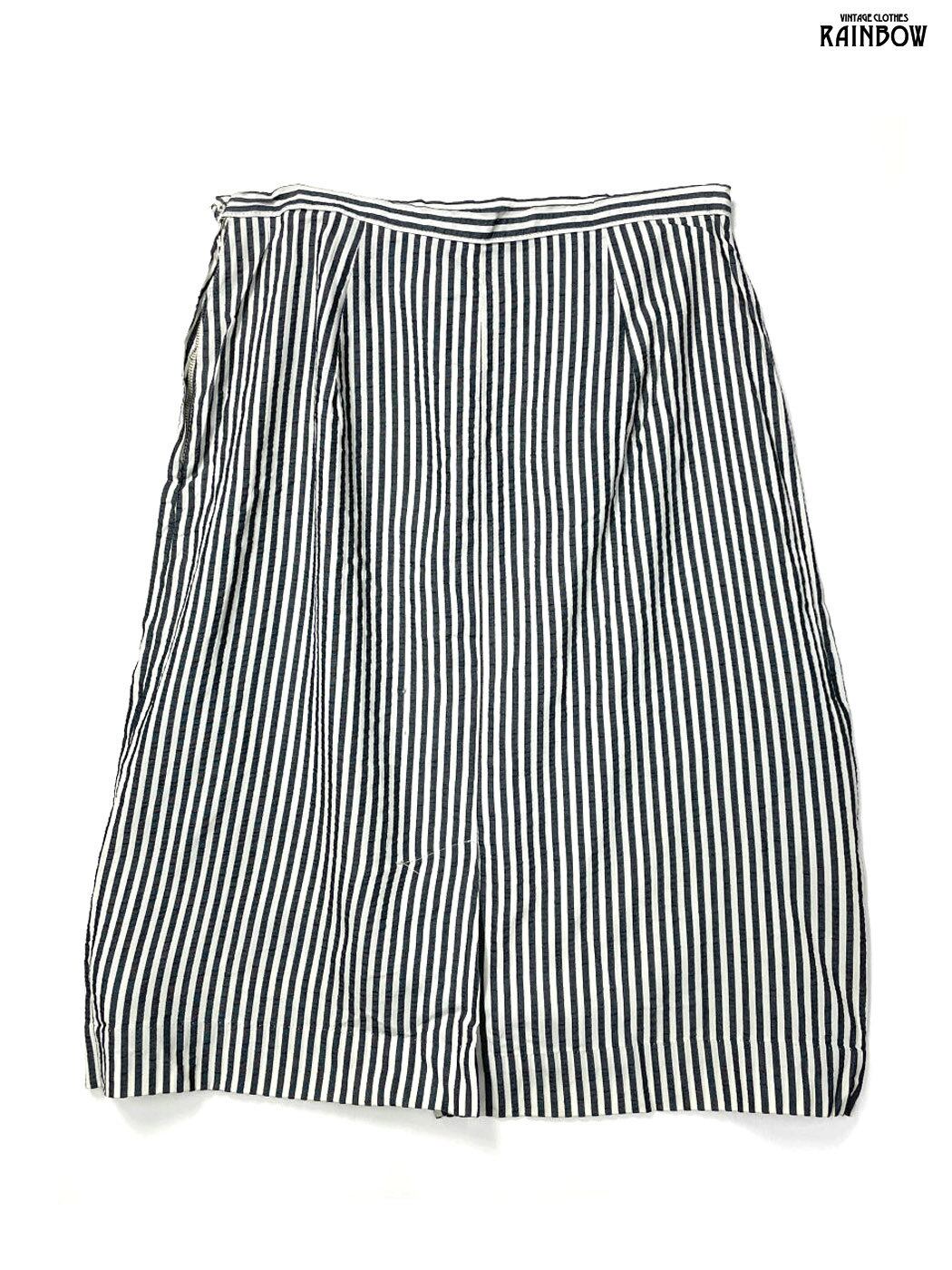 古着 スリット ストライプ柄 膝丈 スカート グレー (btu2601084)