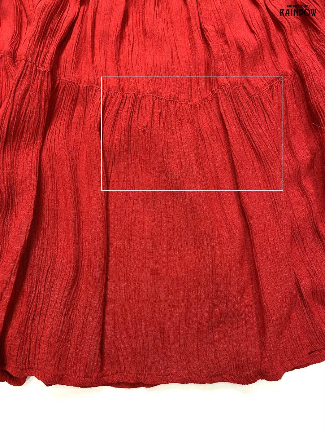 古着 シワ加工 無地 ロング丈 ティアード スカート 赤 (btu2601089)