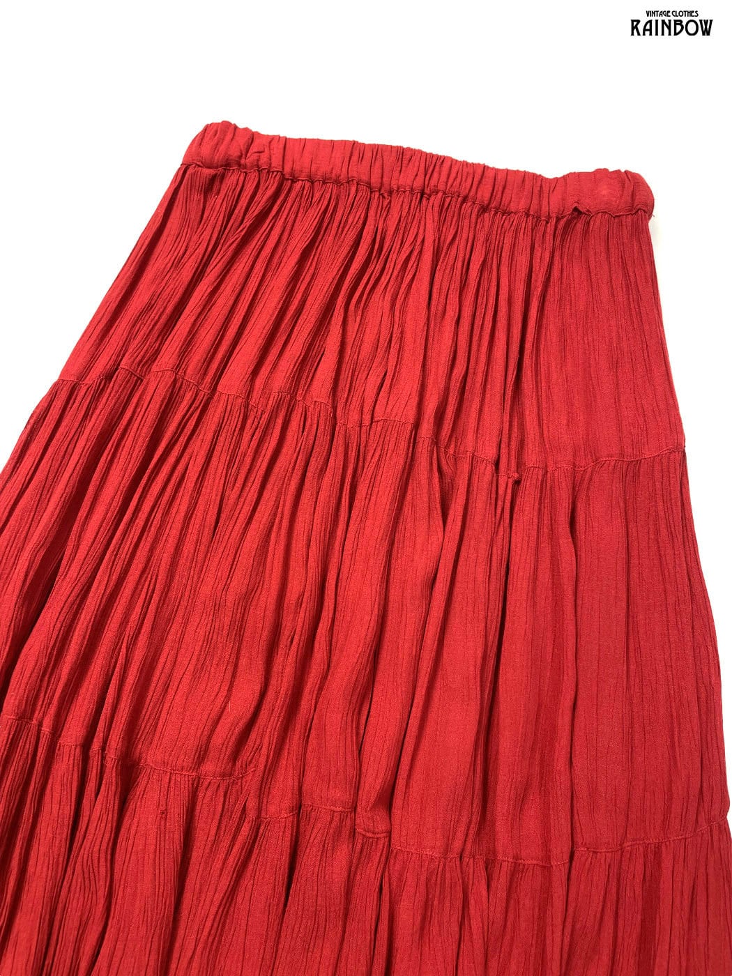 #スカート #ロング丈 #ティアード #赤 #無地 #シワ加工 #シンプル #レーヨン #無地ライトスカート