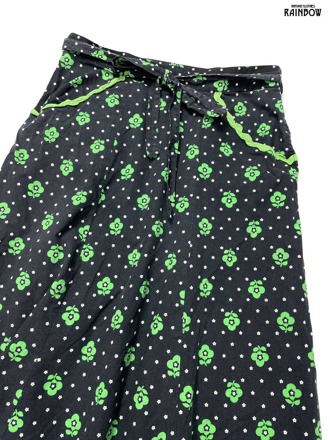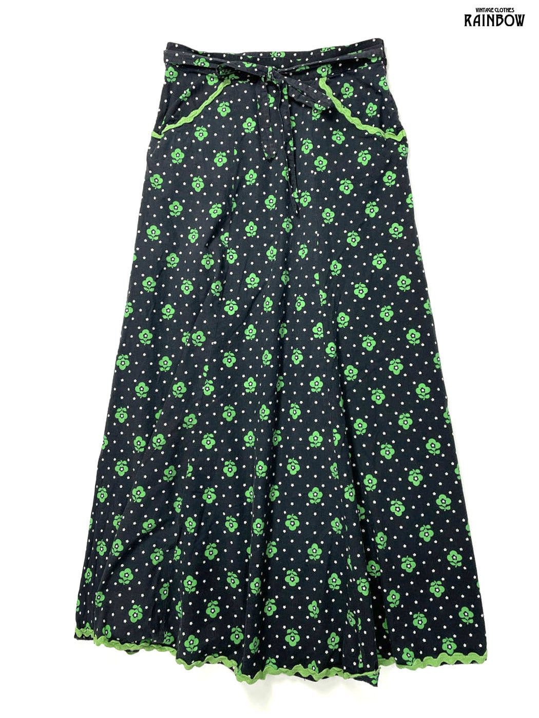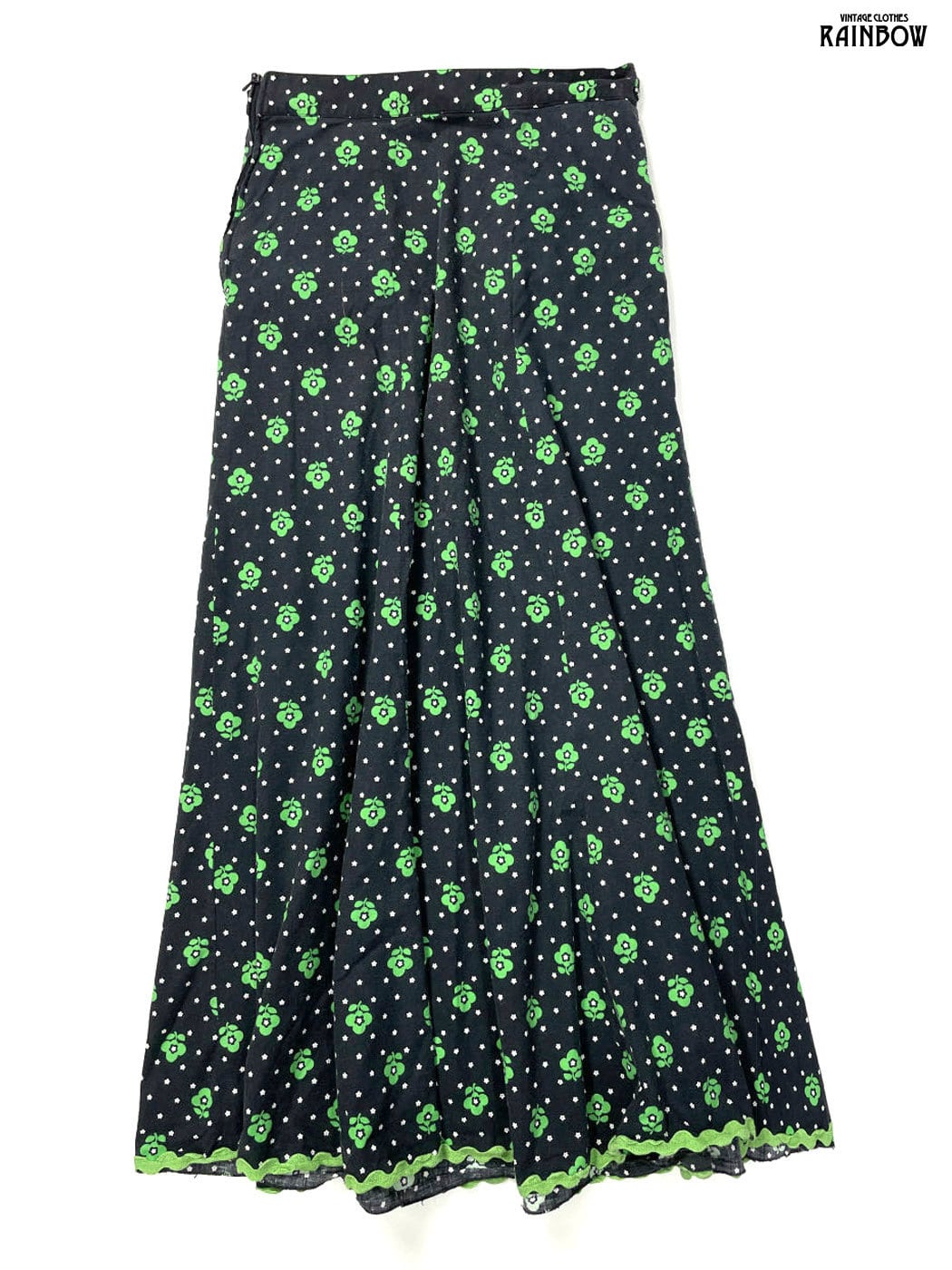 古着 リボン 花柄 コットン ロング丈 スカート 黒 (btu2601092)