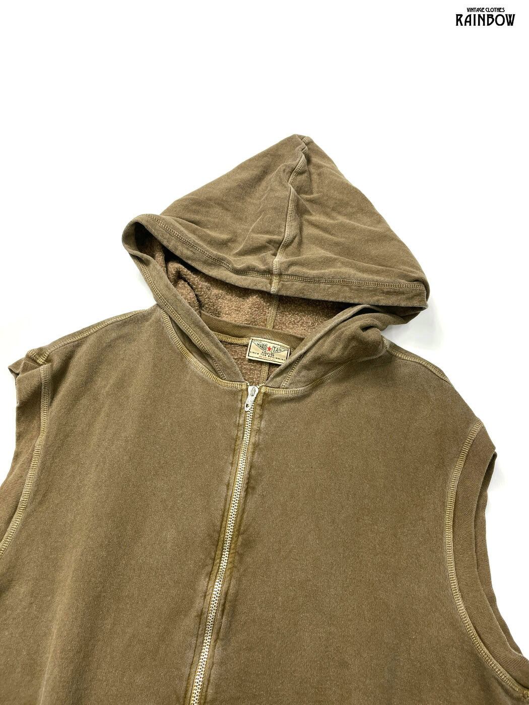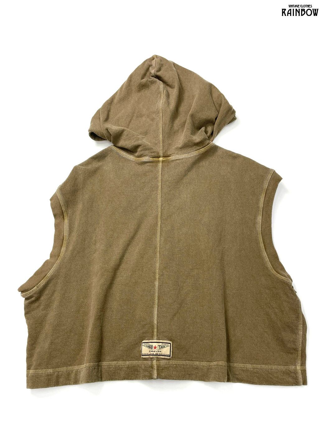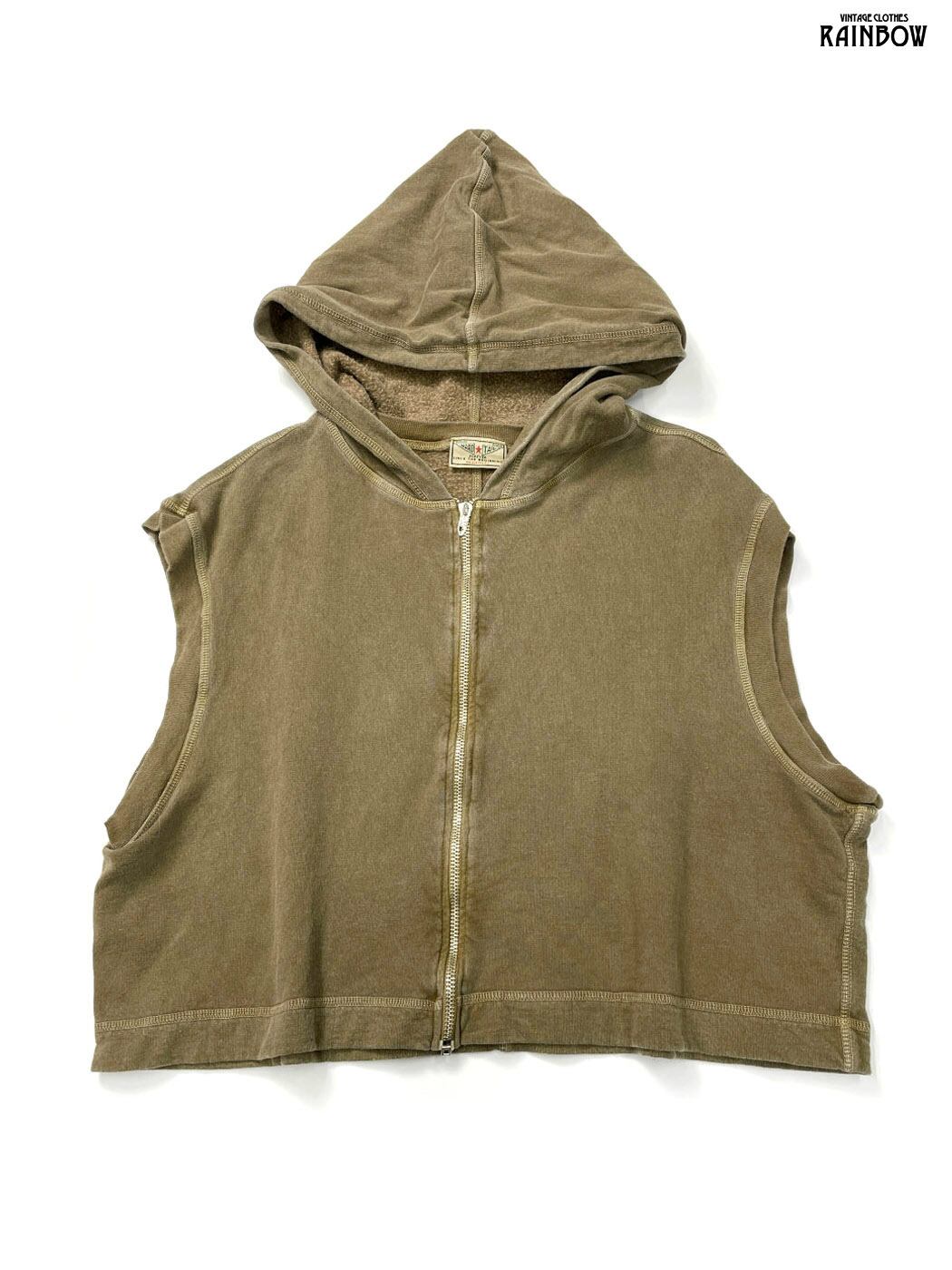 古着 Hard Tail ハードテイル アメリカ製 TALONジップ 無地 ノースリーブ パーカー ベスト 茶 カーキ (ttu2601114)