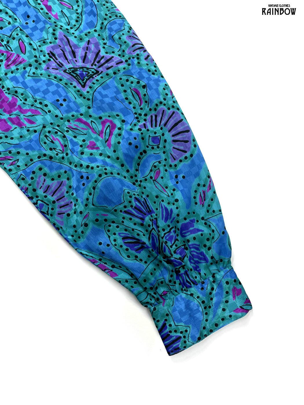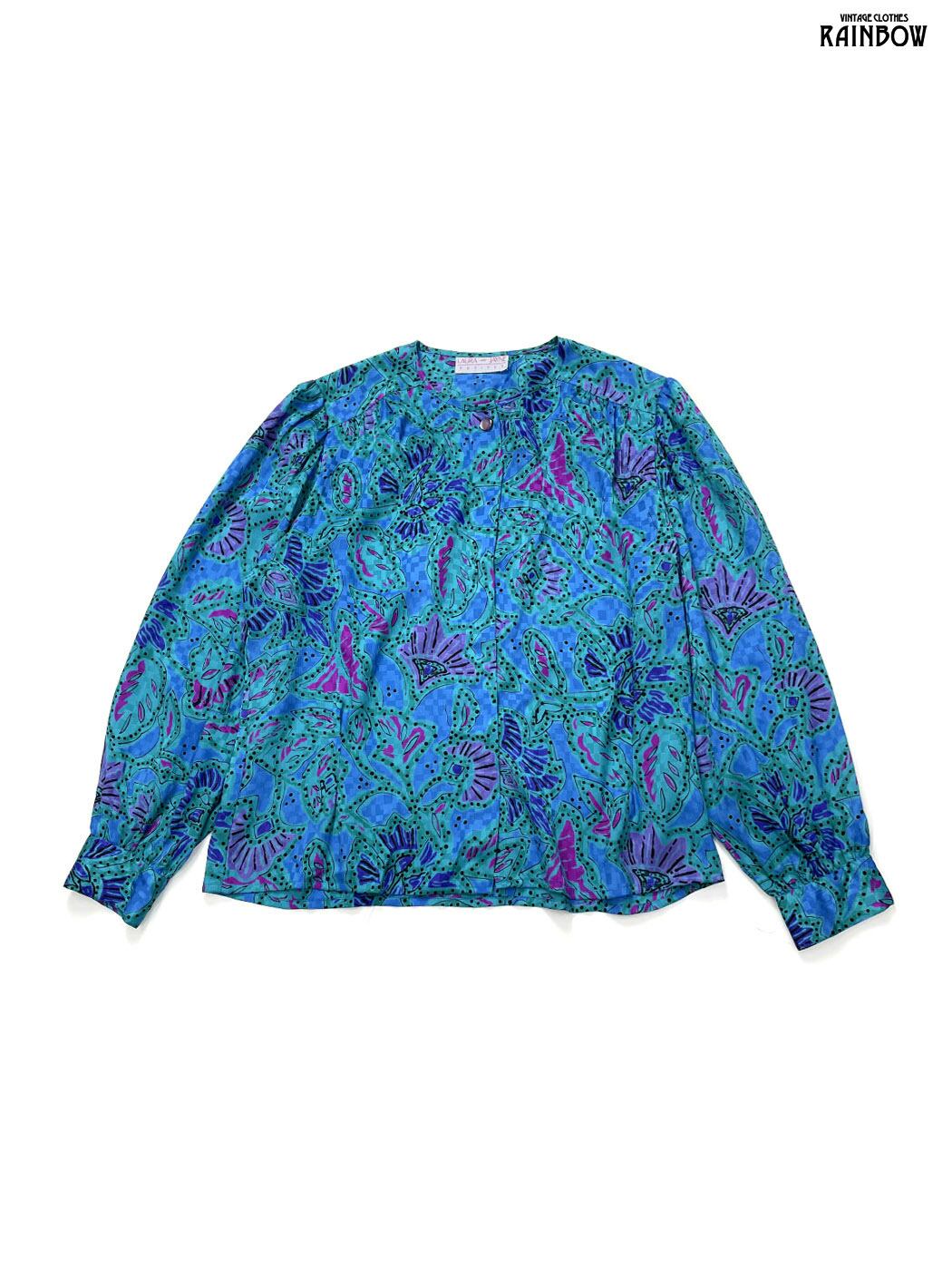 #ブラウス #bブラウス #ロングスリーブ #青 #花柄 #クラシック #柄シャツ