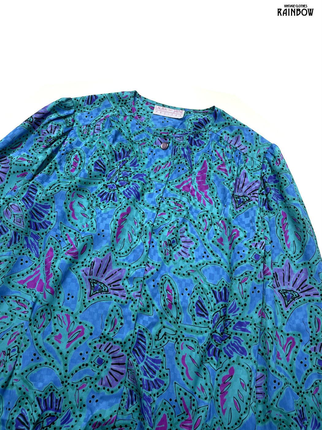 古着 LAURA AND JAYNE 花柄 長袖 ブラウス 青 (ttu2601121)