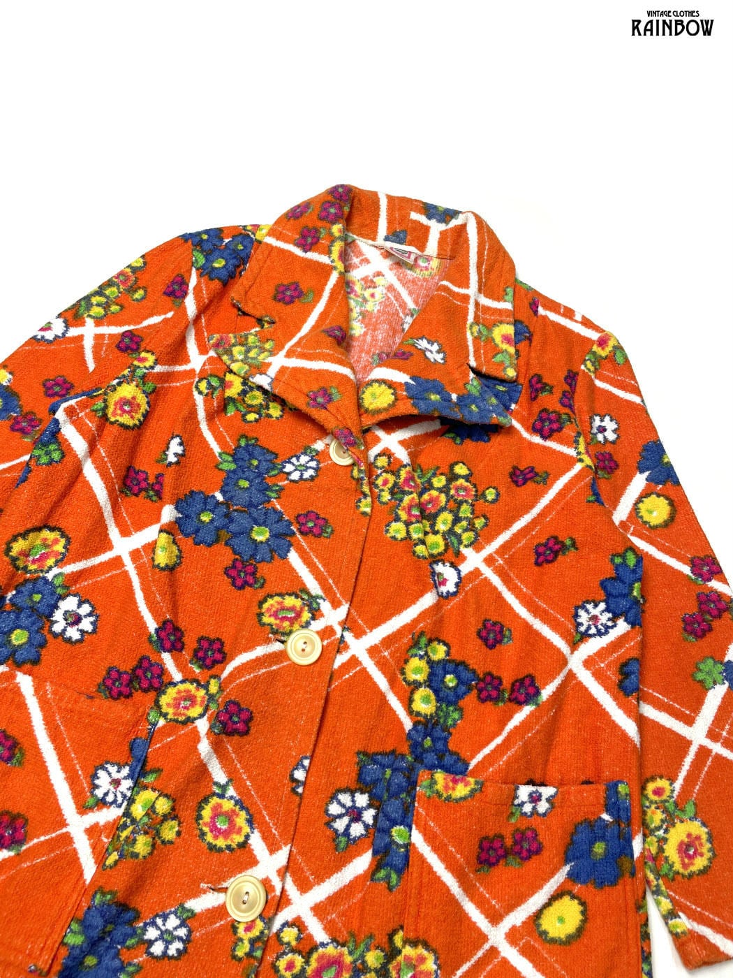 #アウター #ライトコート #ロングスリーブ #オレンジ #花柄 #コットン #柄ライトコート