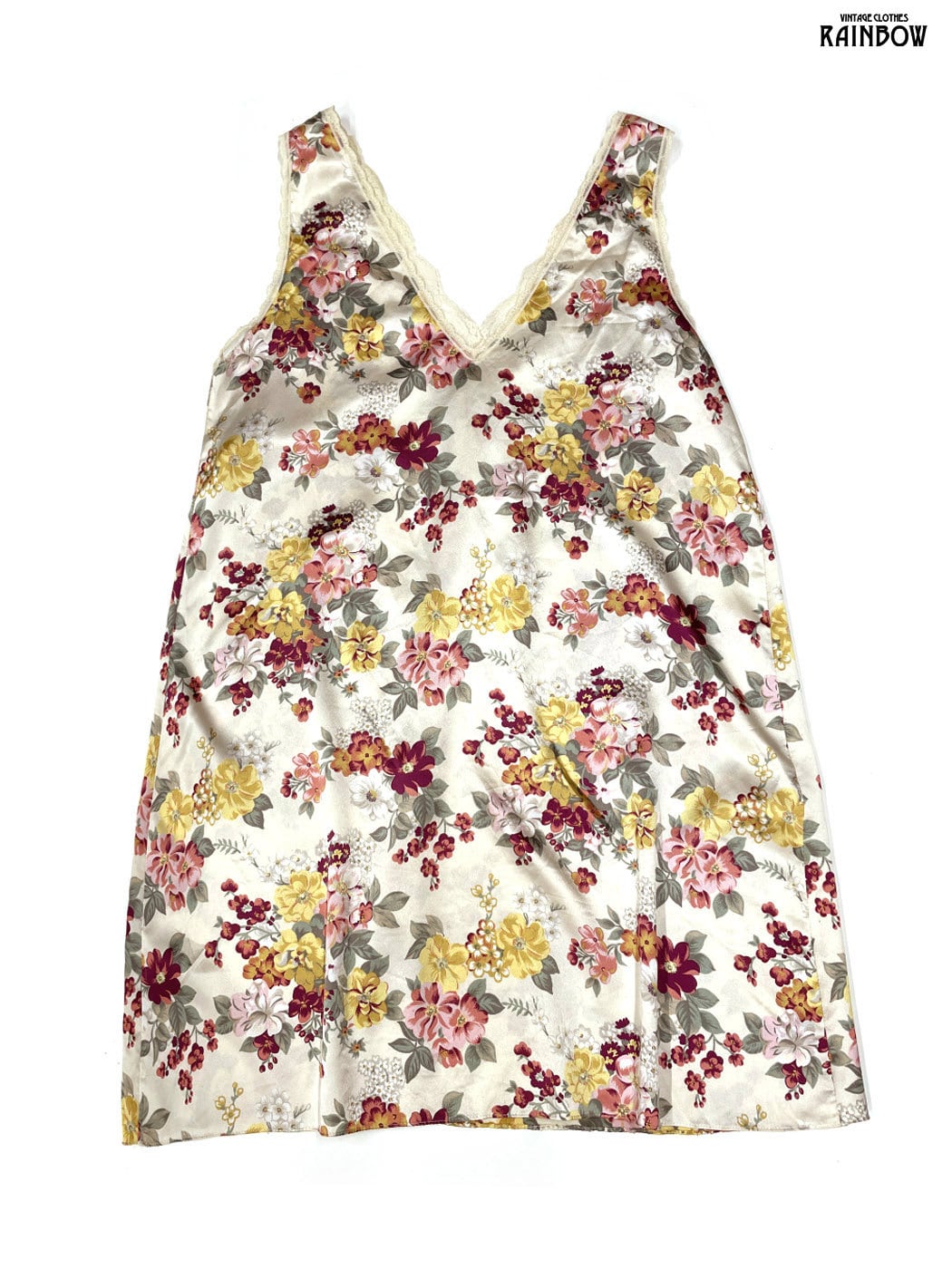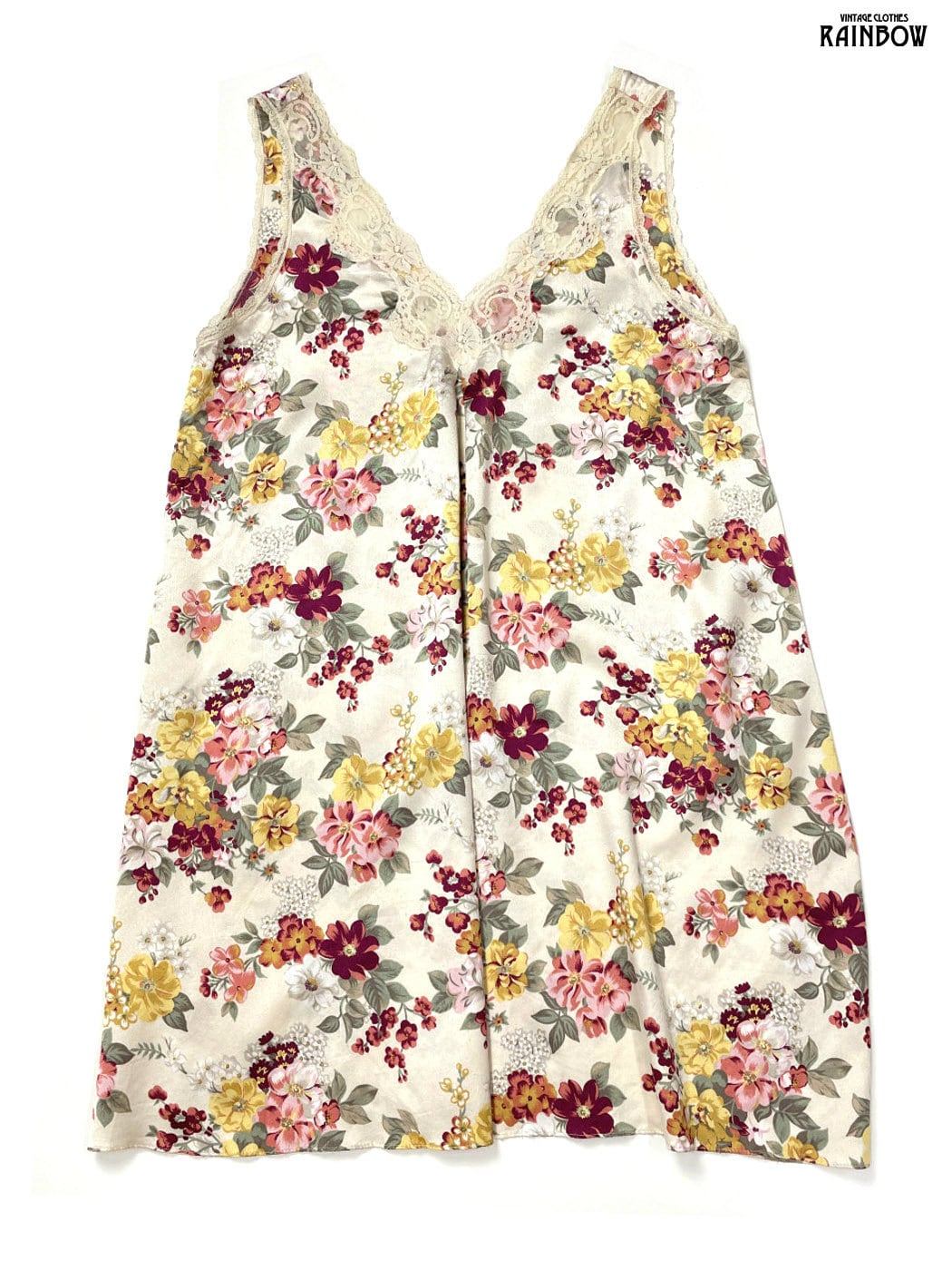 #ワンピース #ノースリーブ #膝丈 #ベージュ #花柄 #レース #ガーリー #サテン #ランジェリーワンピース