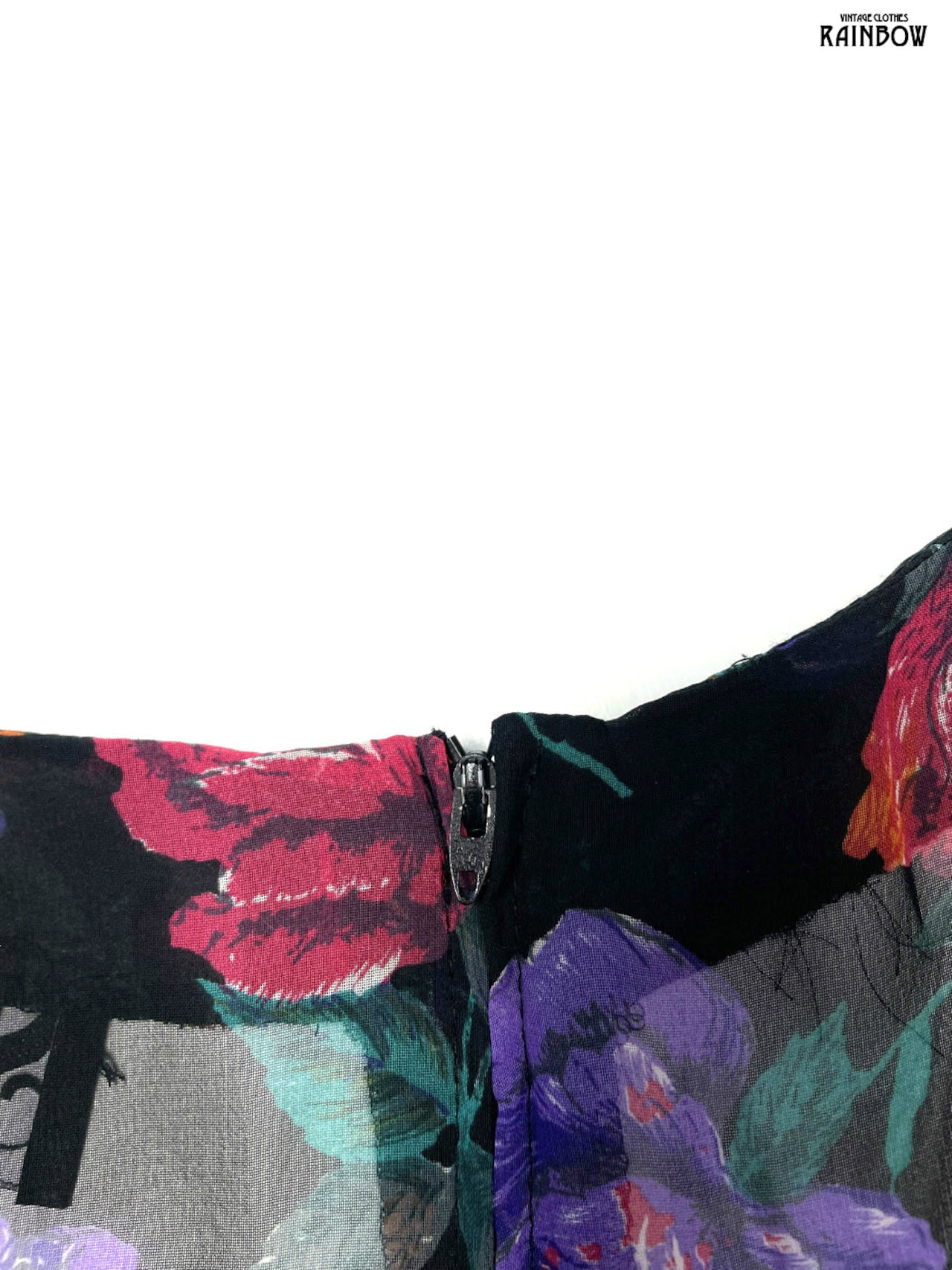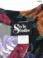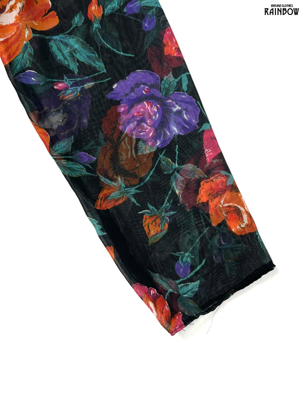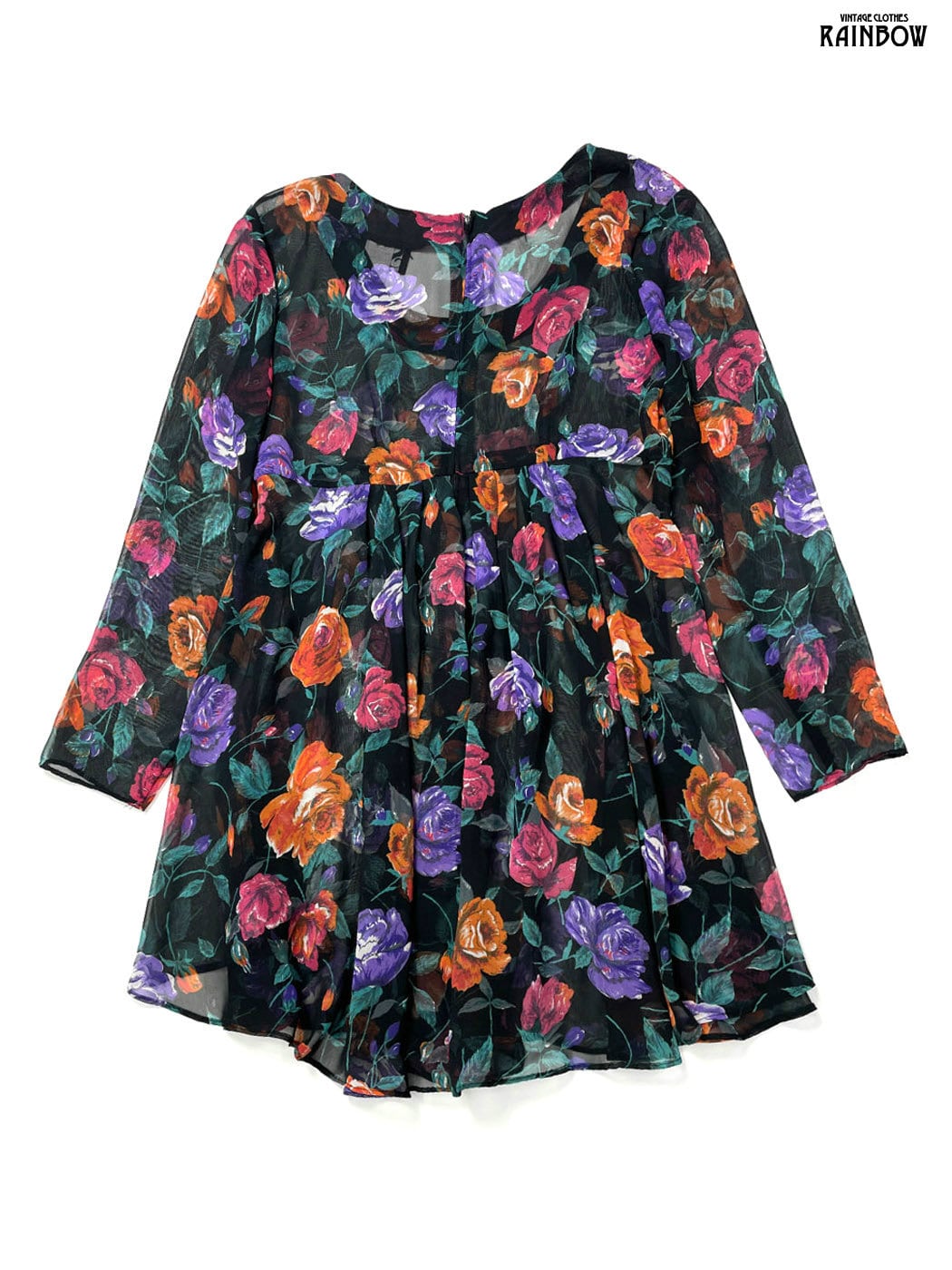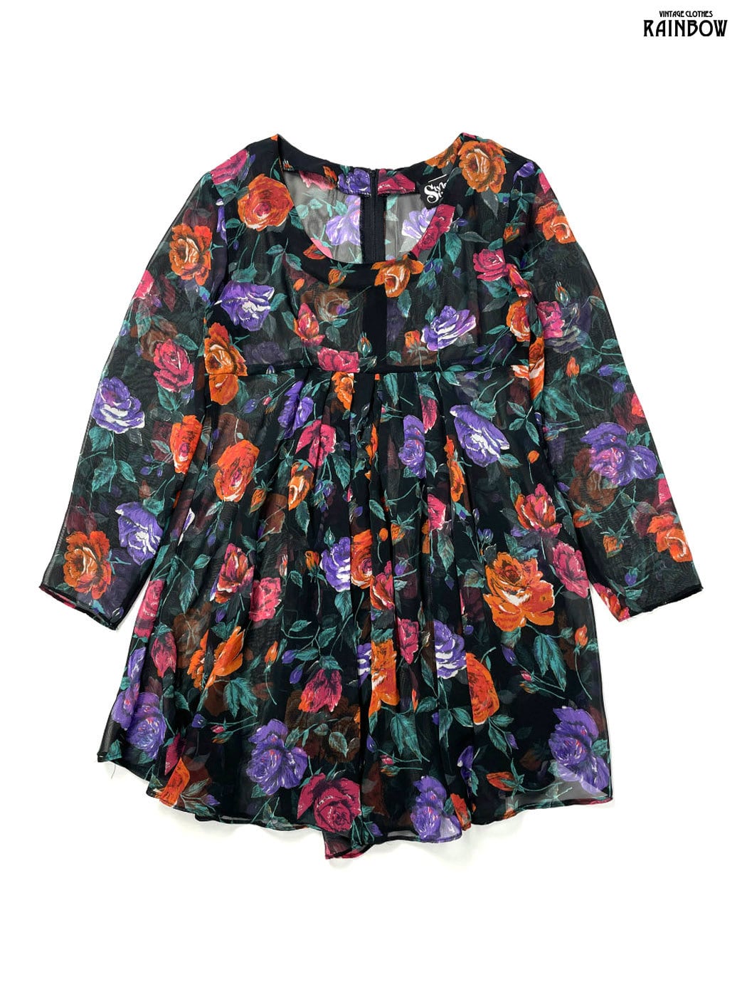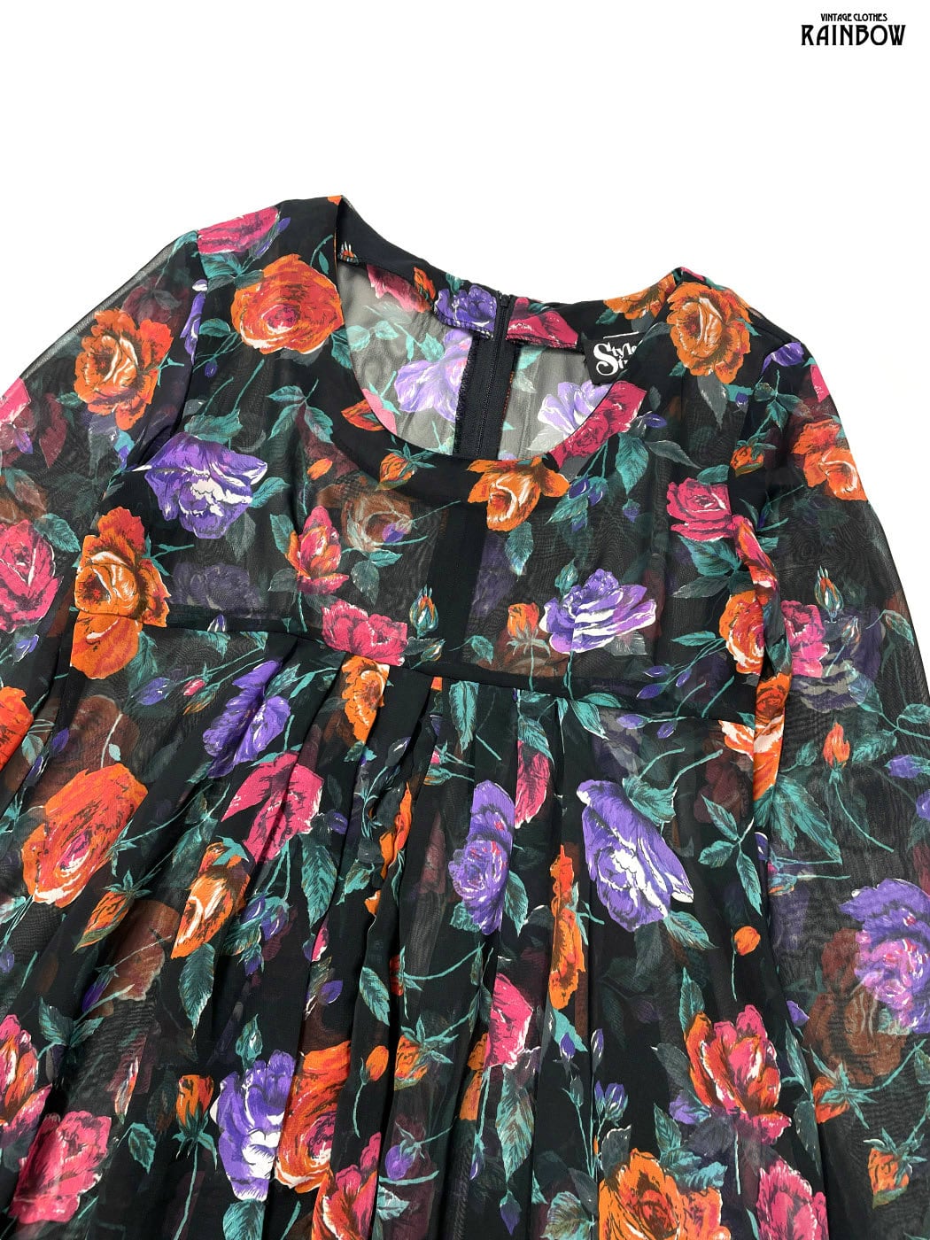 #ワンピース #ロングスリーブ #膝丈 #ウエスト切り替え #黒 #花柄 #アメリカ製 #TALONジップ #クラシック #シフォン #シフォンワンピース