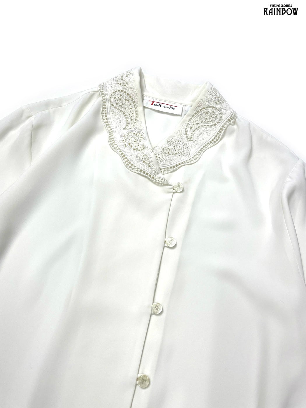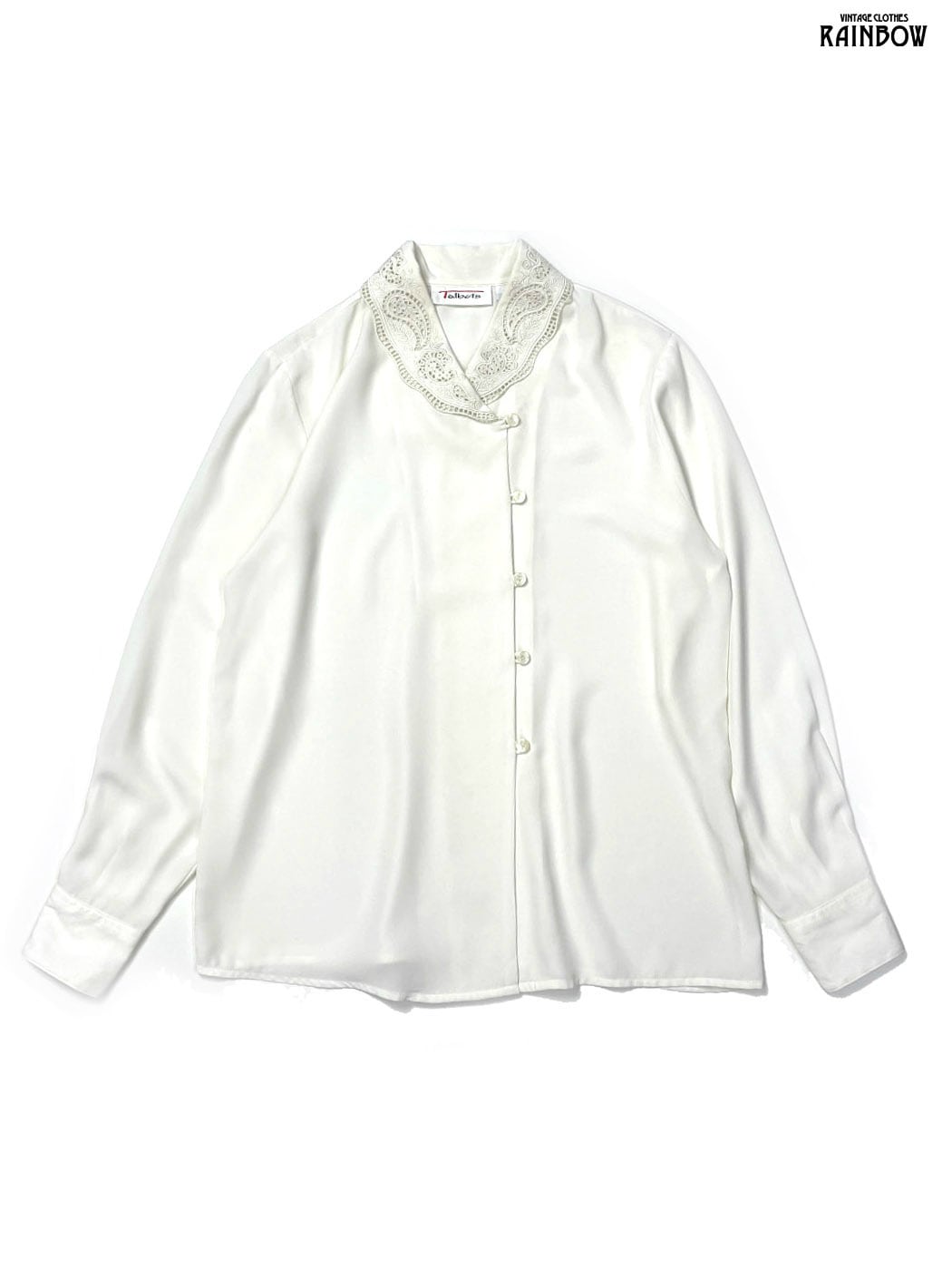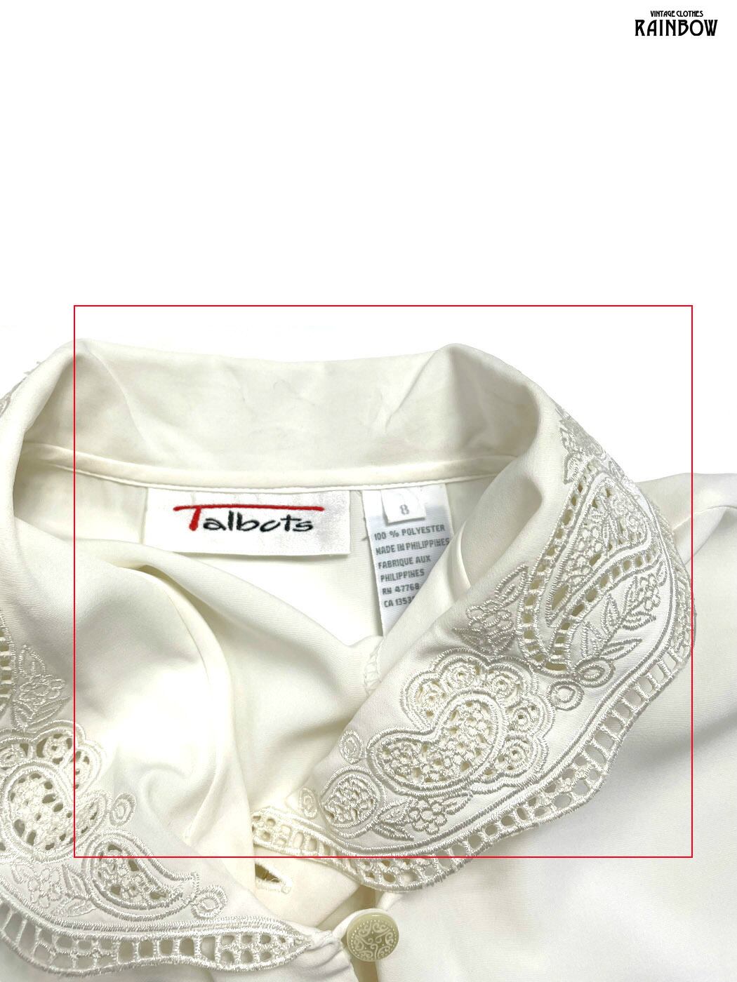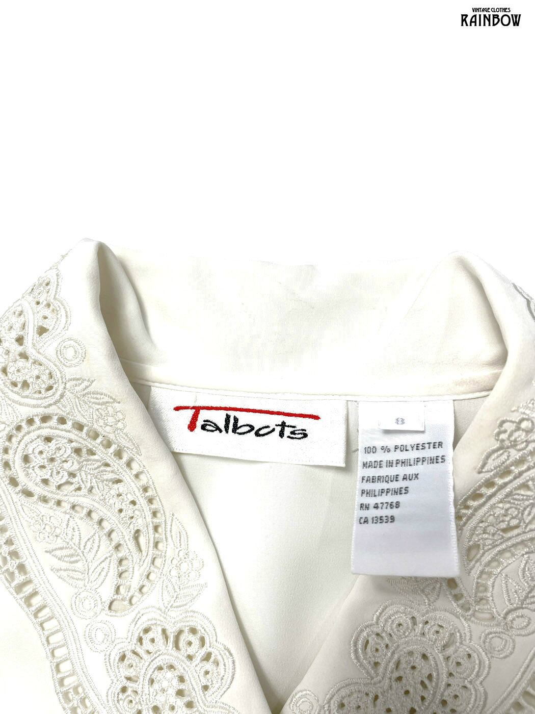 古着 Talbots タルボット 刺繍 無地 長袖 ブラウス 生成り アイボリー (ttu2601140)
