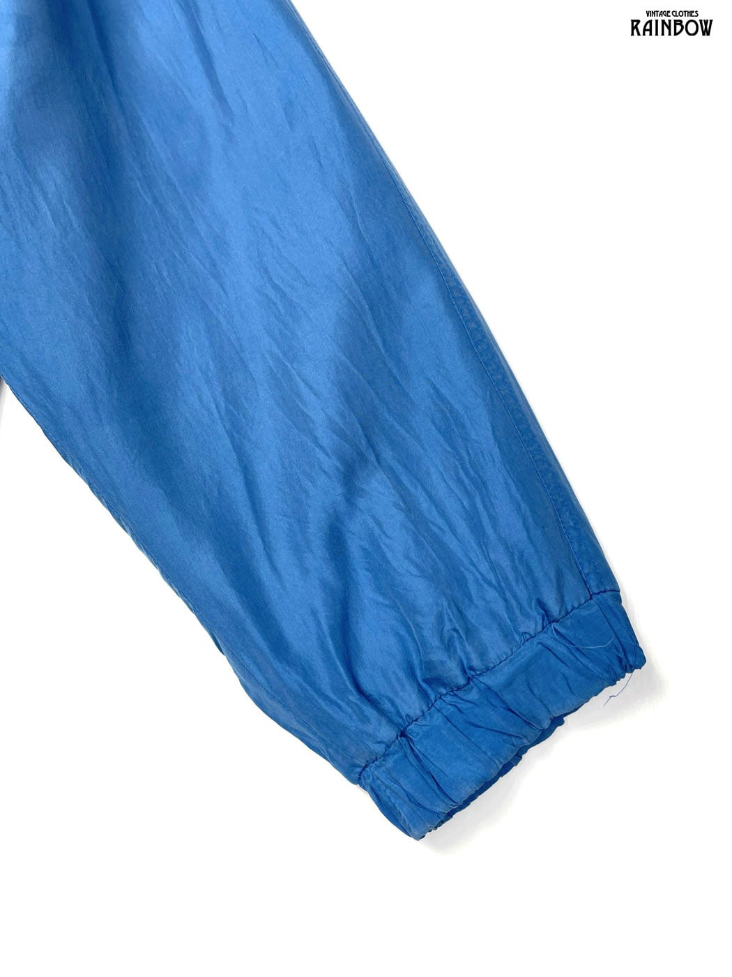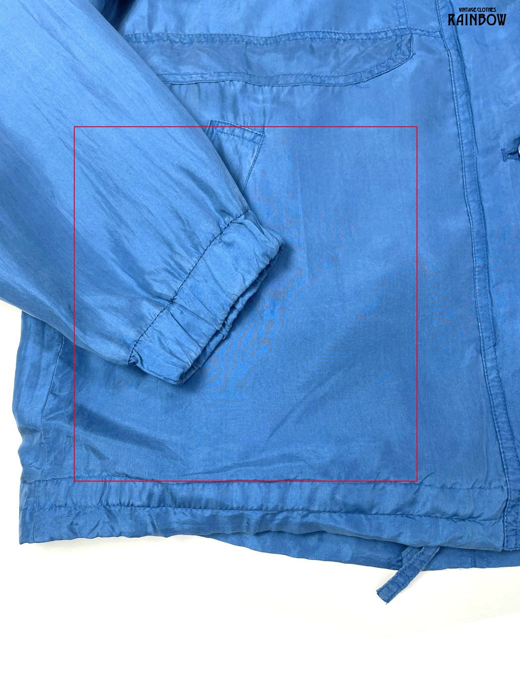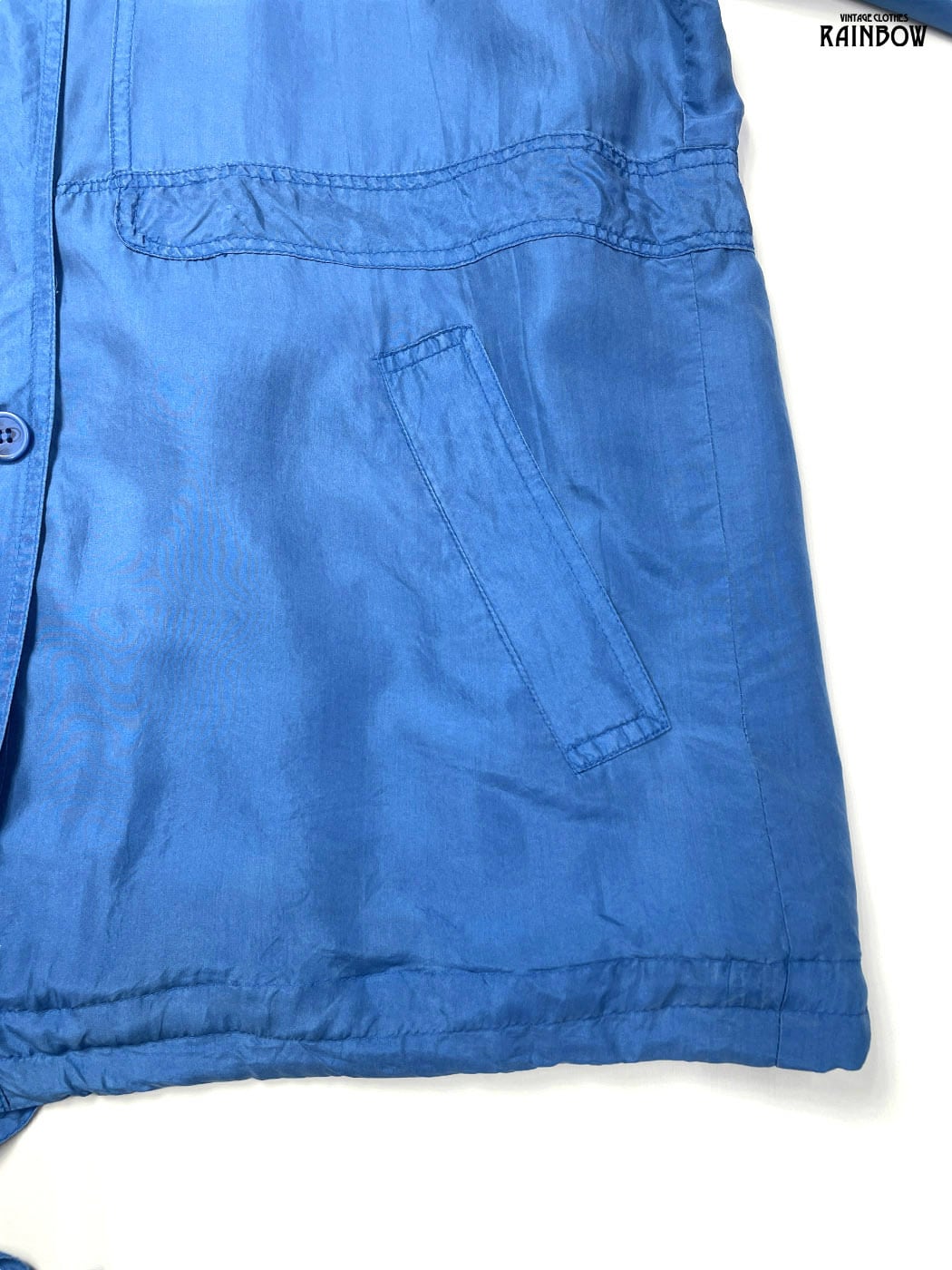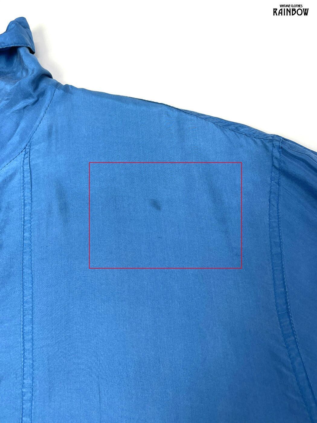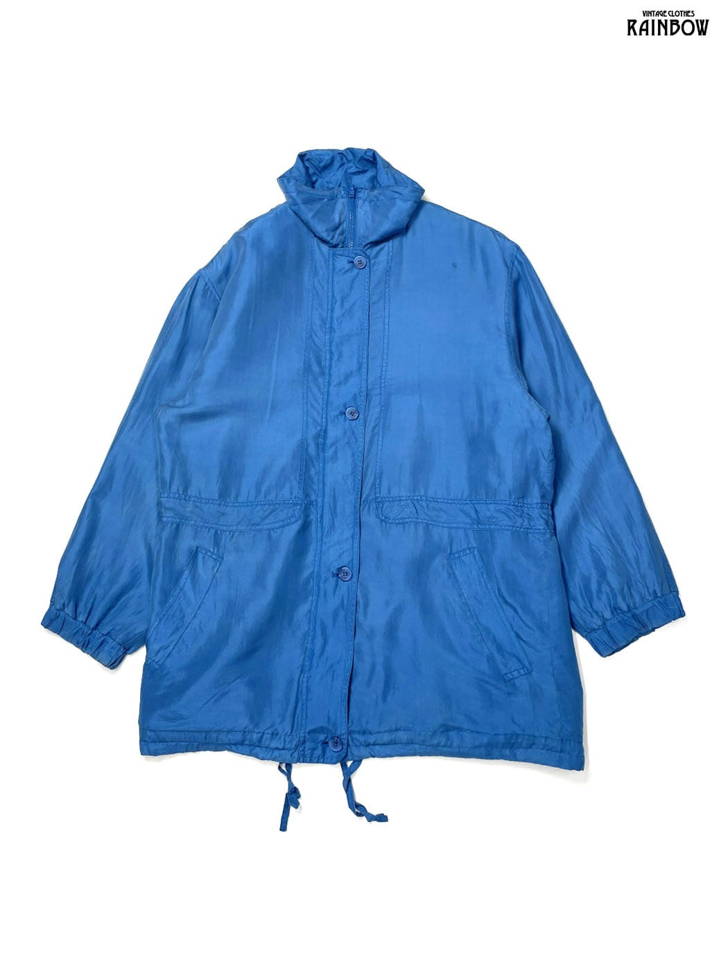 古着 ハイネック 無地 シルク100% 長袖 アウター ライトジャケット 青 (ttu2601149)