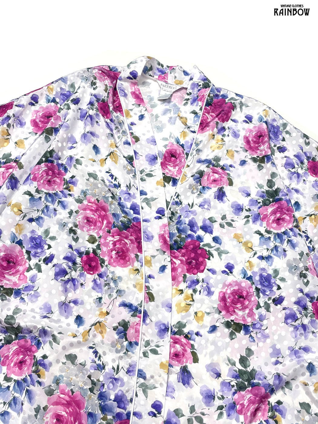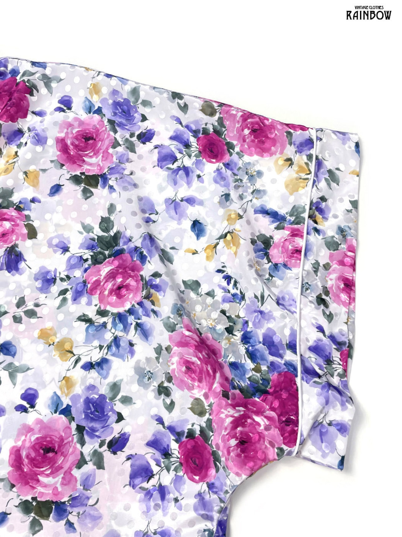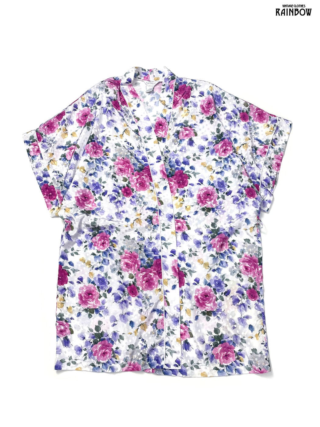 #アウター #羽織り #ハーフスリーブ #ピンク #紫 #花柄 #ガーリー #サテン #半袖羽織り