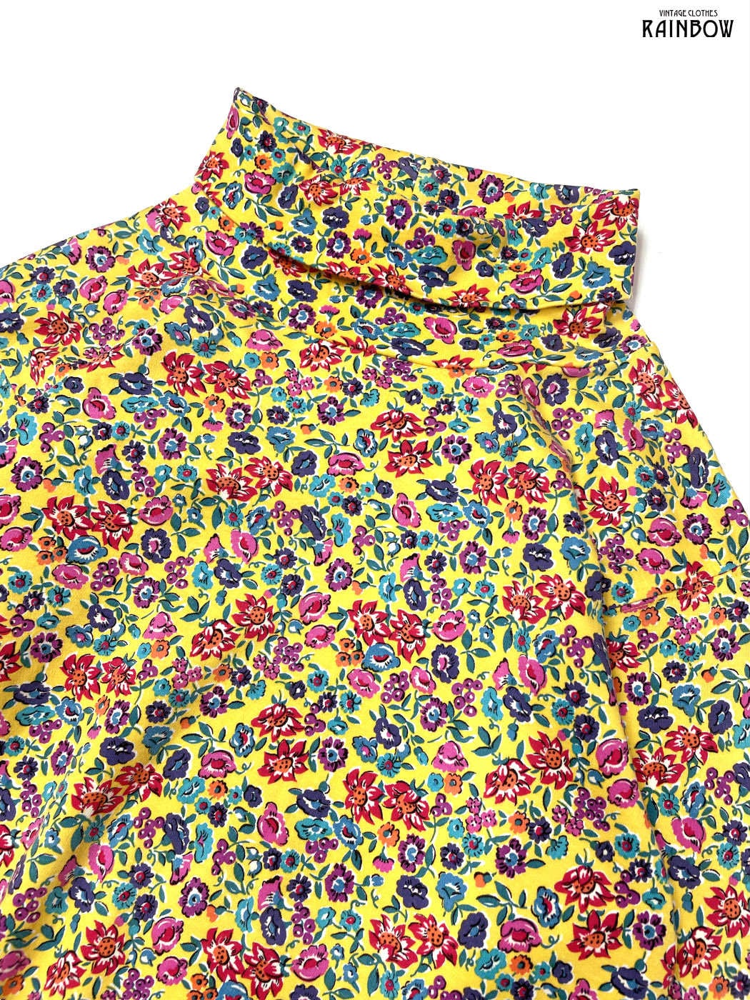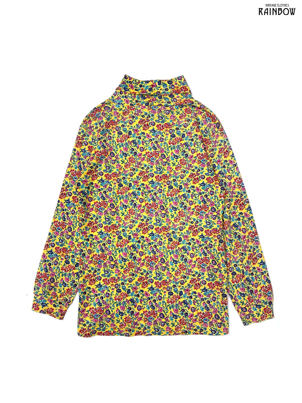 #トップス #プルオーバー #ロングスリーブ #黄 #カラフル #花柄 #アメリカ製 #ハイネック #ガーリー #カットソー地 #長袖柄プルオーバー