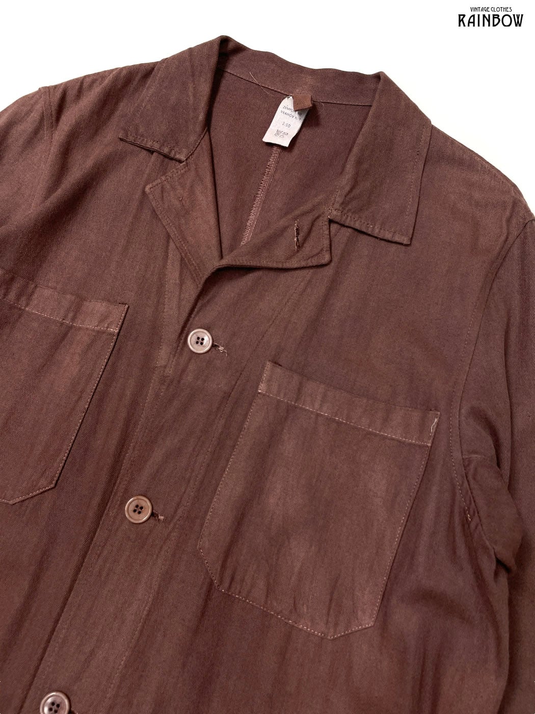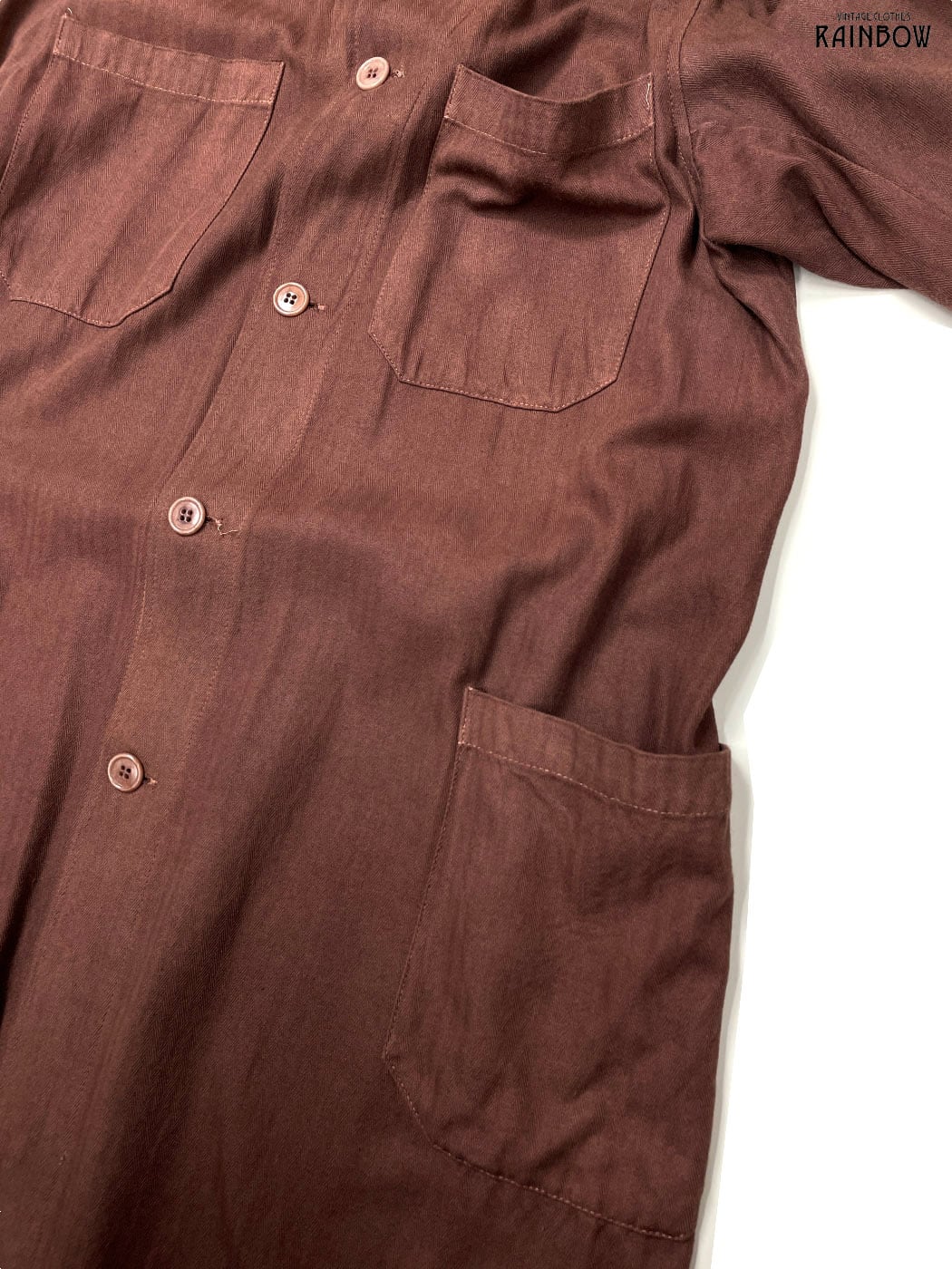 #アウター #ライトコート #ロングスリーブ #茶 #無地 #前開き #ステンカラー #シック #ヴィンテージ #コットン #無地ライトコート