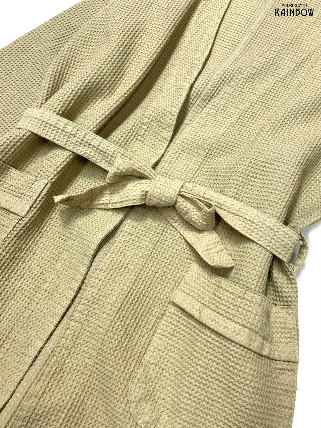 #アウター #羽織り #ロングスリーブ #ベージュ #無地 #ワッフル生地 #ベルト付き #前開き #ナチュラル #ヴィンテージ #コットン #無地羽織り