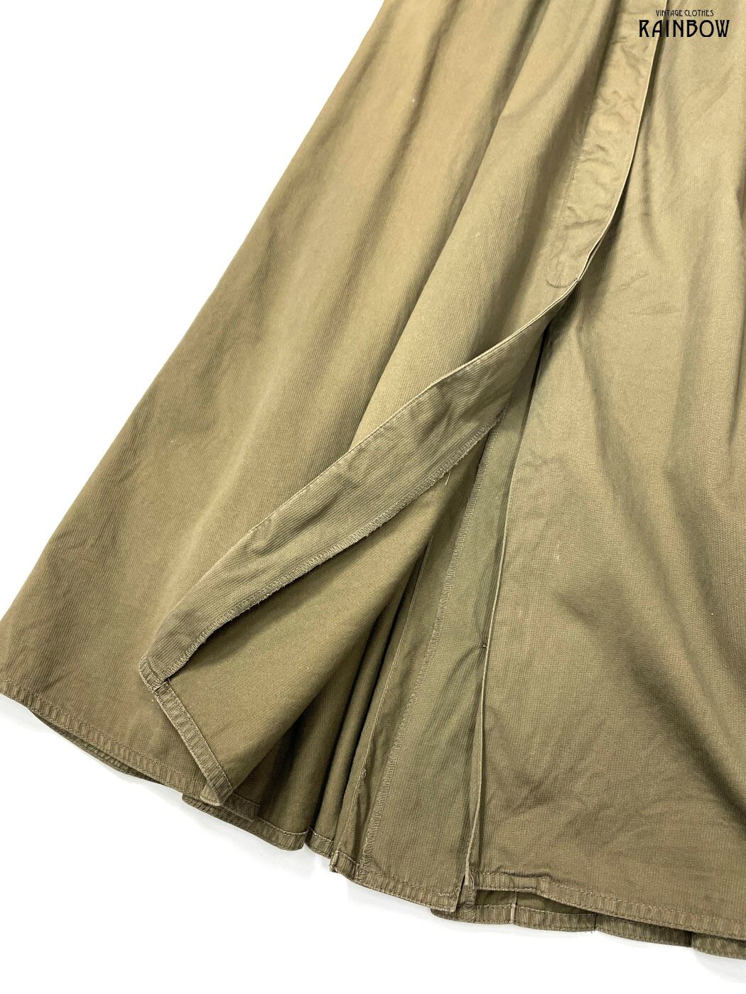 #スカート #ロング丈 #フレア #ベージュ #カーキ #無地 #前開き #ヴィンテージ #コットン #無地ライトスカート