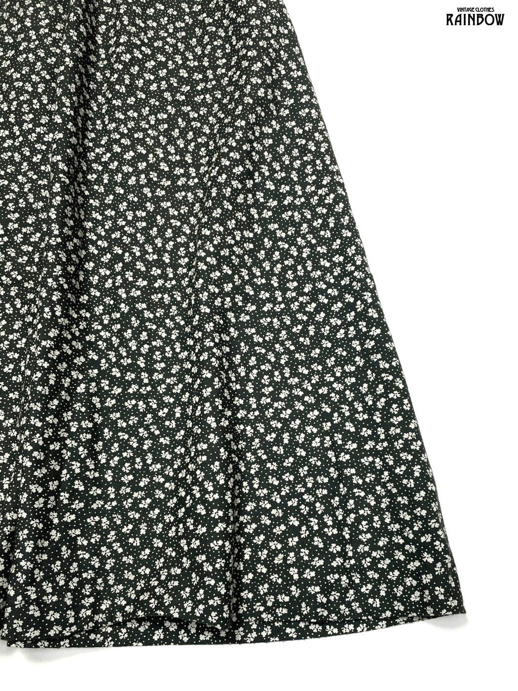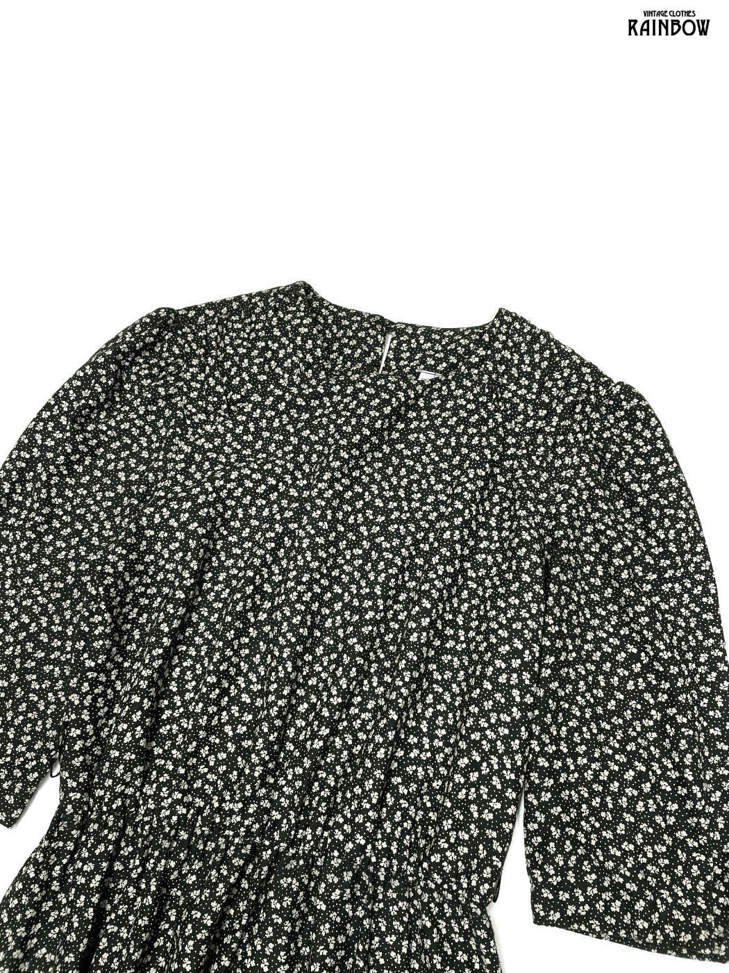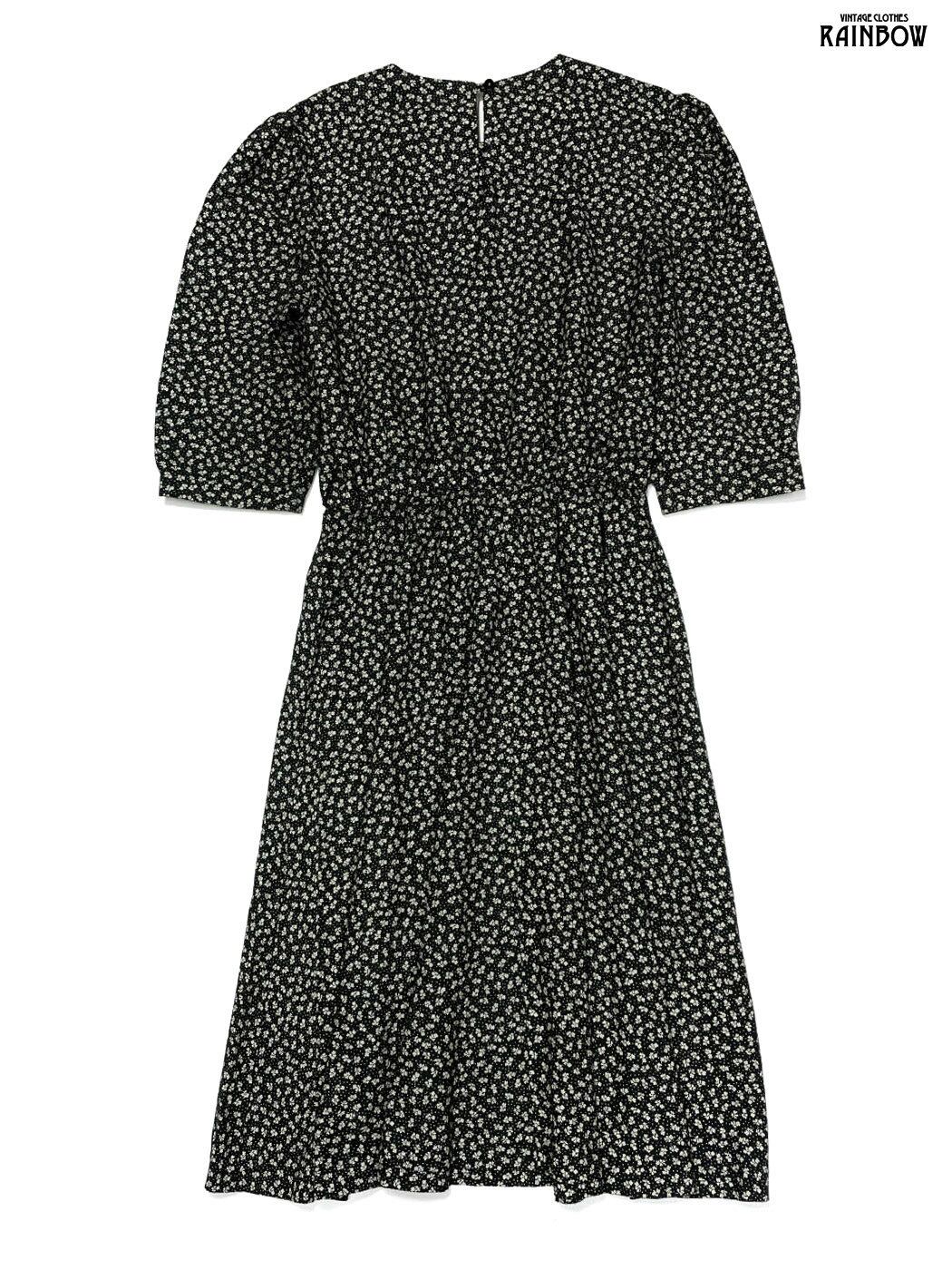 #ワンピース #ロングスリーブ #ゴムウエスト #黒 #花柄 #クラシック #レーヨン #長袖花柄ワンピース