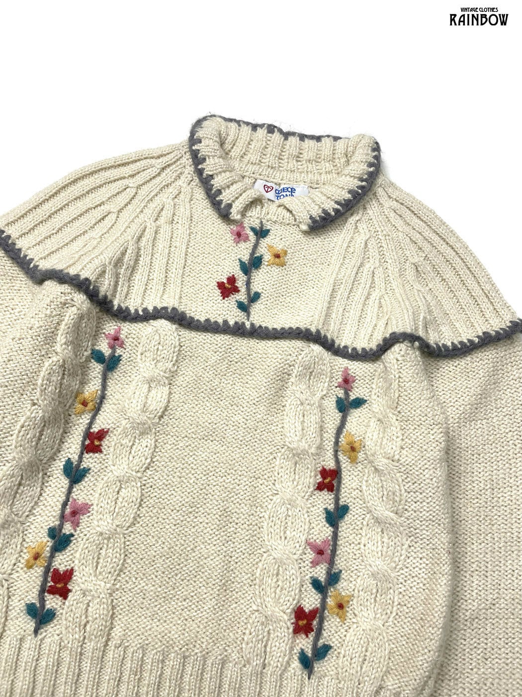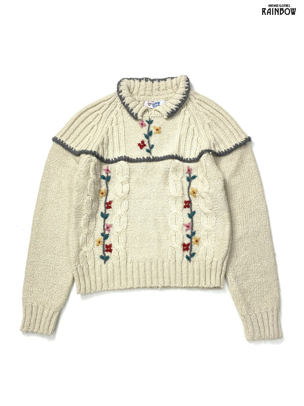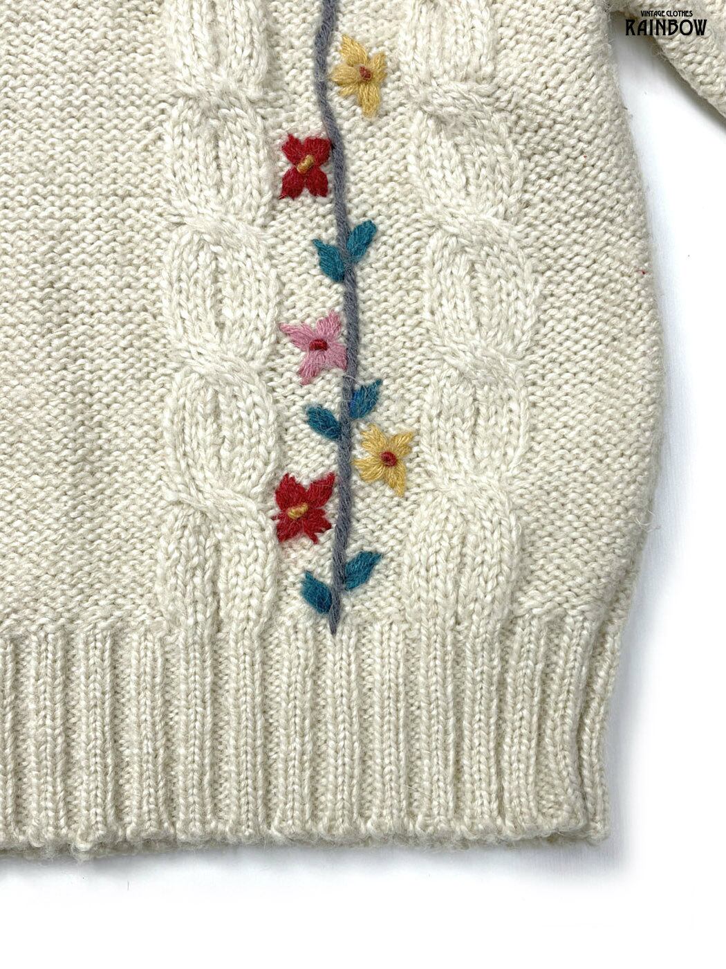 #ニット #セーター #ロングスリーブ #ベージュ #花柄 #刺繍 #ガーリー #ニット地 #刺繍ニット