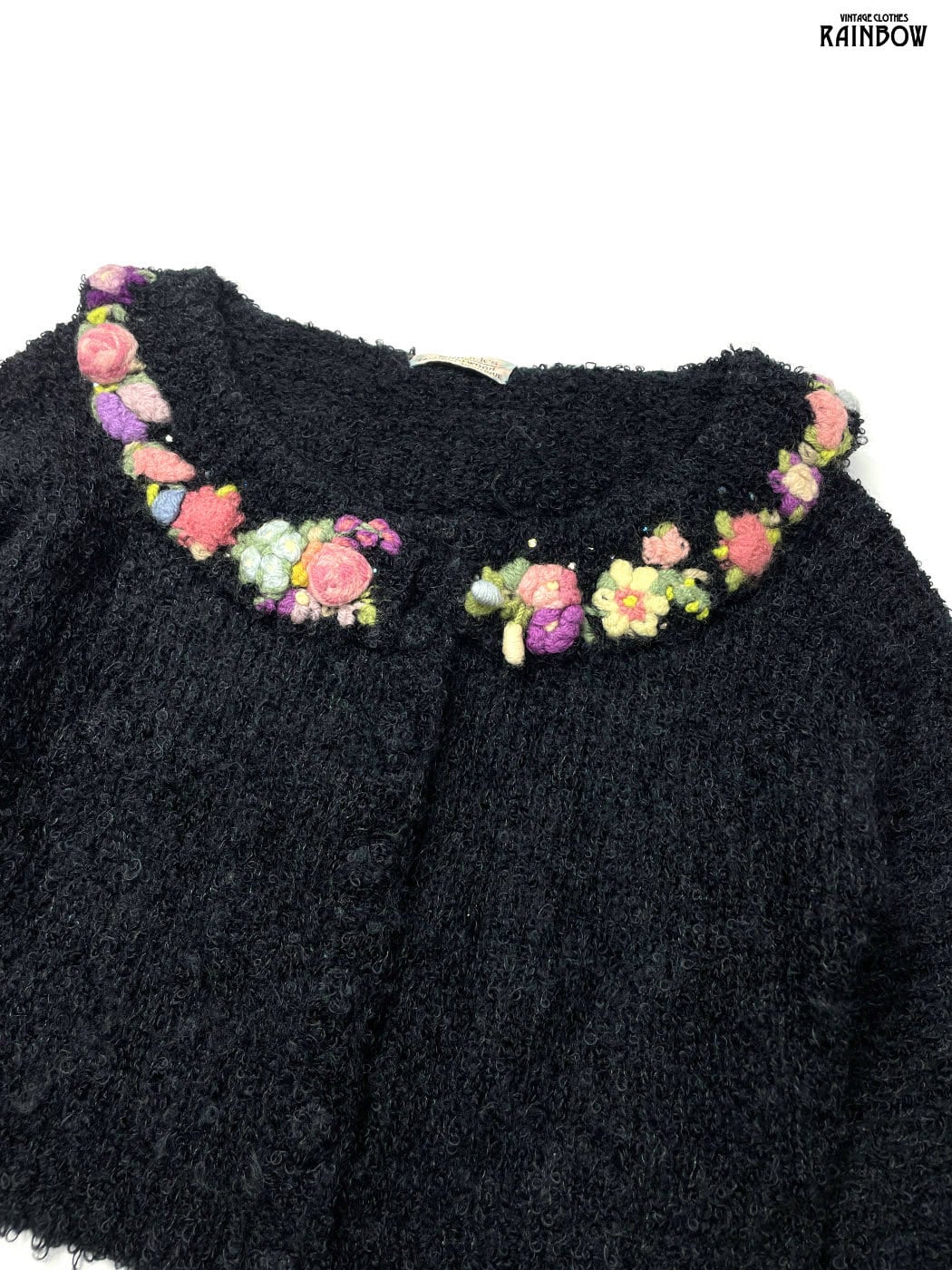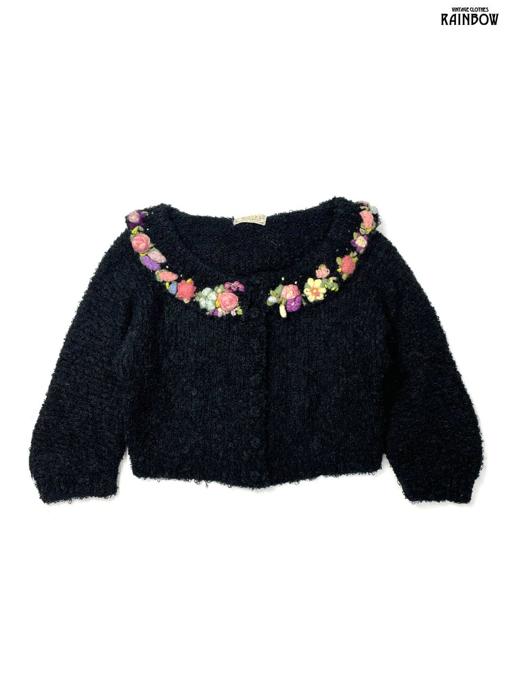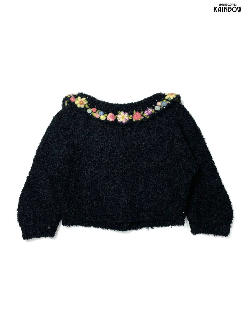 #ニット #カーディガン #ロングスリーブ #黒 #花柄 #刺繍 #クラシック #ウール #刺繍ニット