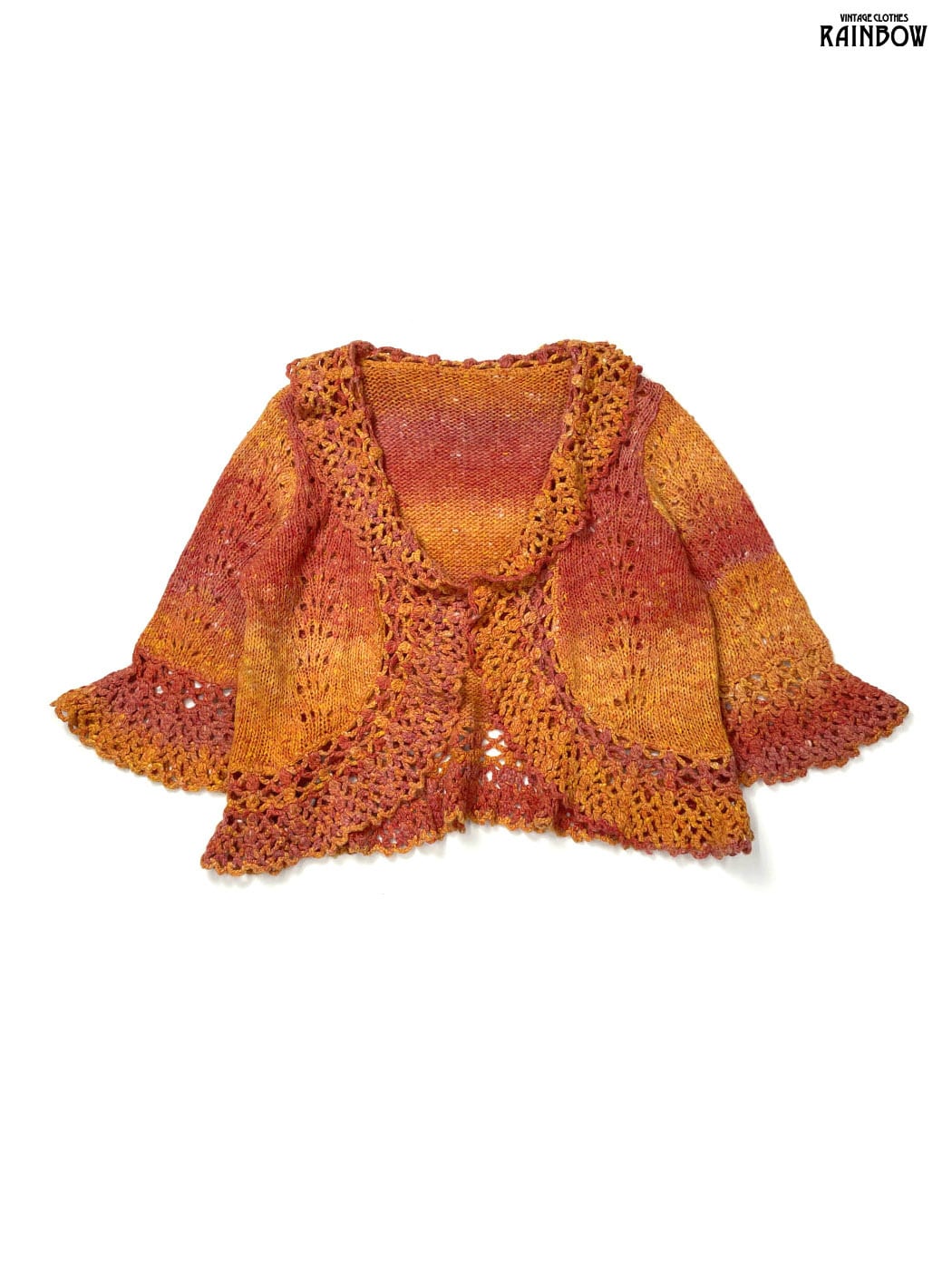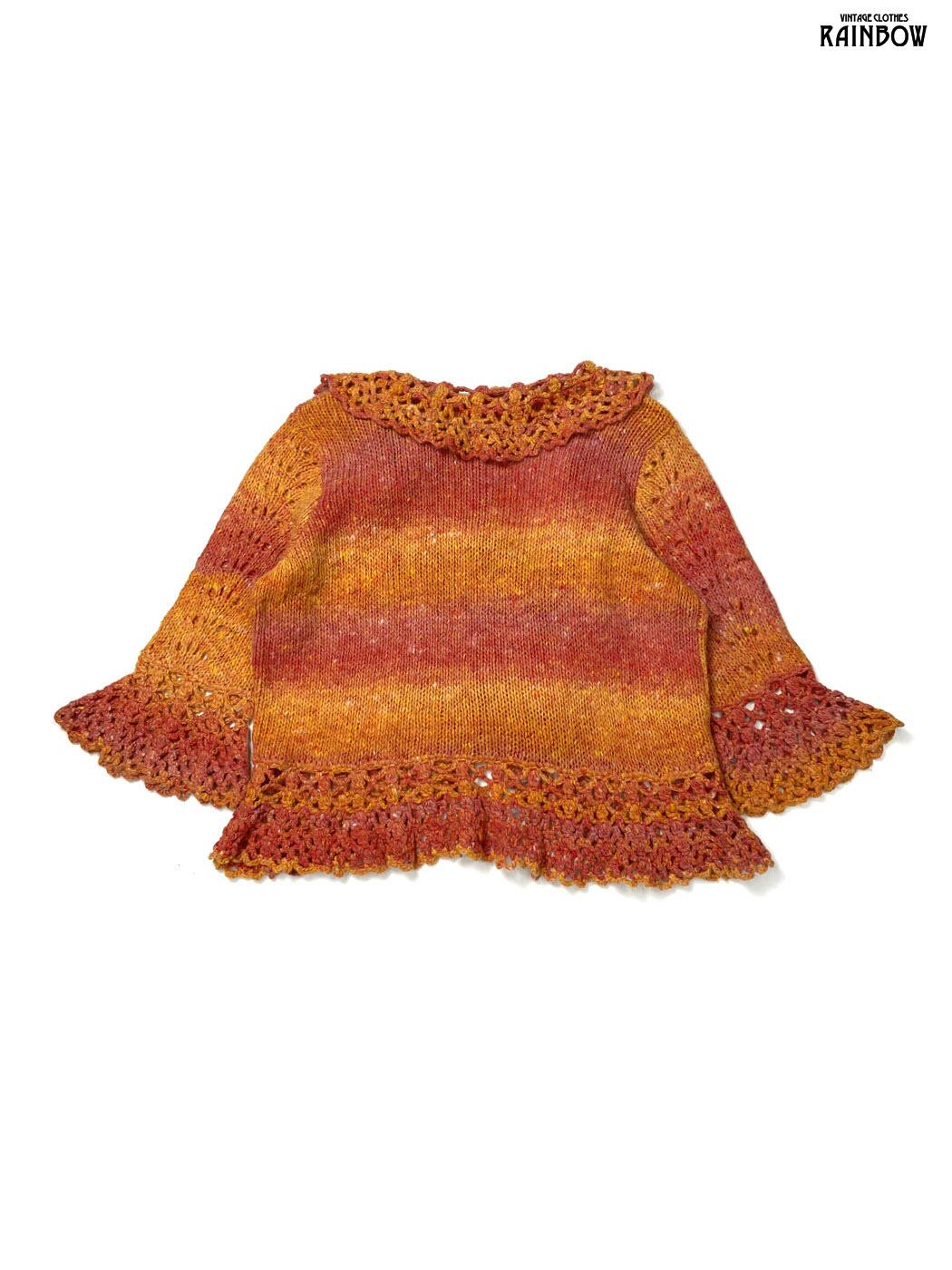 #ニット #カーディガン #ロングスリーブ #オレンジ #ボーダー柄 #ニット地 #柄カーディガン